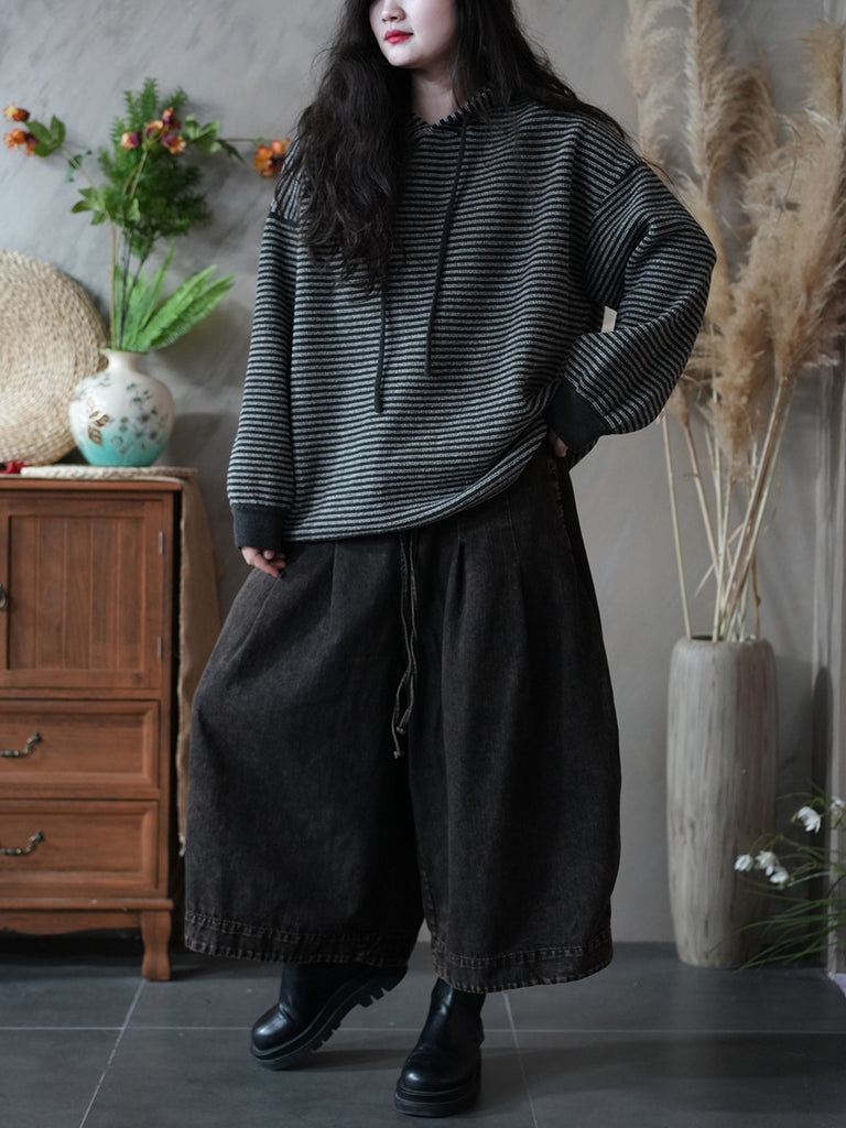 קפוצ'ון פסים מזדמן לחורף לנשים