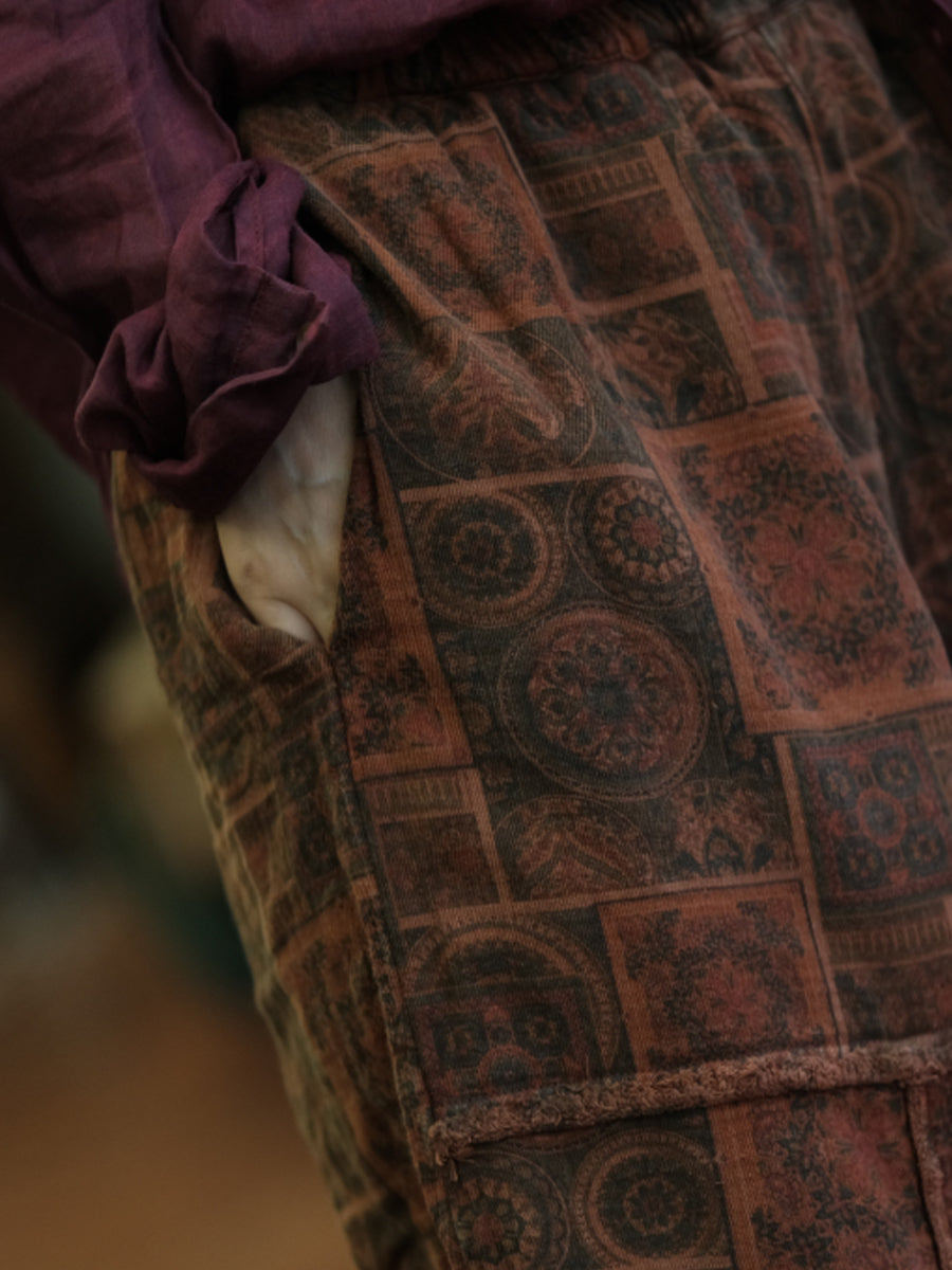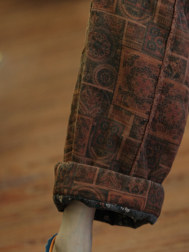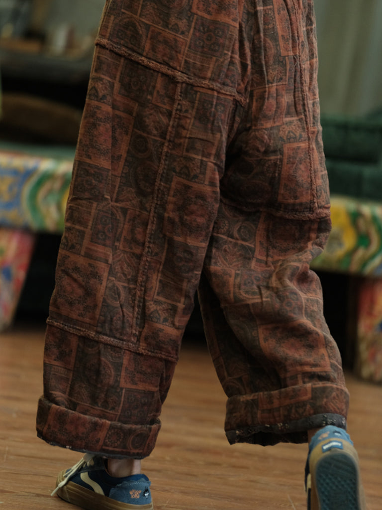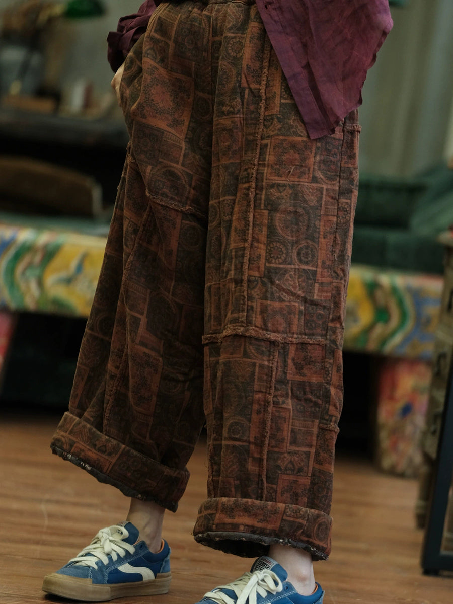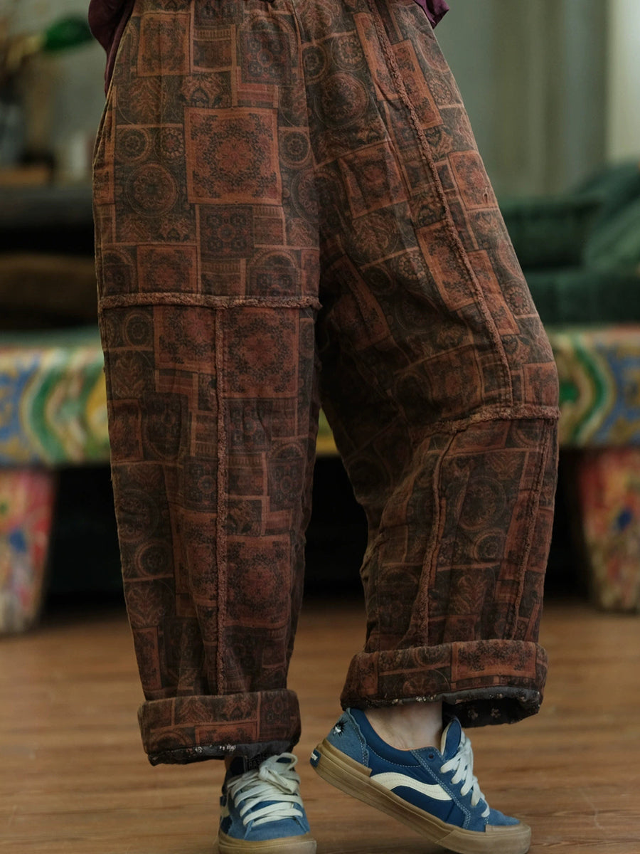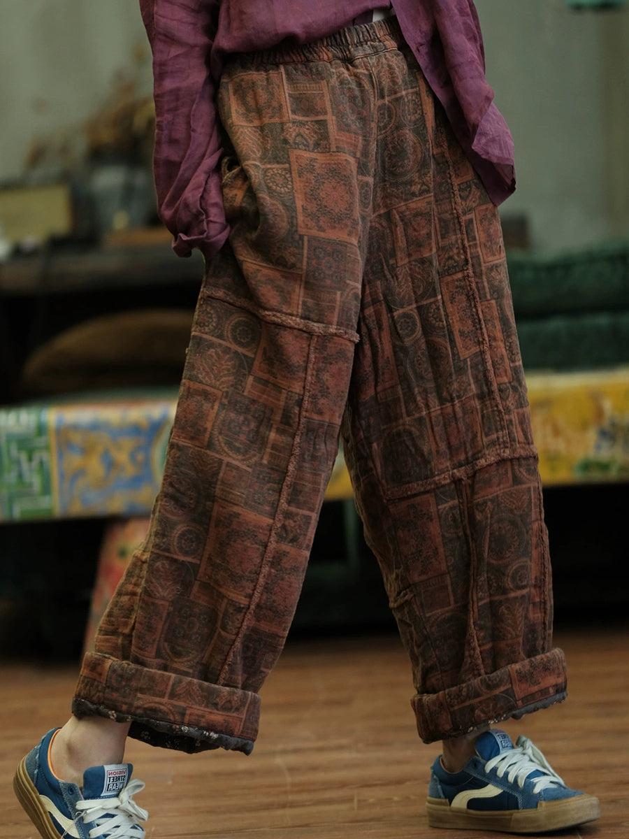 מכנסי רגל רחבים בגזרה רטרו בסגנון כותנה לנשים