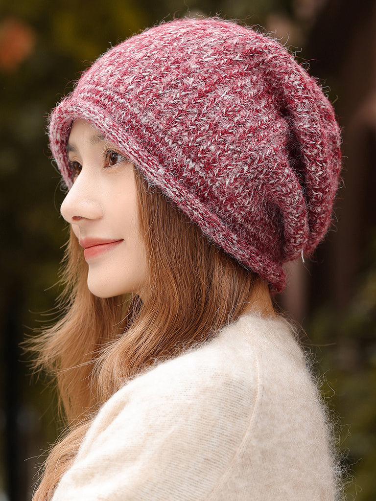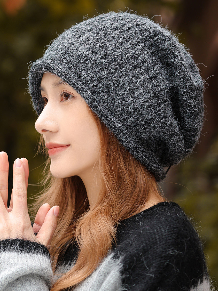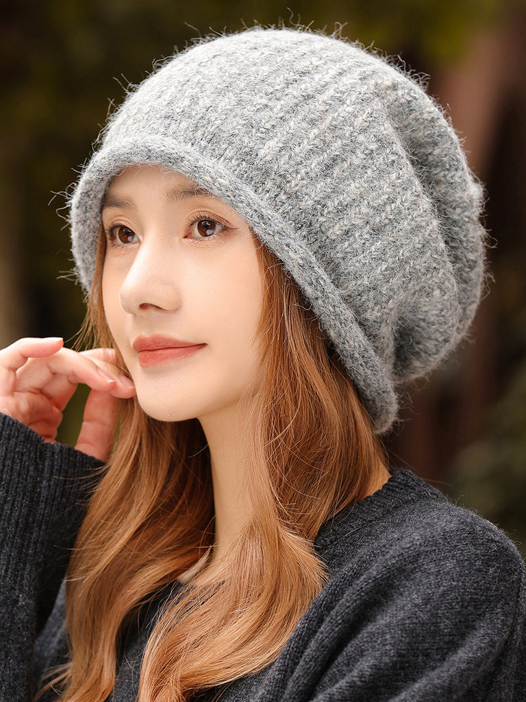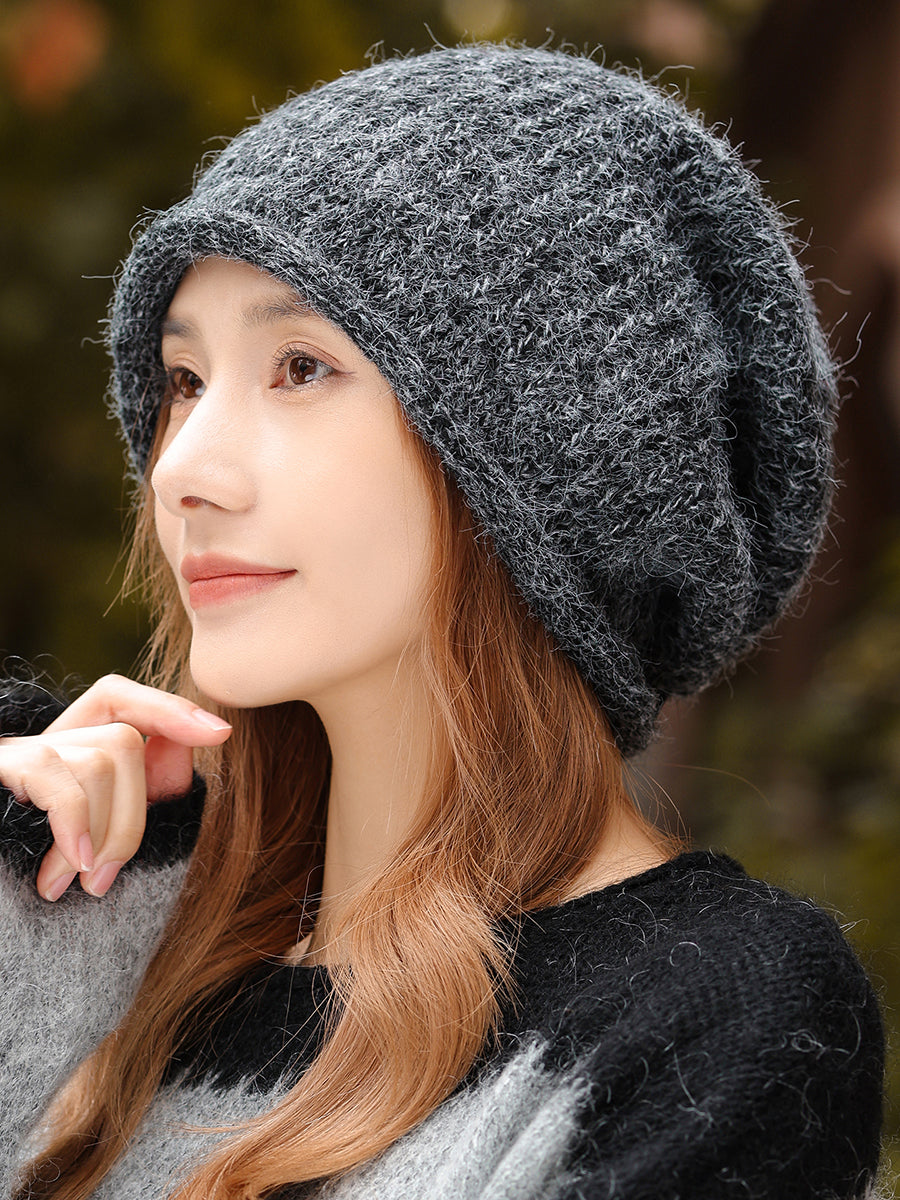 כובע סרוג בצבע טהור לחורף לנשים
