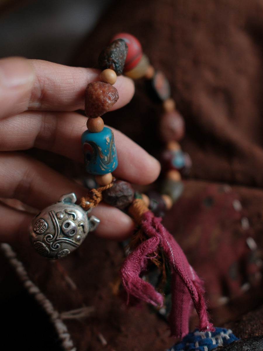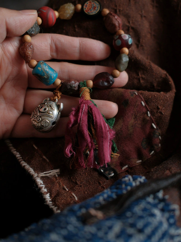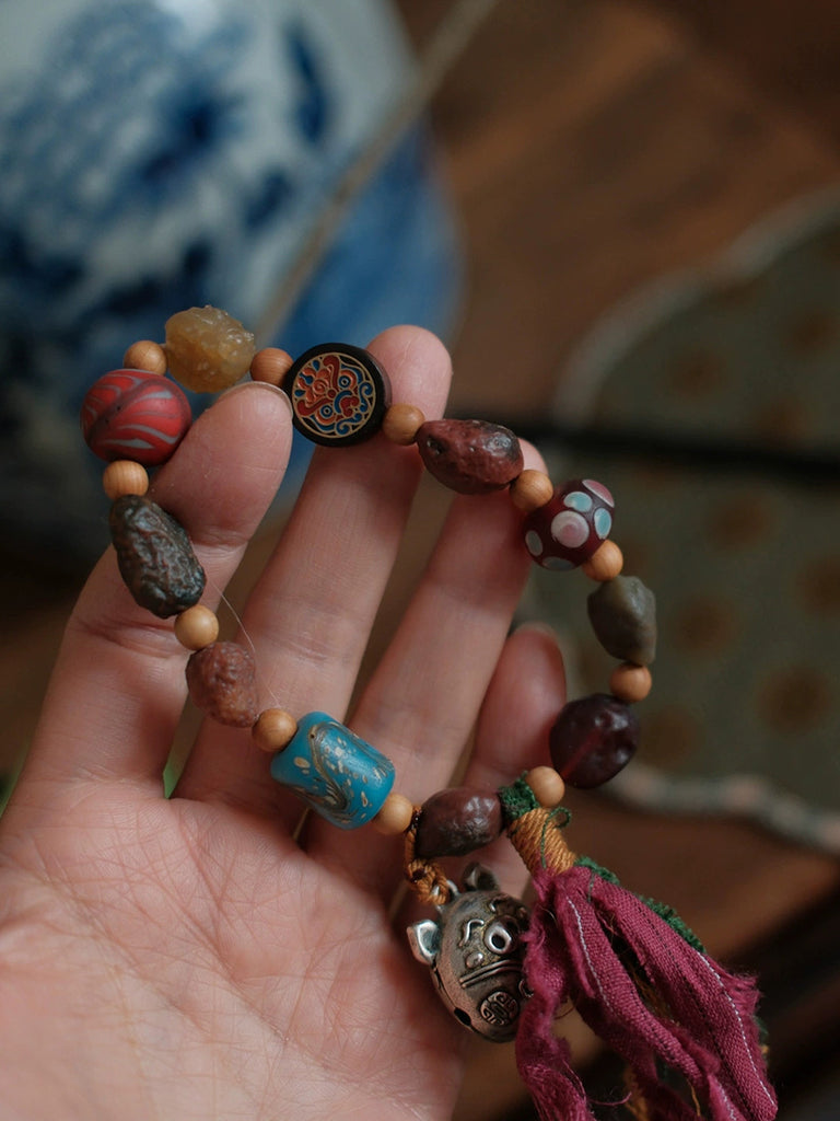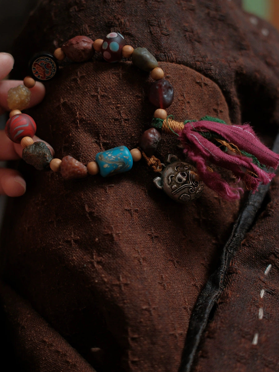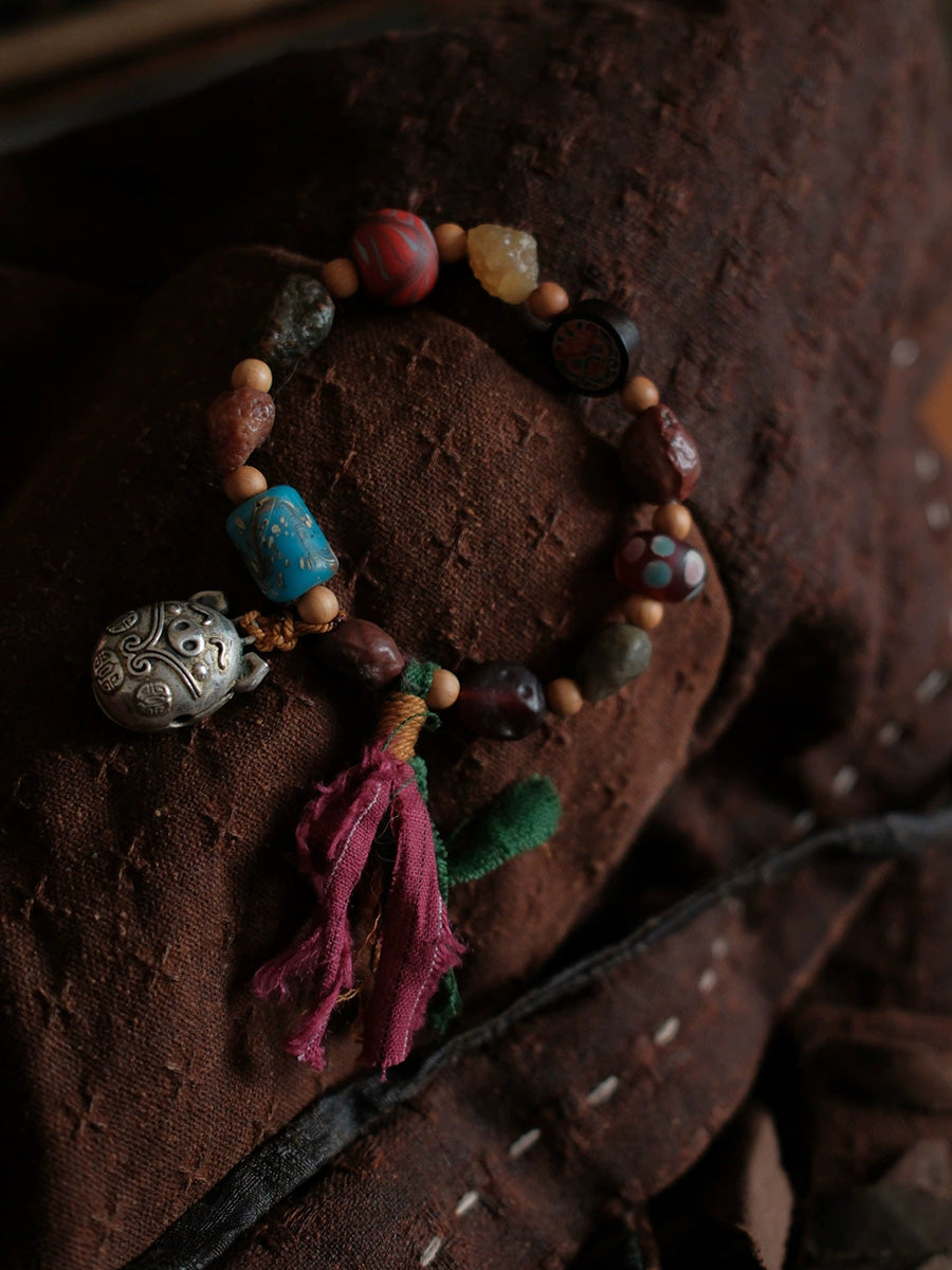 צמיד גדילים בעבודת יד עם חרוזי עץ אתניים לנשים