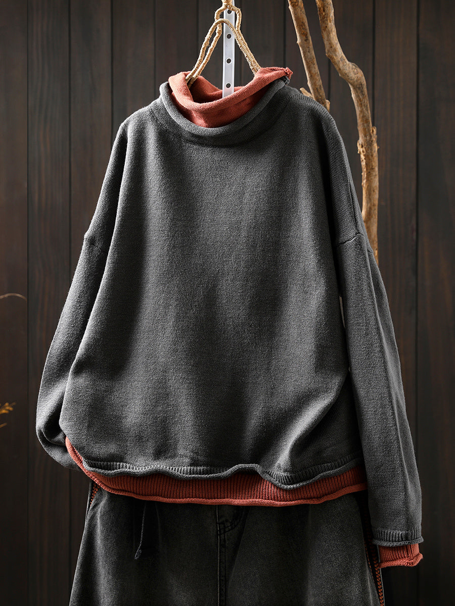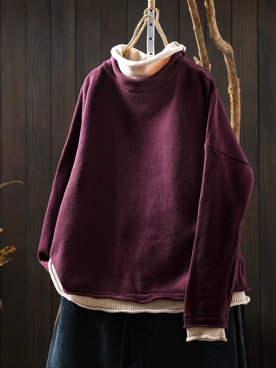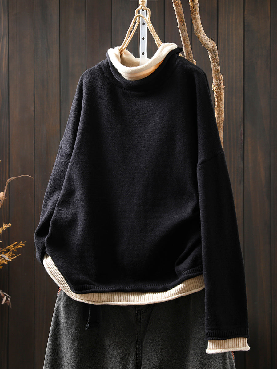 סוודר גולף מזויף עם שני צווארונים בסגנון אומנותי לנשים בסתיו