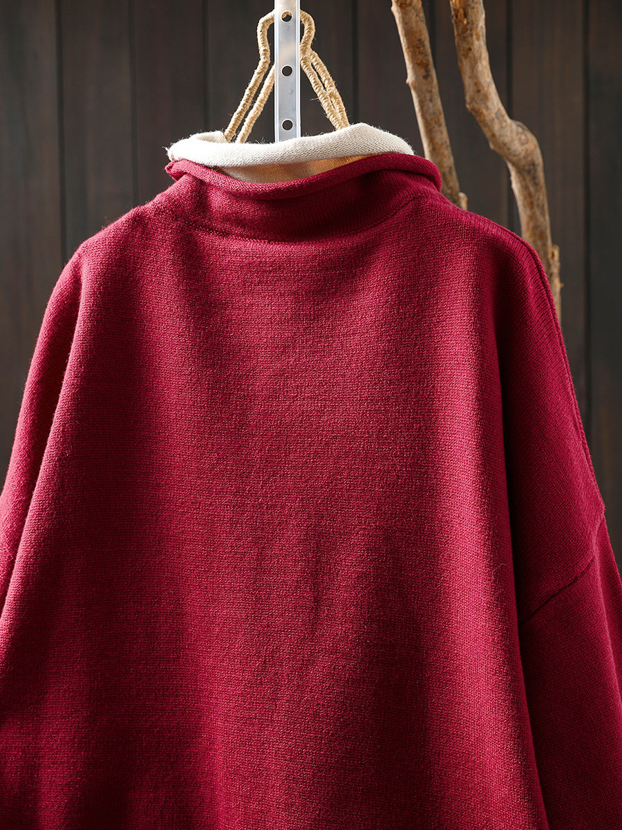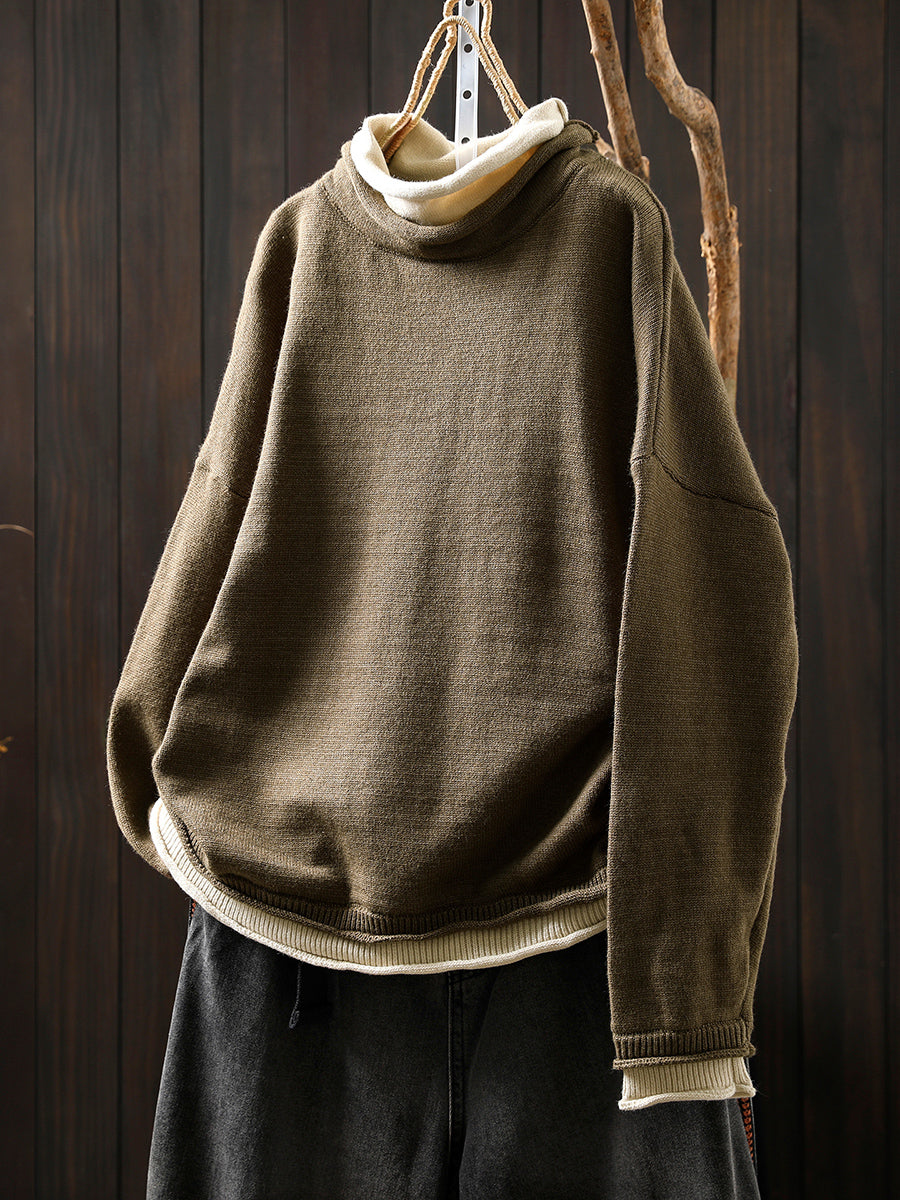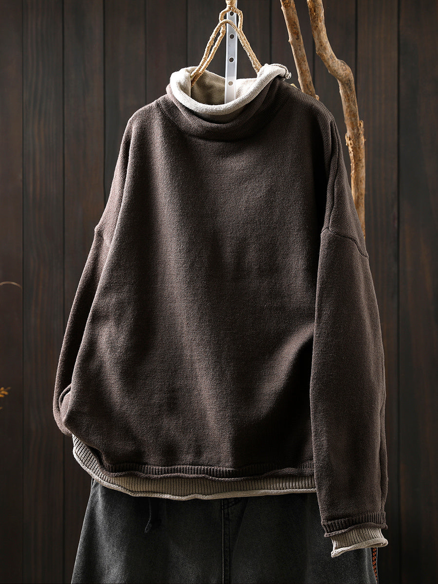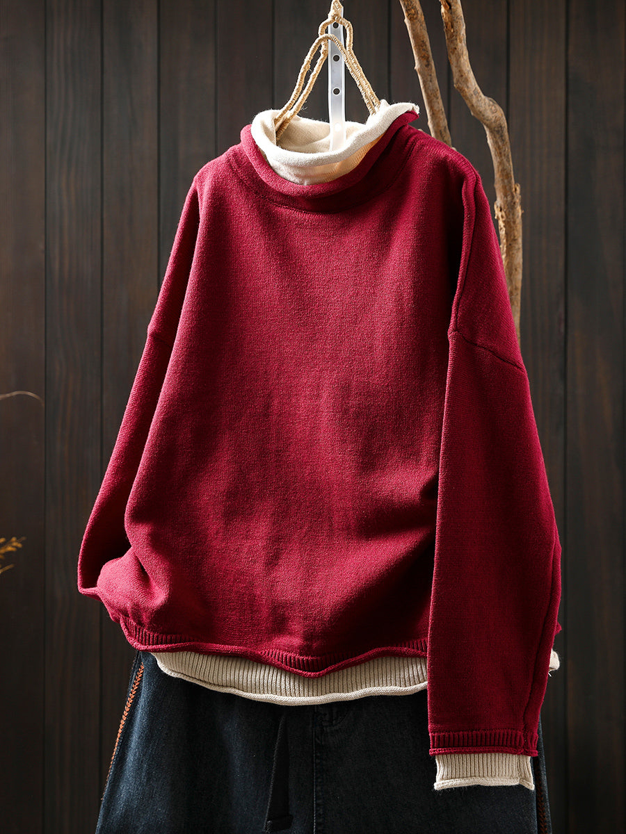 סוודר גולף מזויף עם שני צווארונים בסגנון אומנותי לנשים בסתיו