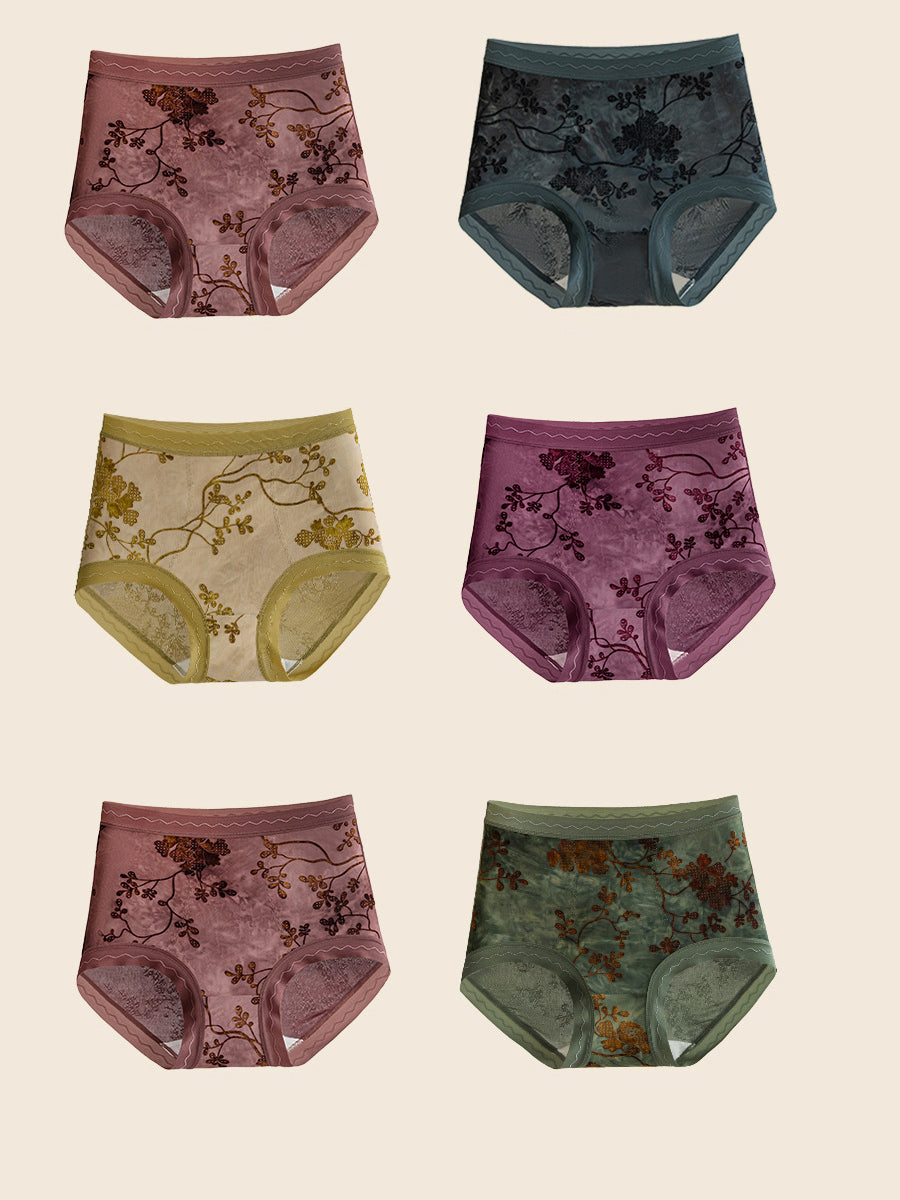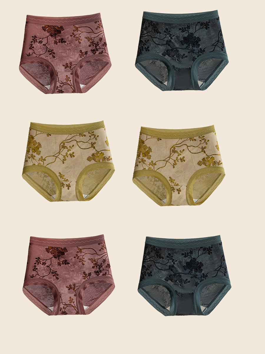 6 חלקים תחתונים גבוהים בגזרת אקארד פרחונית לנשים
