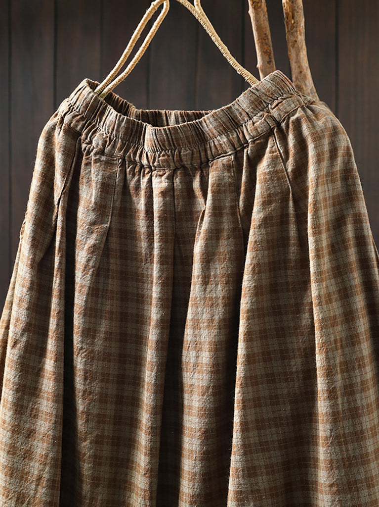חצאית תחרה משובצת בצורת A בסתיו לנשים 100% כותנה