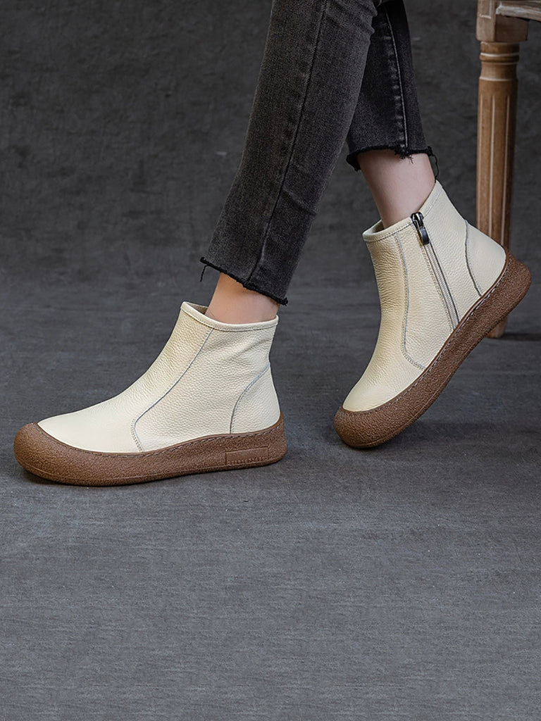 מגפי קרסול שטוחים מעור אמיתי לנשים עם רוכסן