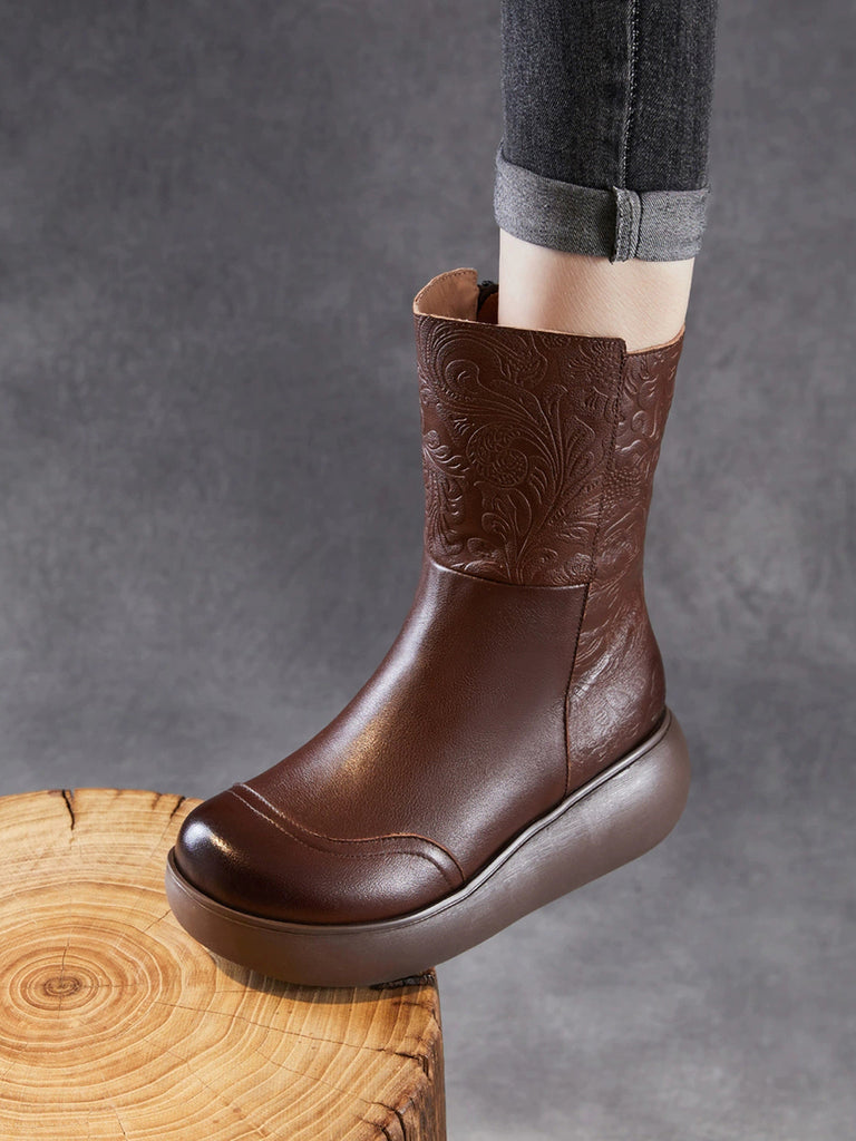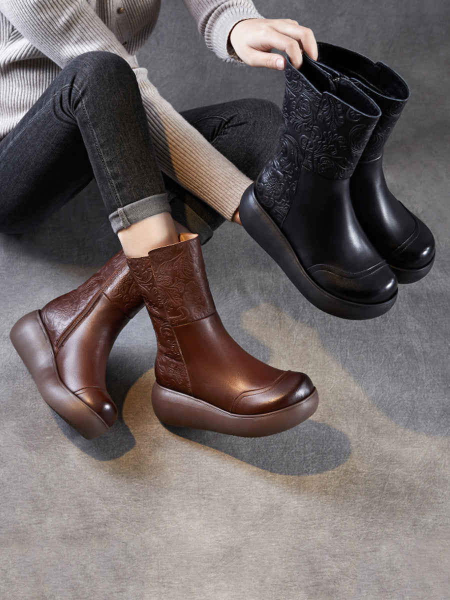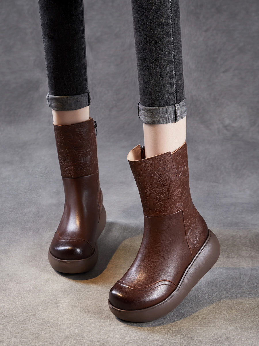 מגפי עור וינטג' לנשים עם בטנת פליז