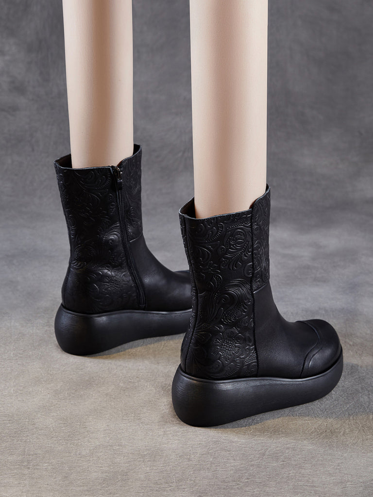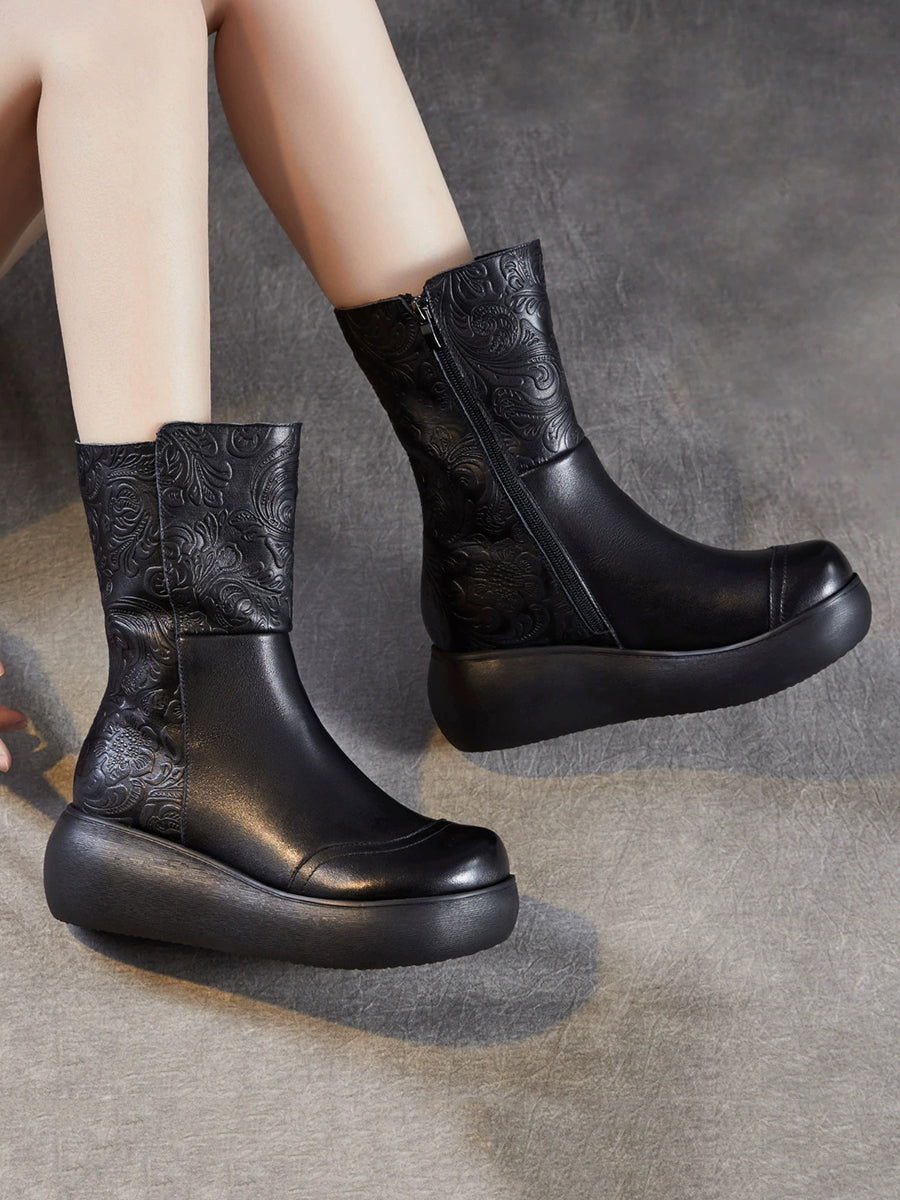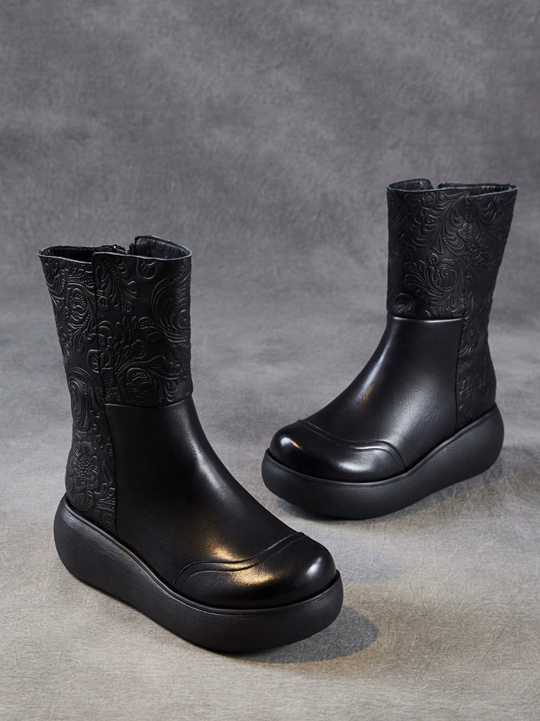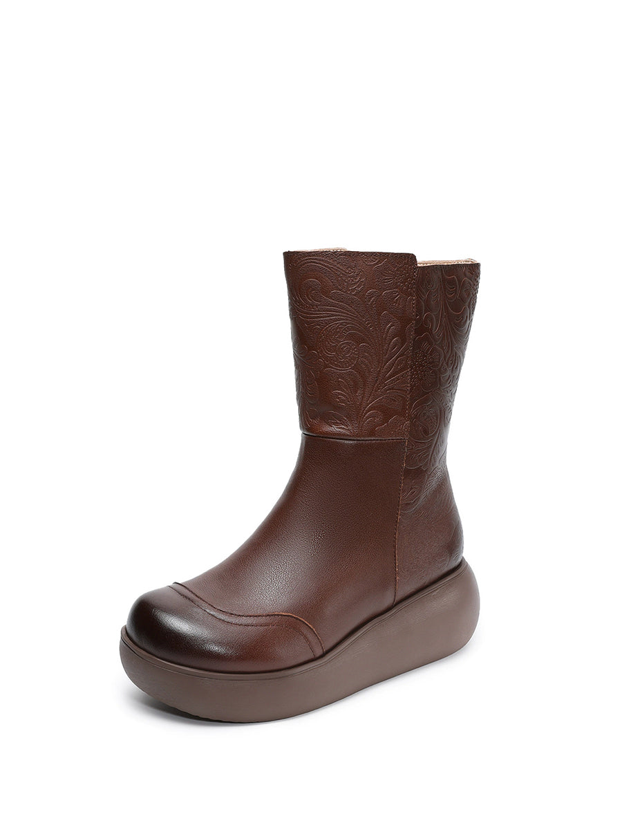 מגפי עור וינטג' לנשים עם בטנת פליז