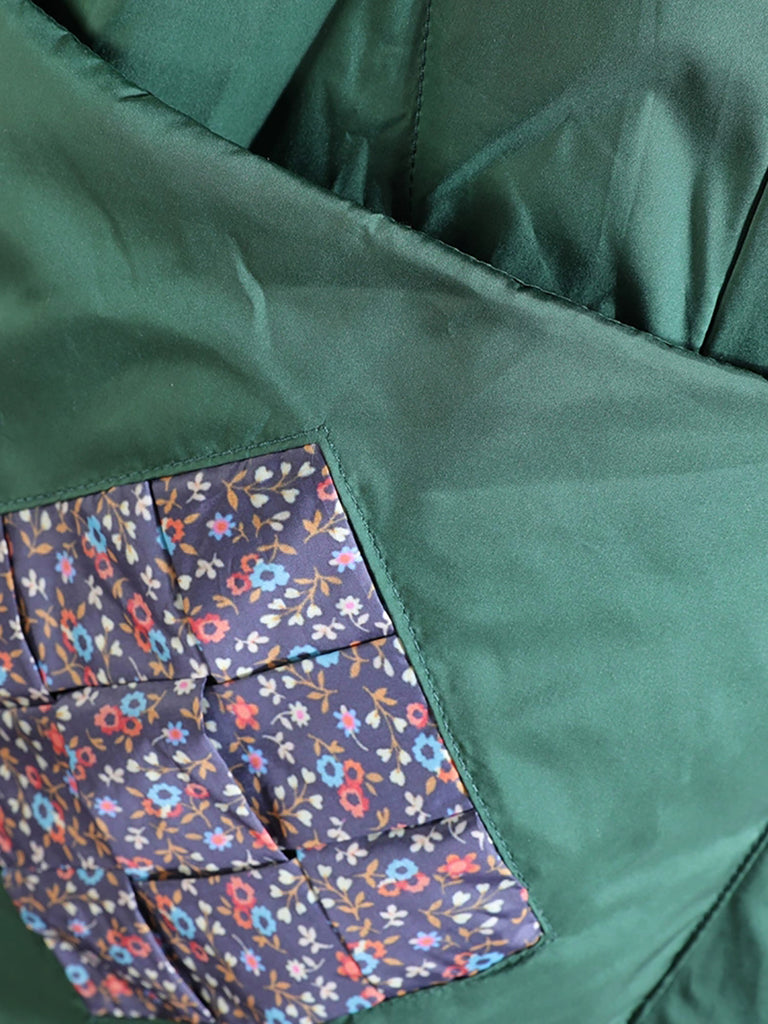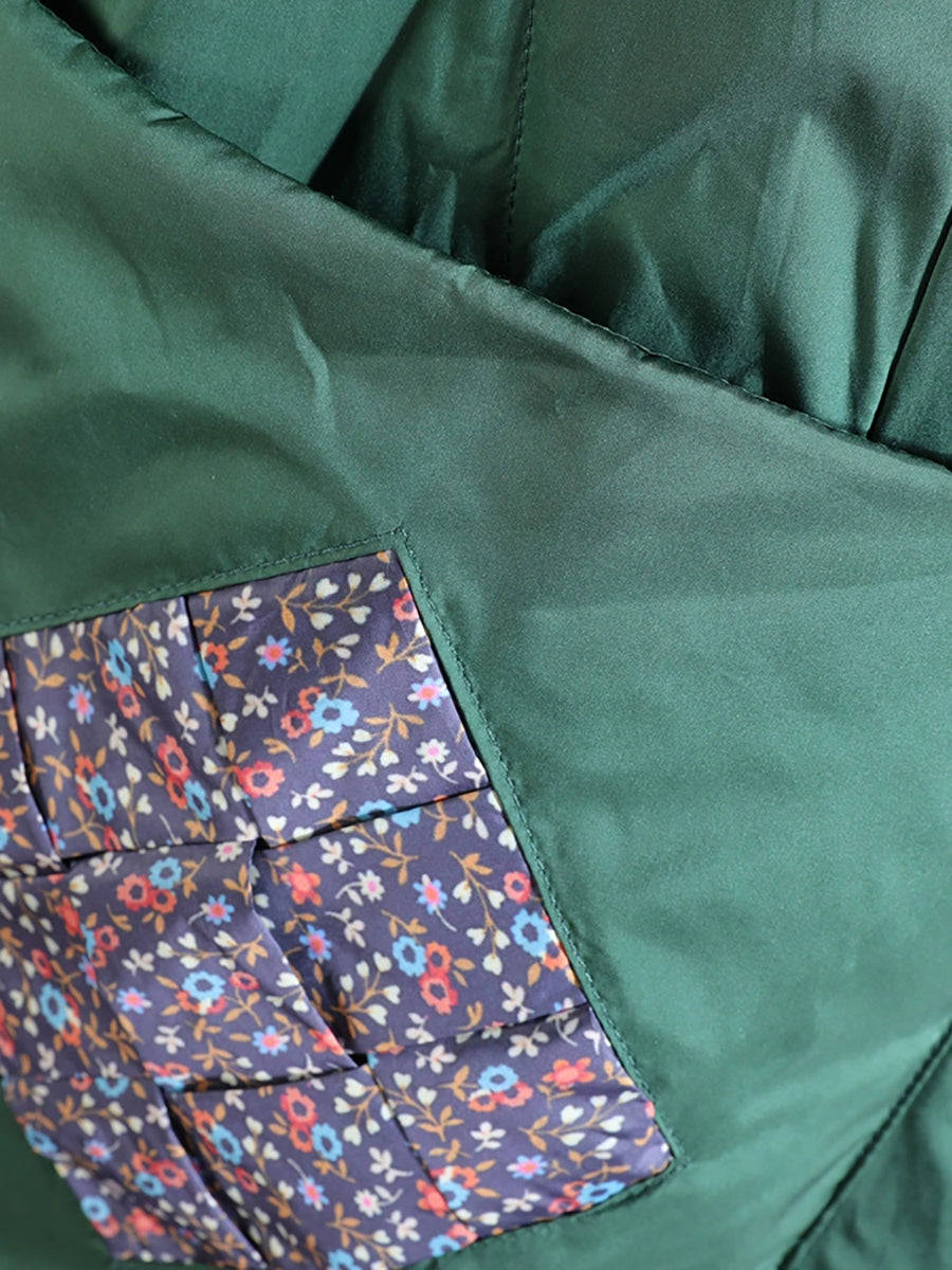 מעיל זה, עשוי במומחיות מבד כותנה ומציע דוגמת פרחים יפהפייה, מתהדר בצווארון עומד ושרוולים מלאים באורך רגיל. סגנון הרטרו שלו הופך אותו למושלם לעונות הסתיו והחורף.