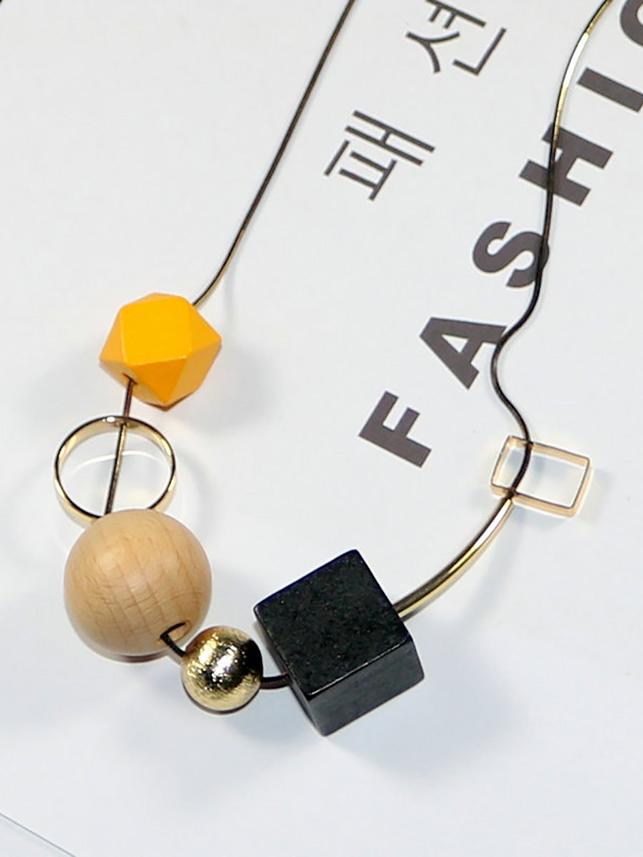 שרשרת סגסוגת חרוזי עץ גיאומטרית וינטג' לנשים