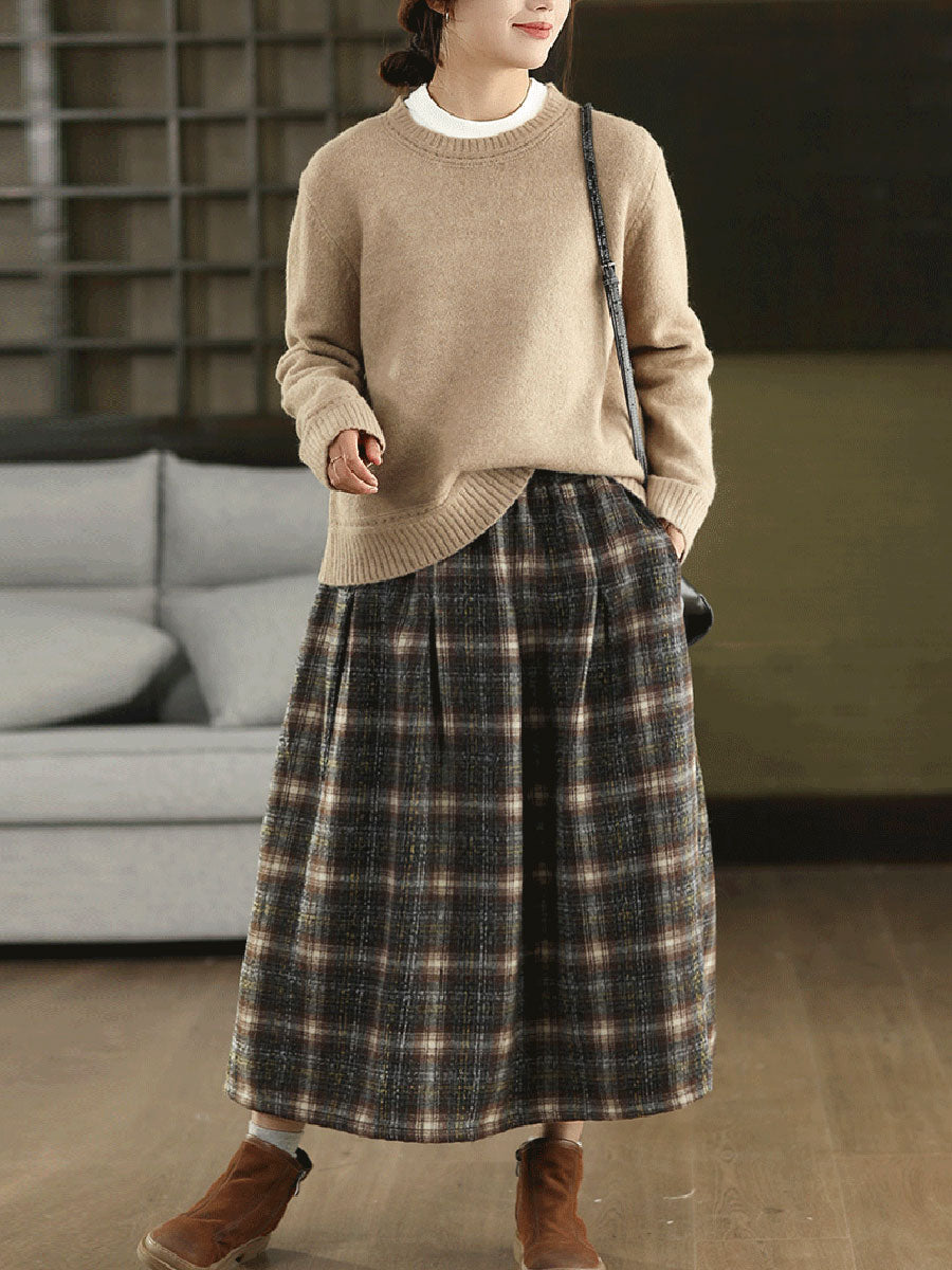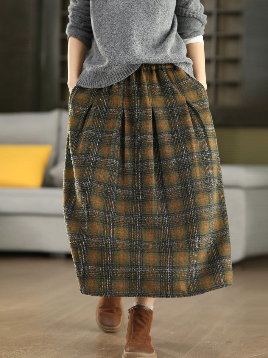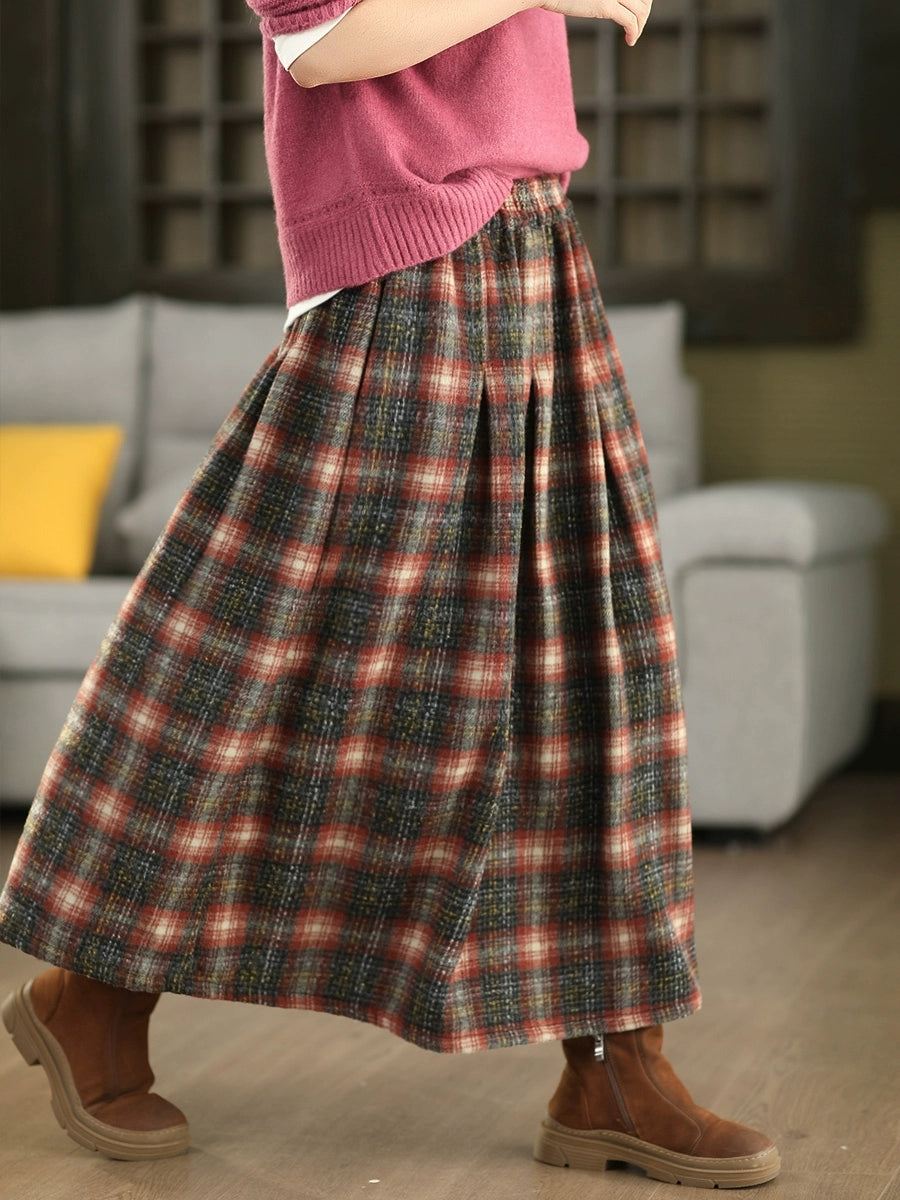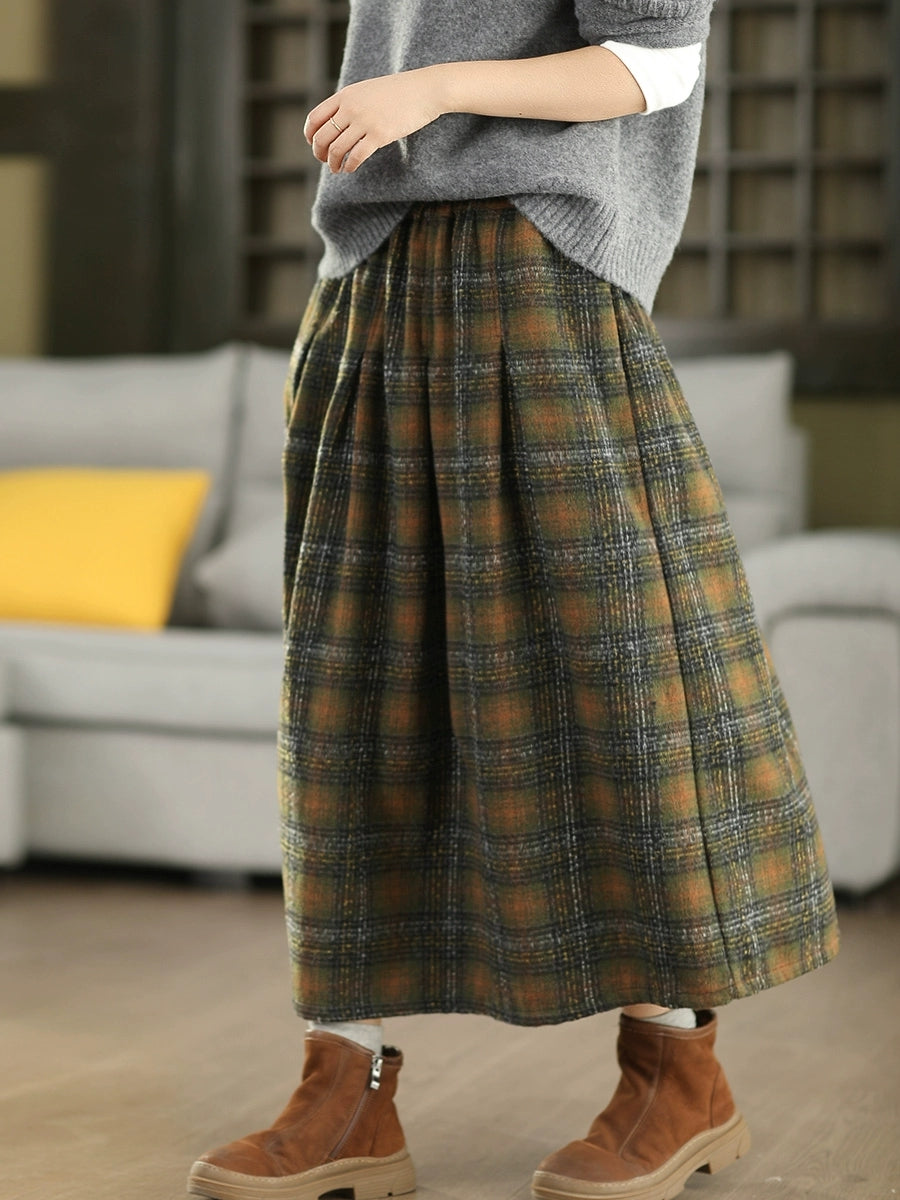 חצאית משובצת ירך וינטג' לנשים בסתיו