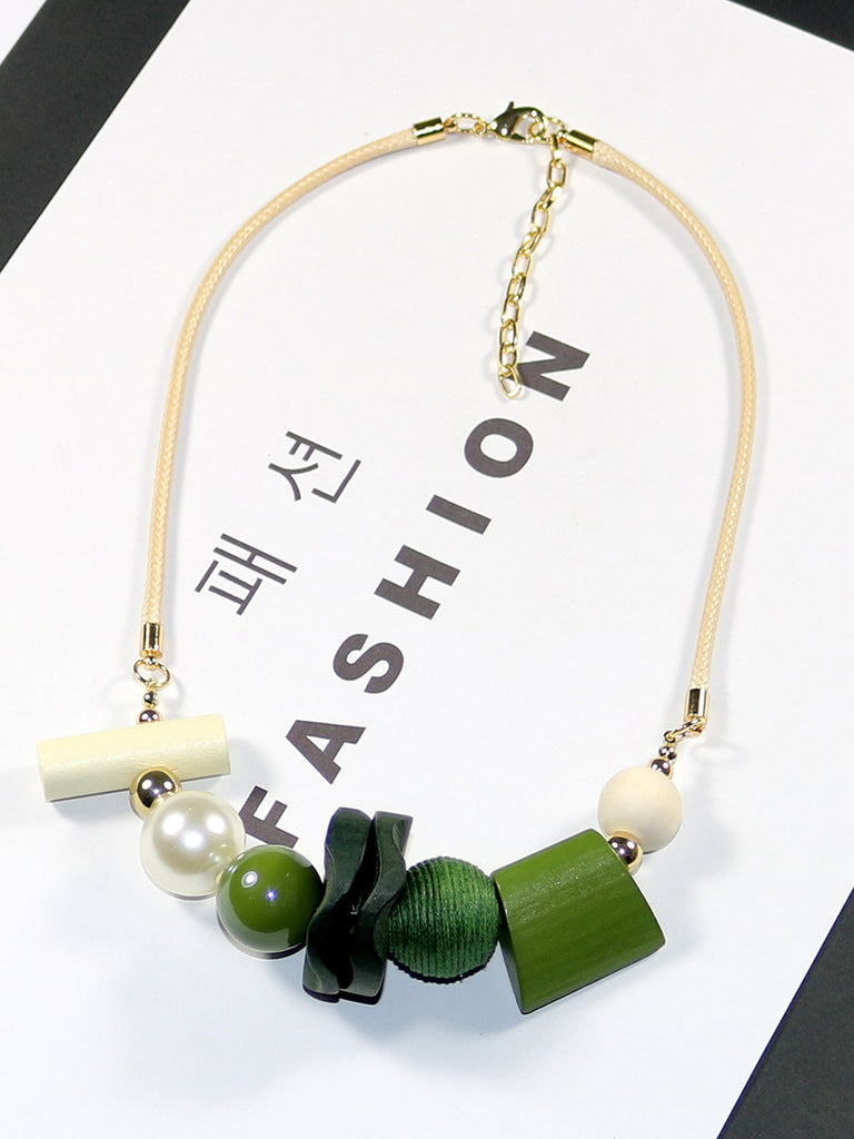 שרשרת פאנדנט גיאומטרית מעץ אומנותית לנשים