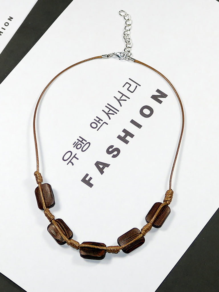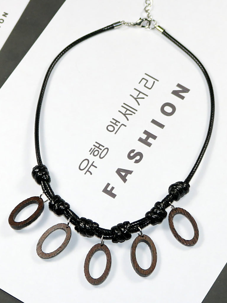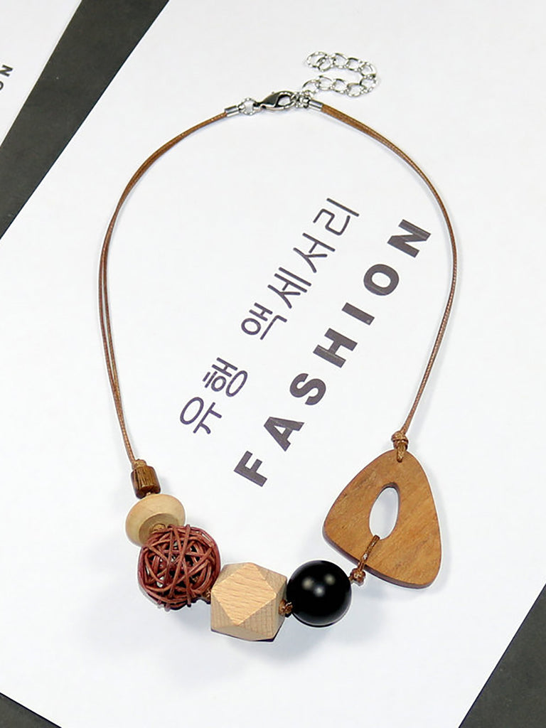 נשים Artsy שרשרת תליון גיאומטרית קש עץ