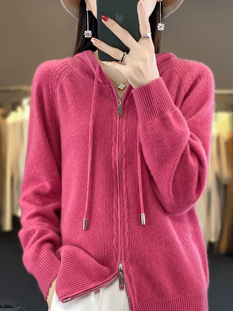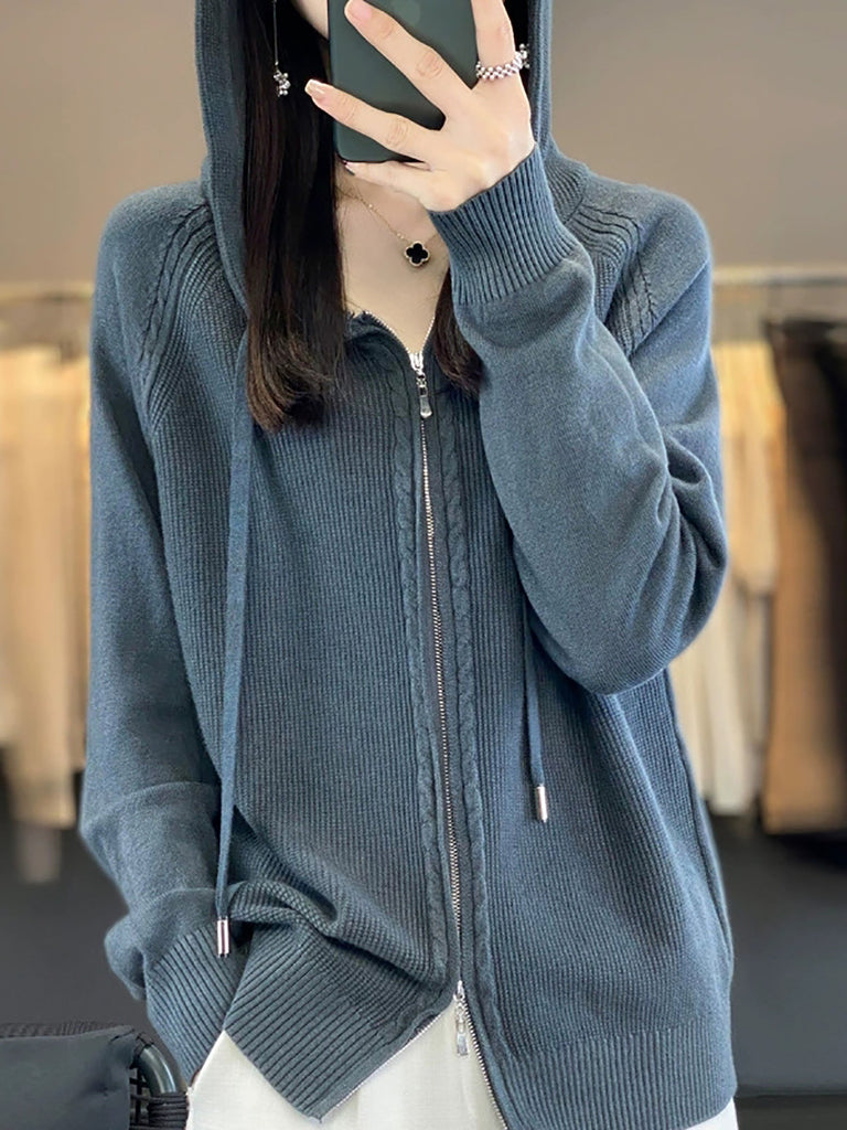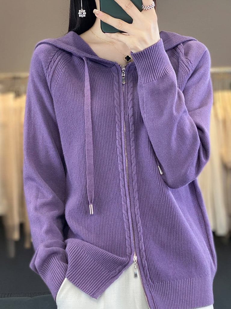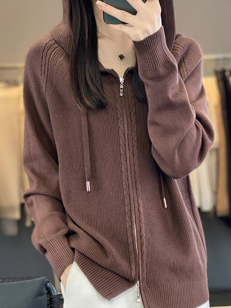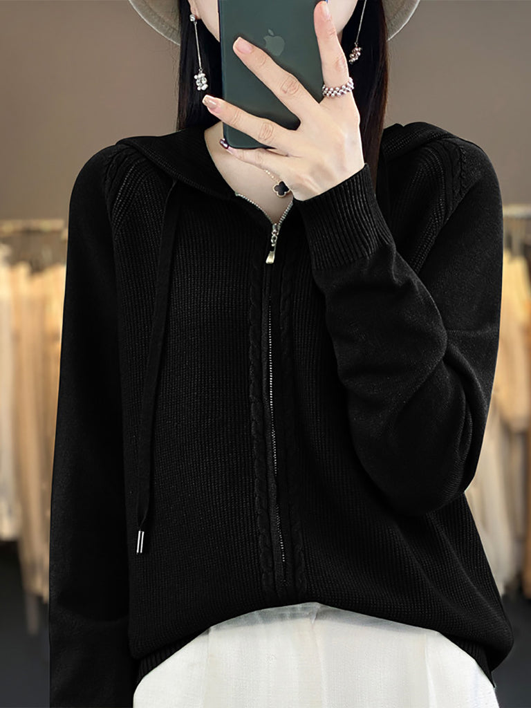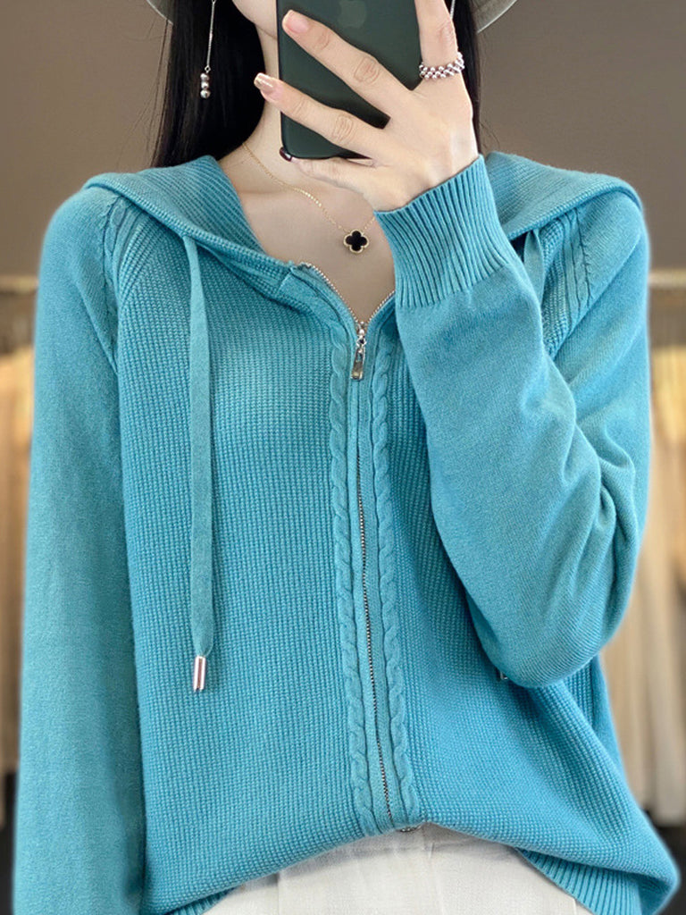 סוודר קפוצ'ון בצבע טהור מזדמן לנשים בסתיו