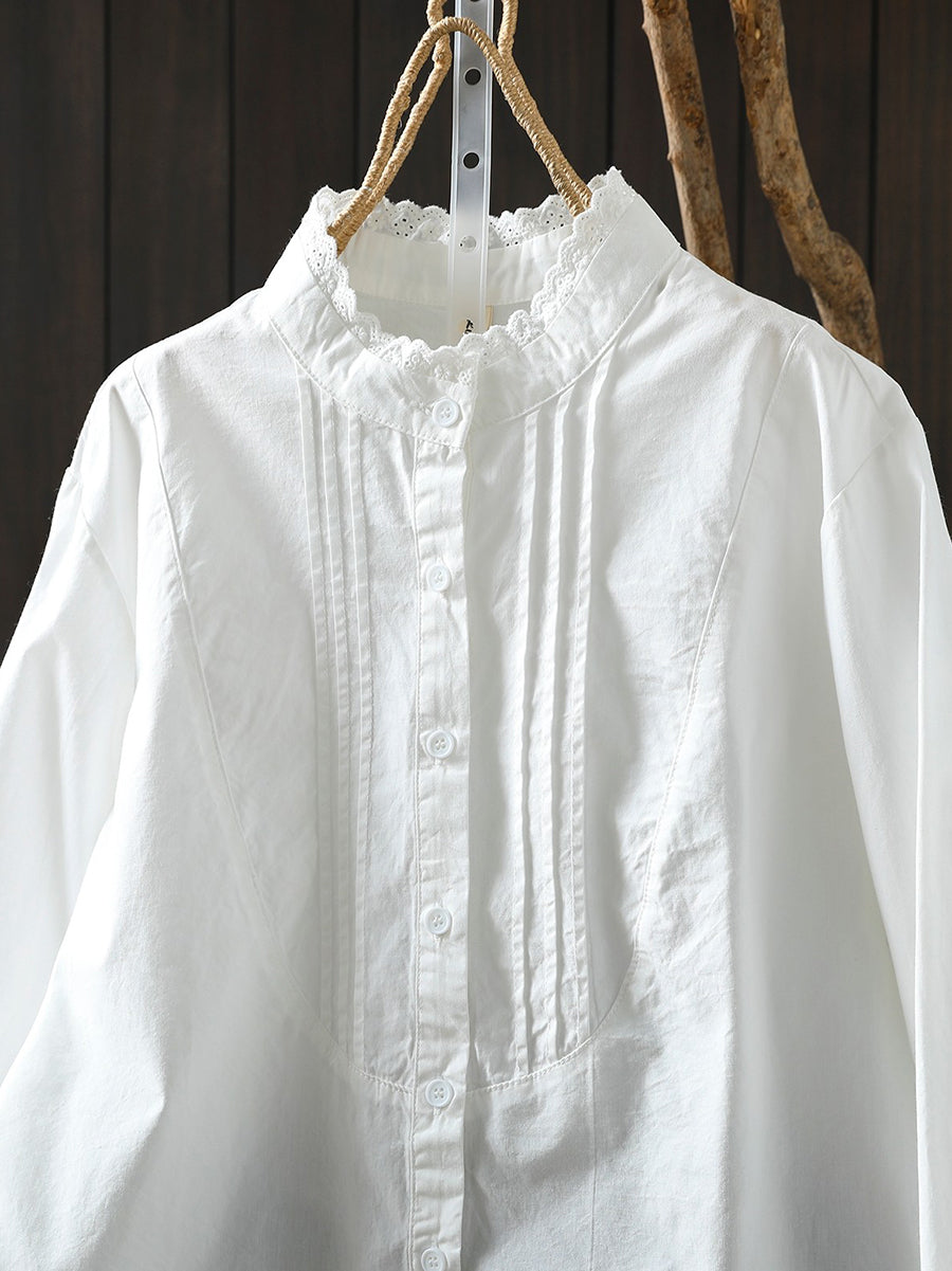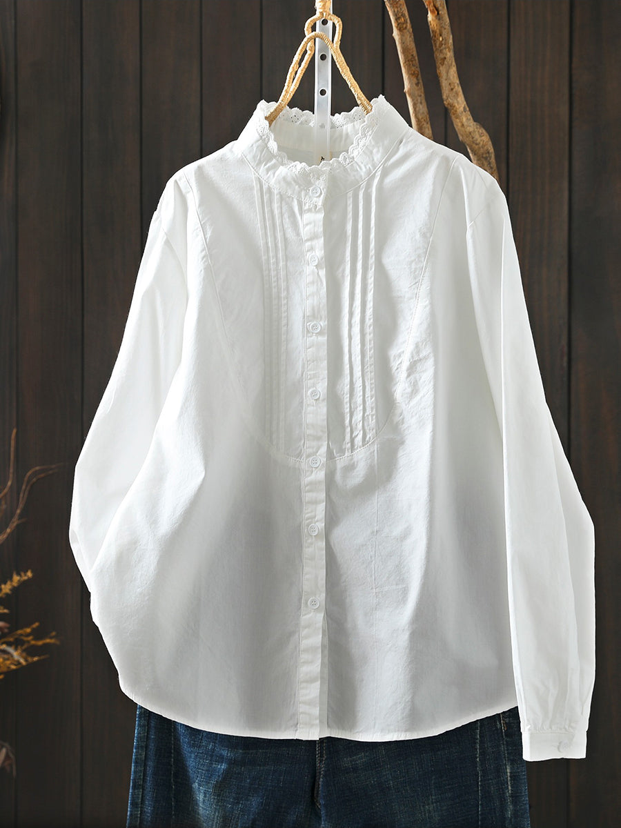 חולצת אביב לנשים עם צווארון עומד ומקומטת בצבע 100% כותנה