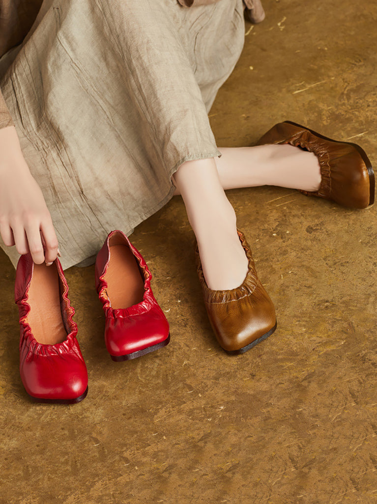 נשים קיץ צבע טהור נעלי עור רך שטוחות