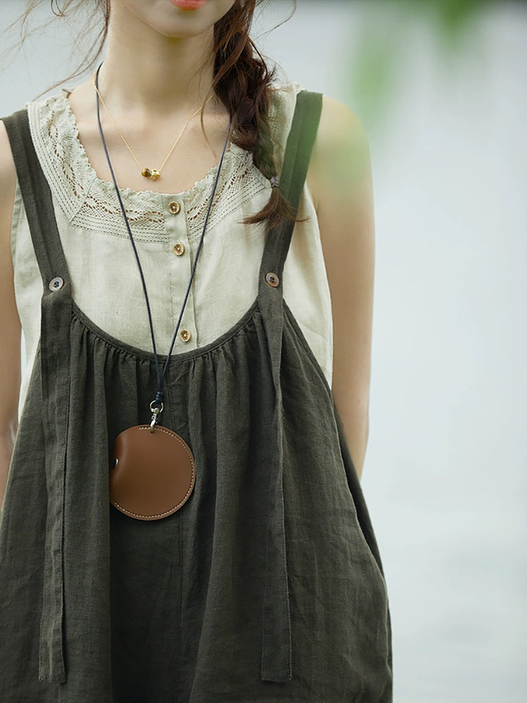 סרבלים לנשים בקיץ רטרו בצבע טהור 100% פשתן