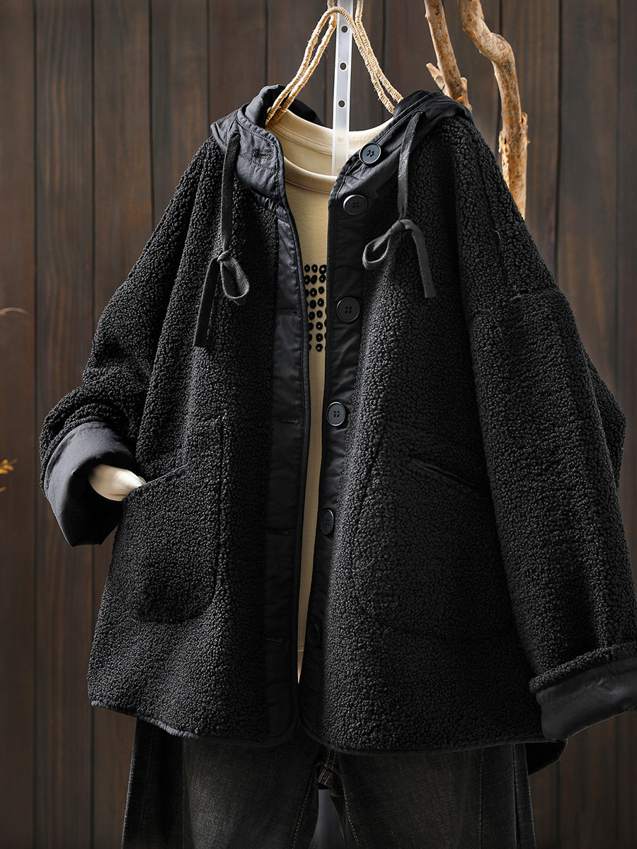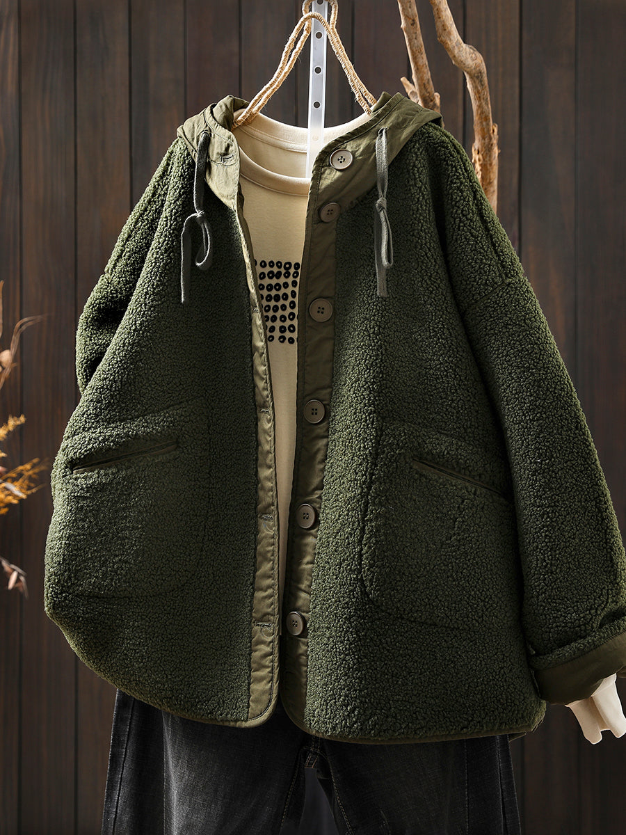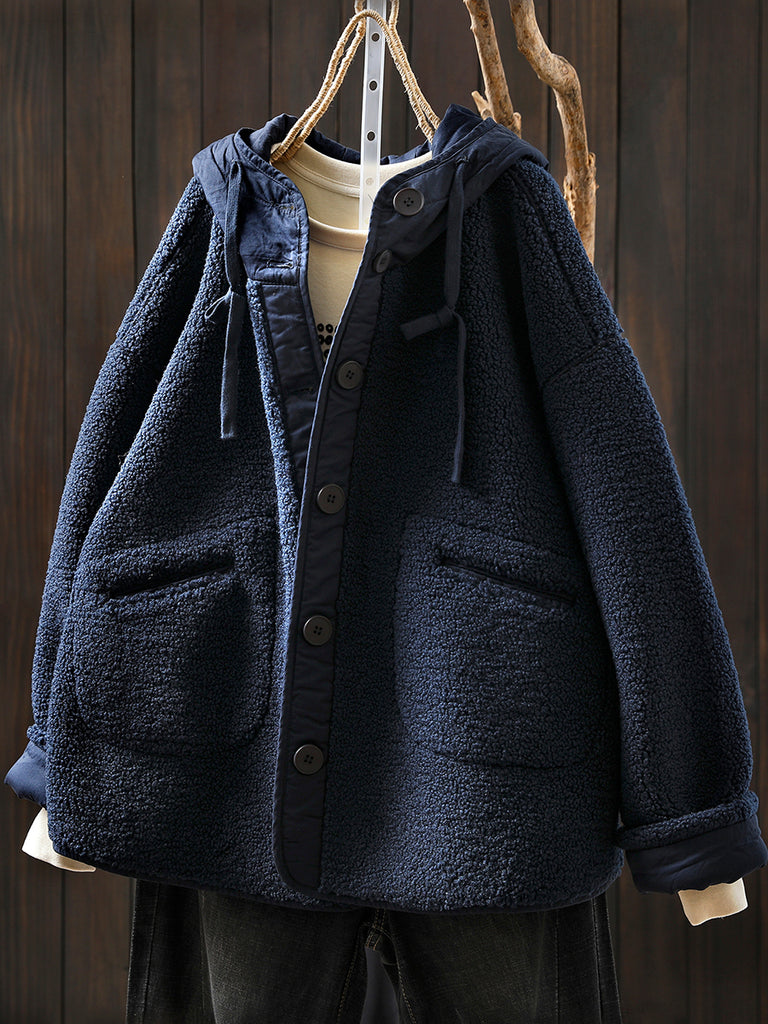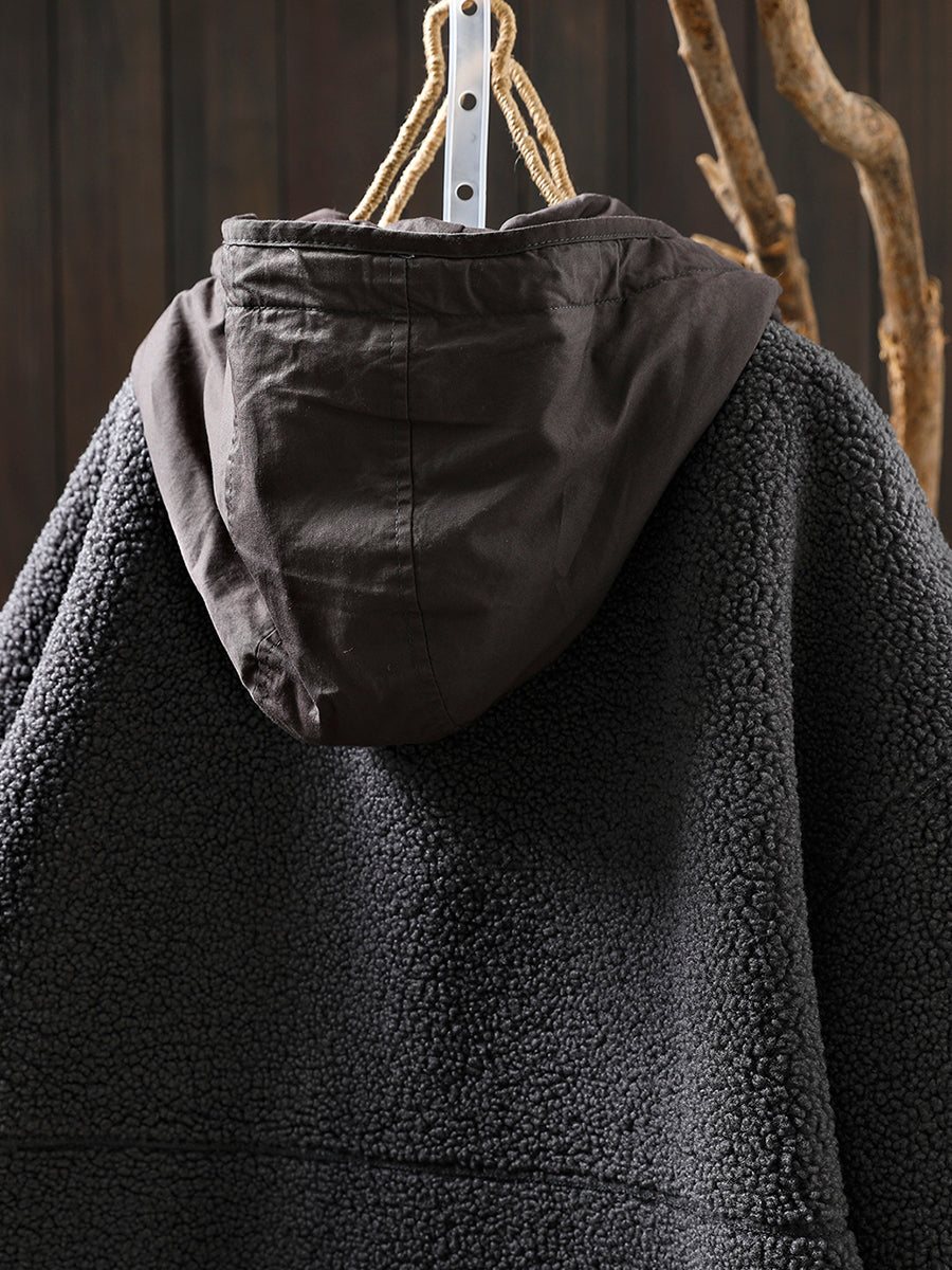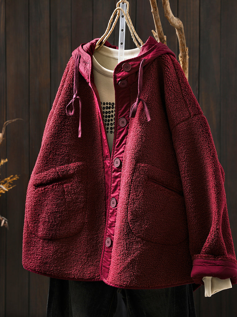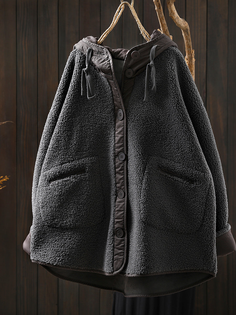 מעיל פליז בצבע טהור מזדמן לנשים בחורף