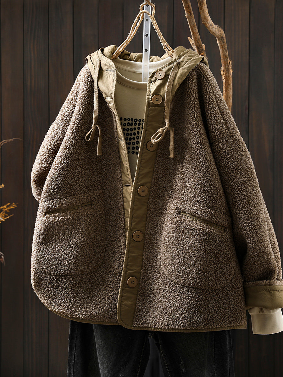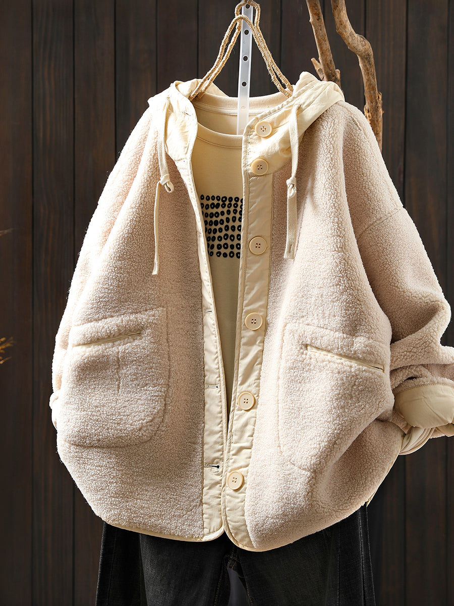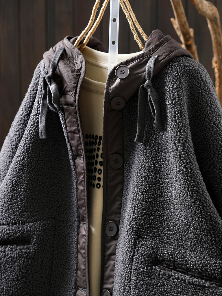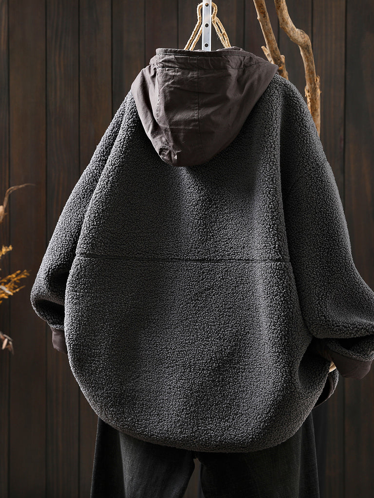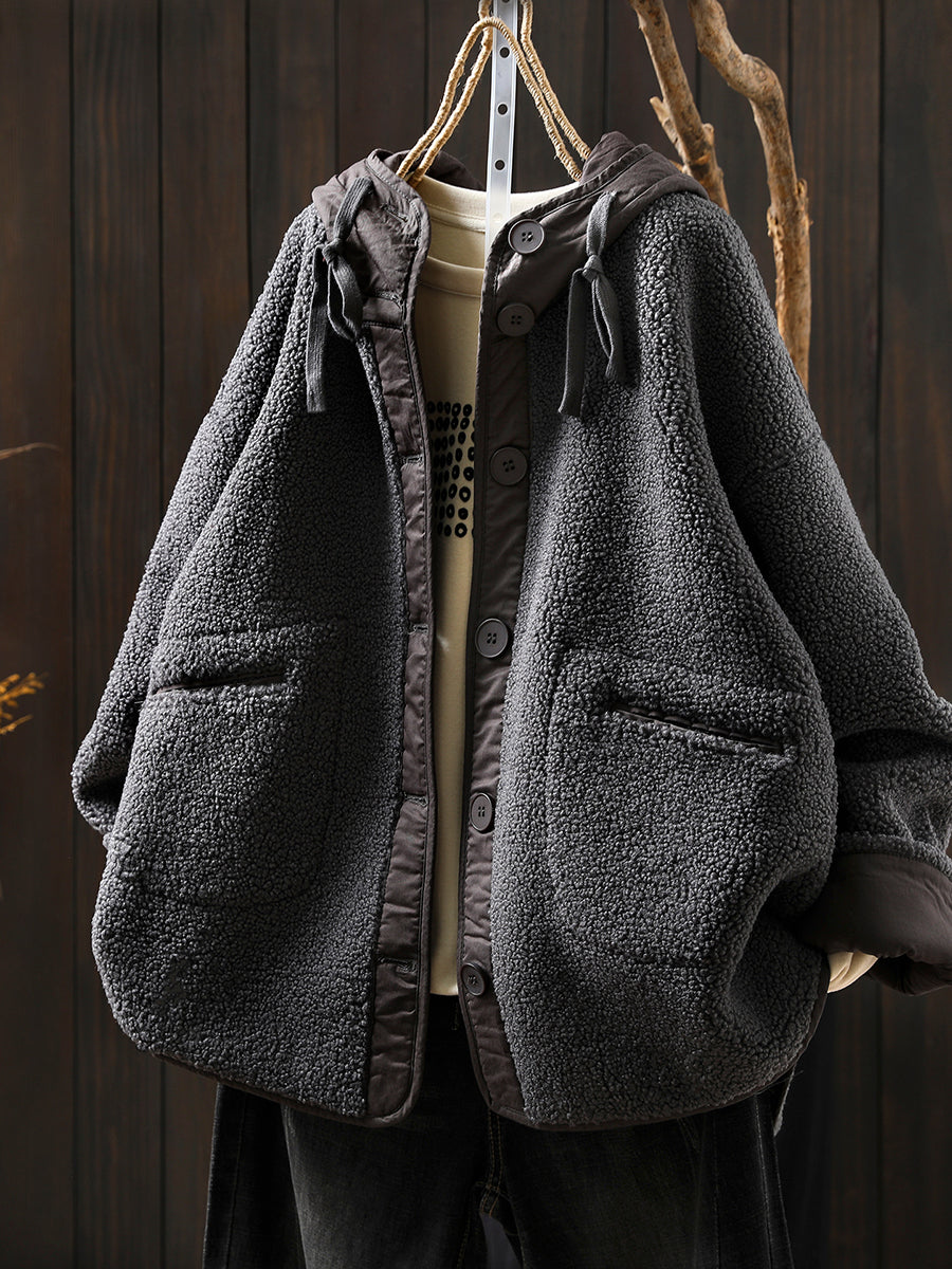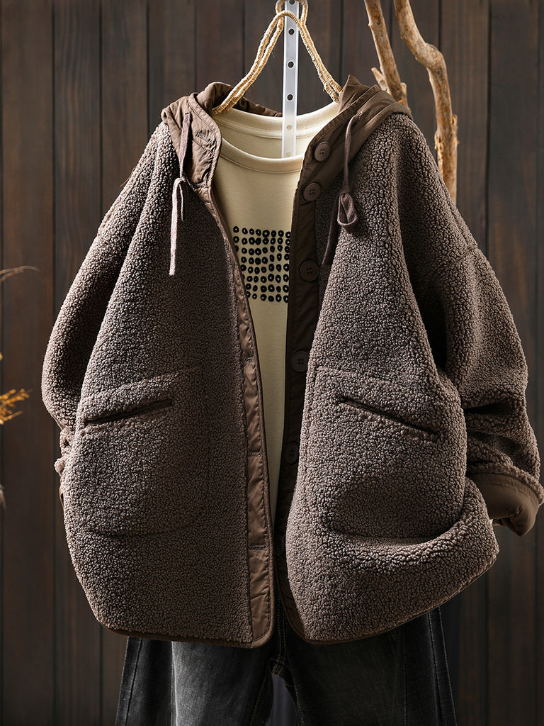 מעיל פליז בצבע טהור מזדמן לנשים בחורף