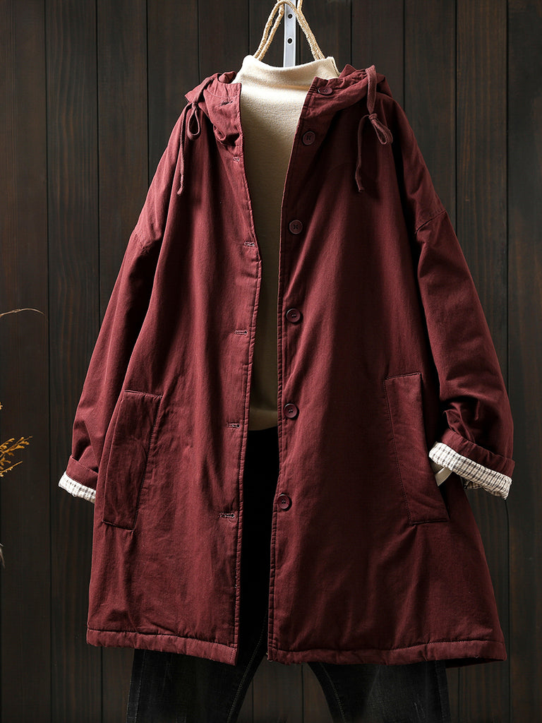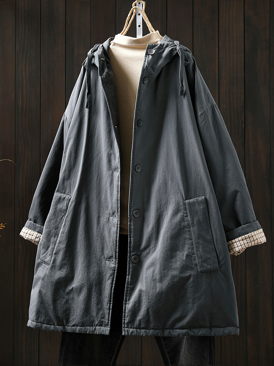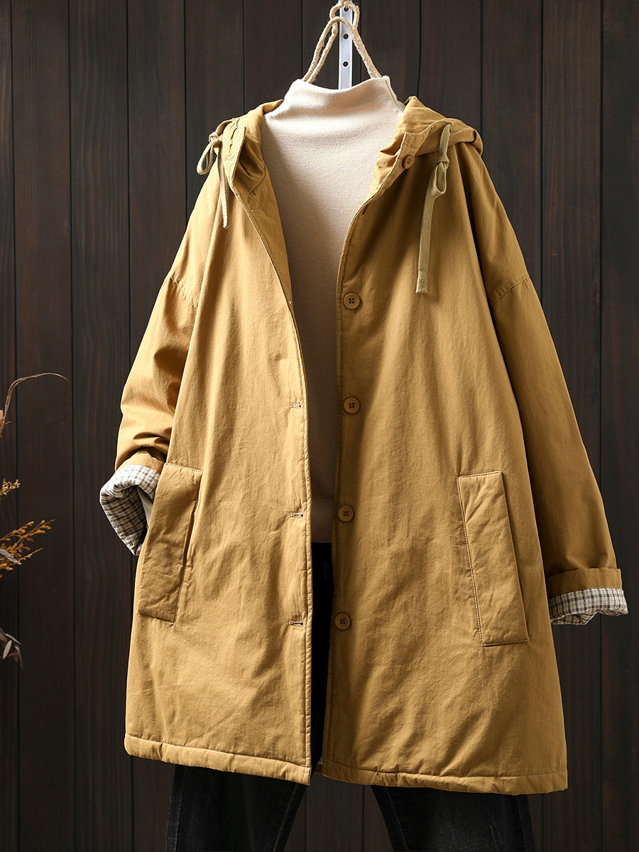 מעיל מרופד בצבע טהור מזדמן לחורף לנשים