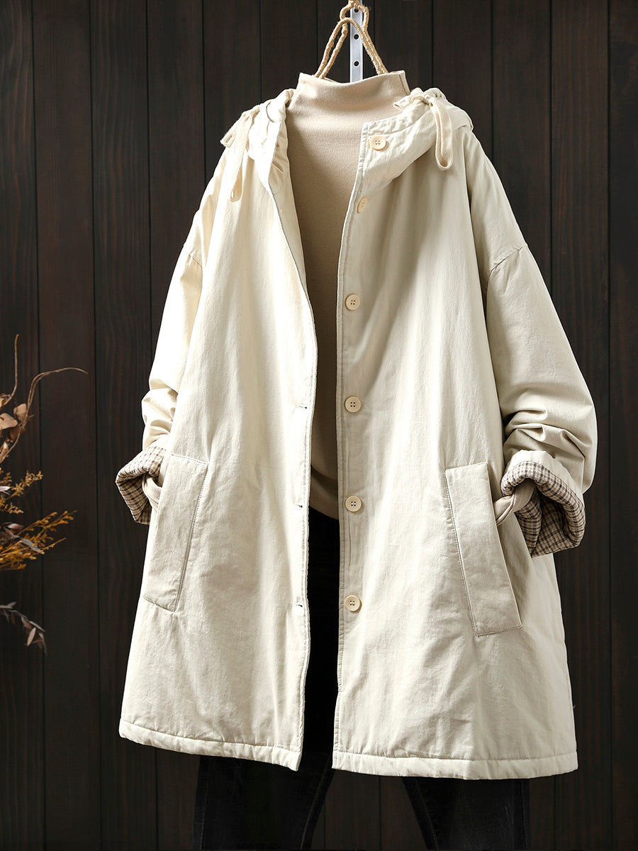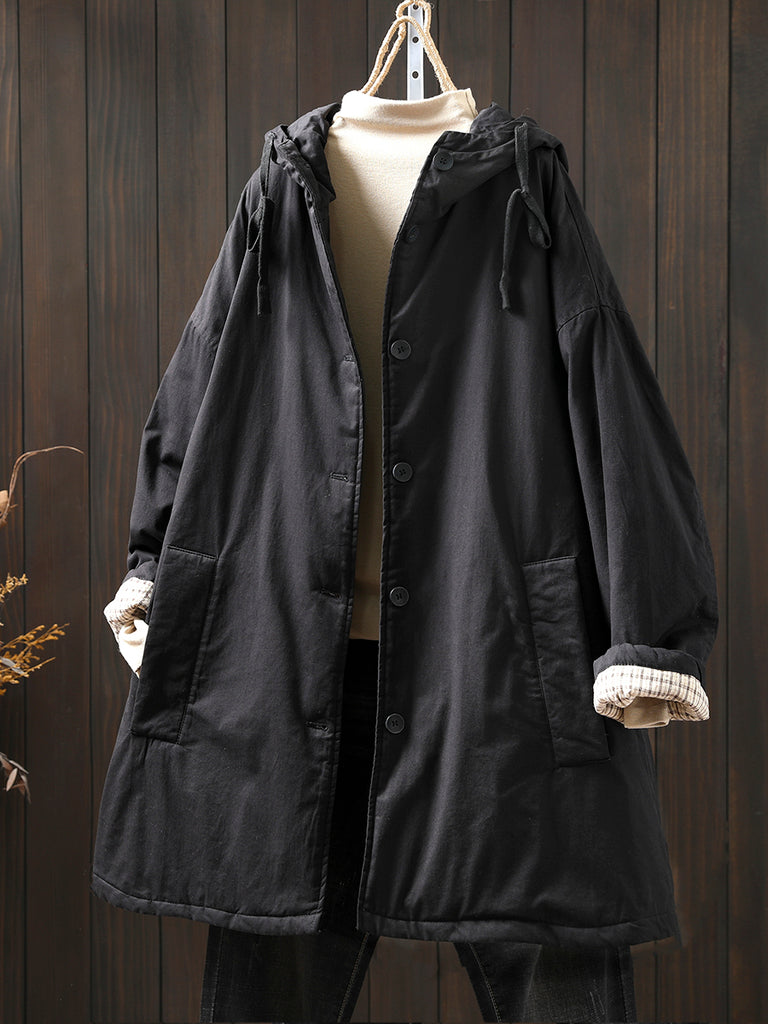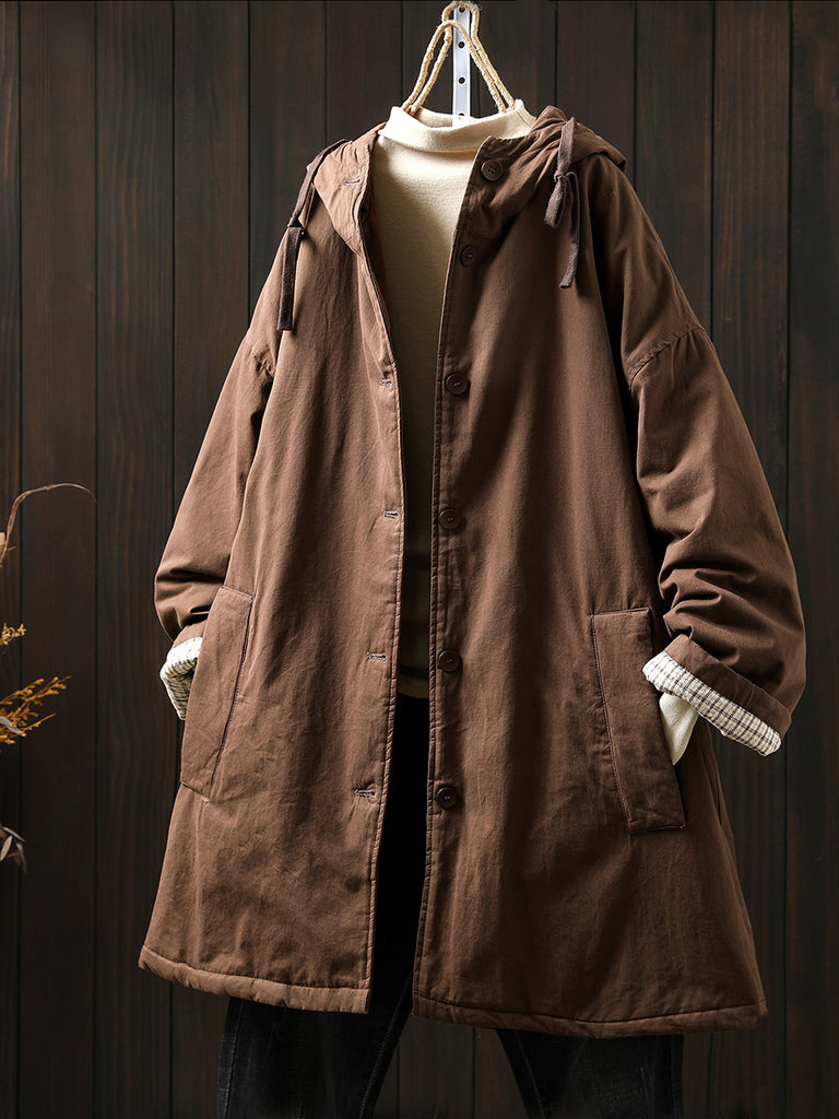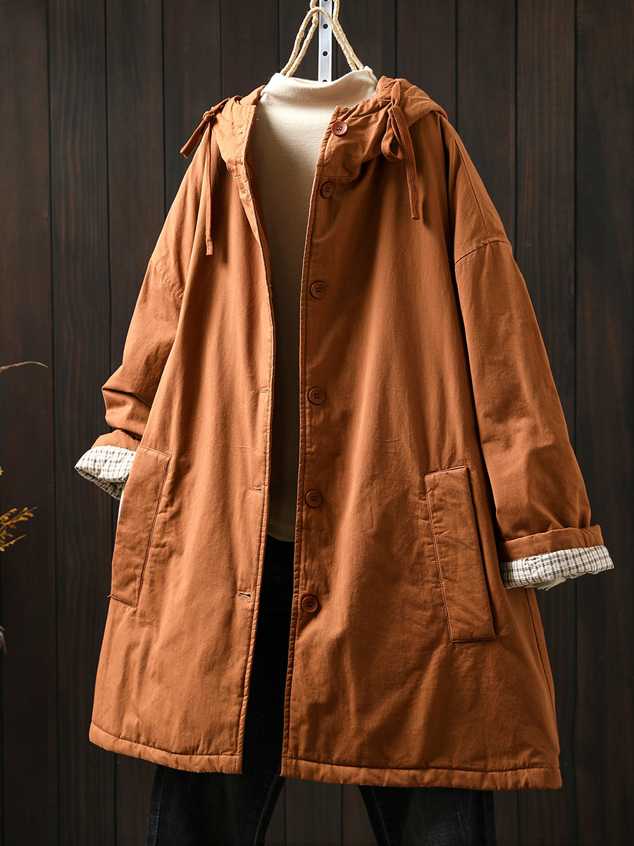 מעיל מרופד בצבע טהור מזדמן לחורף לנשים