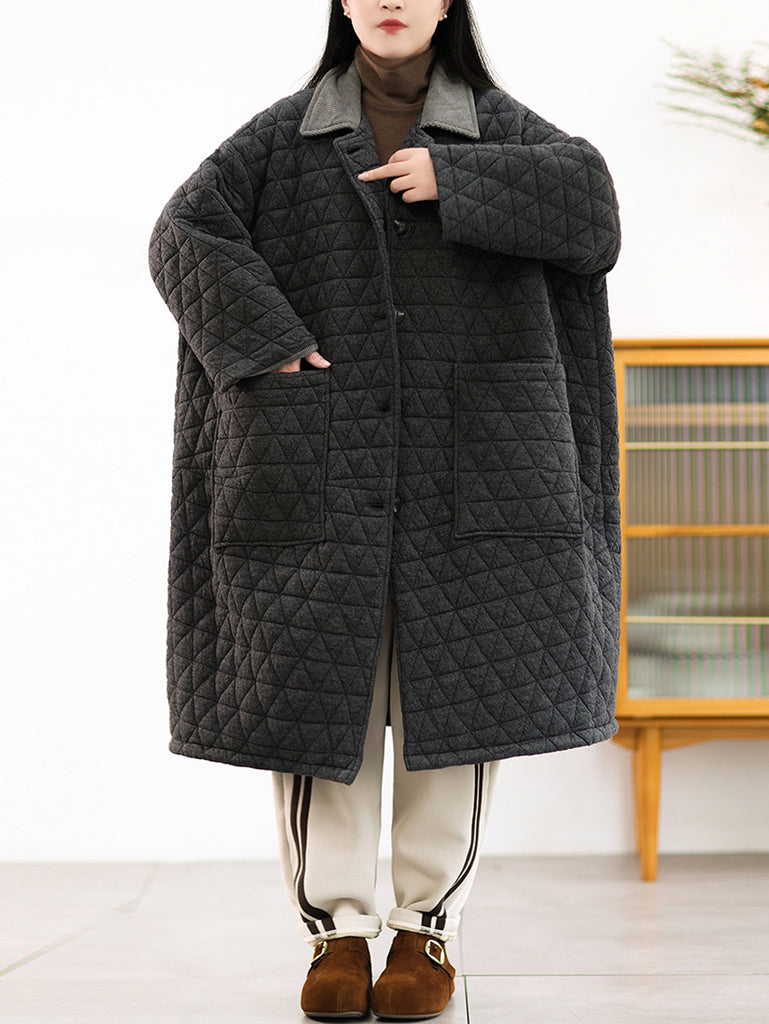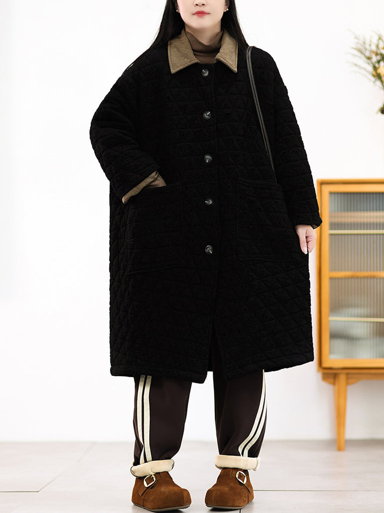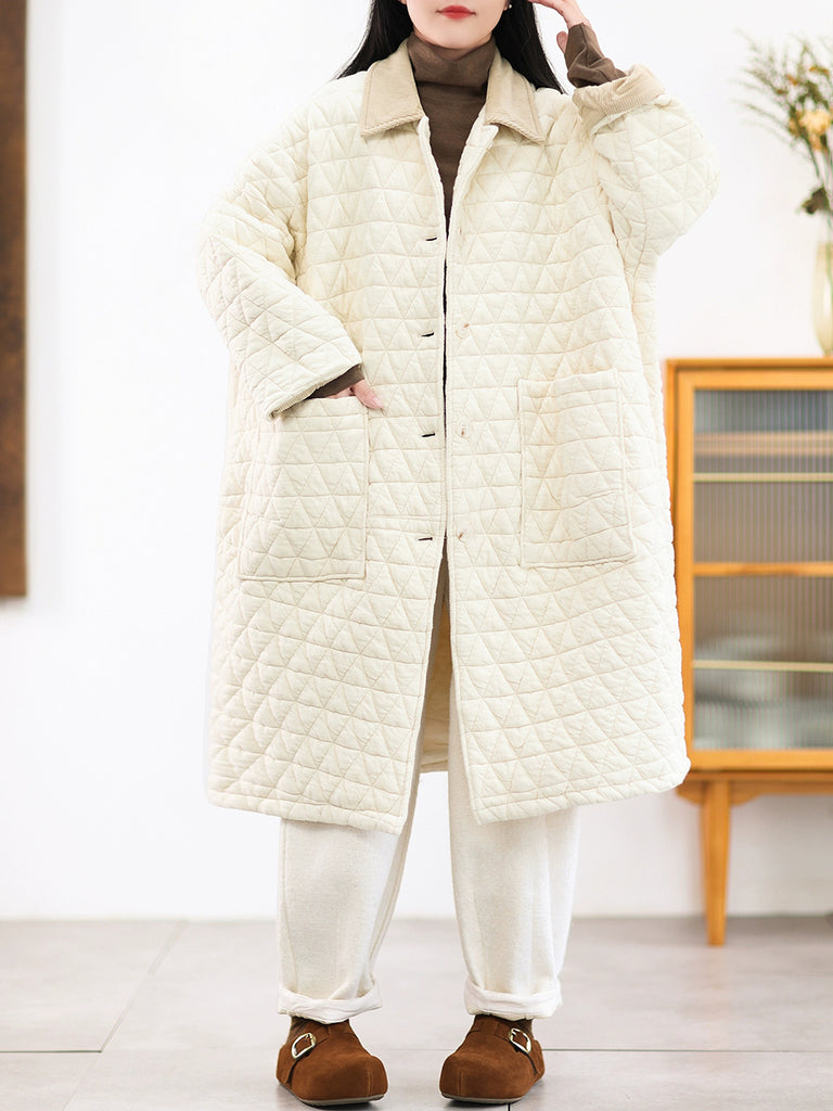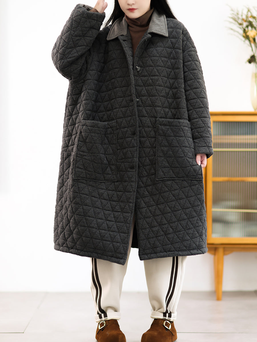 מעיל ארוך מרופד בצבע טהור לנשים עם צווארון מתקפל