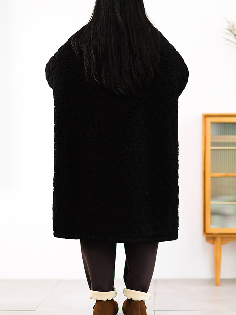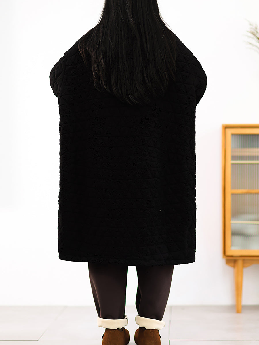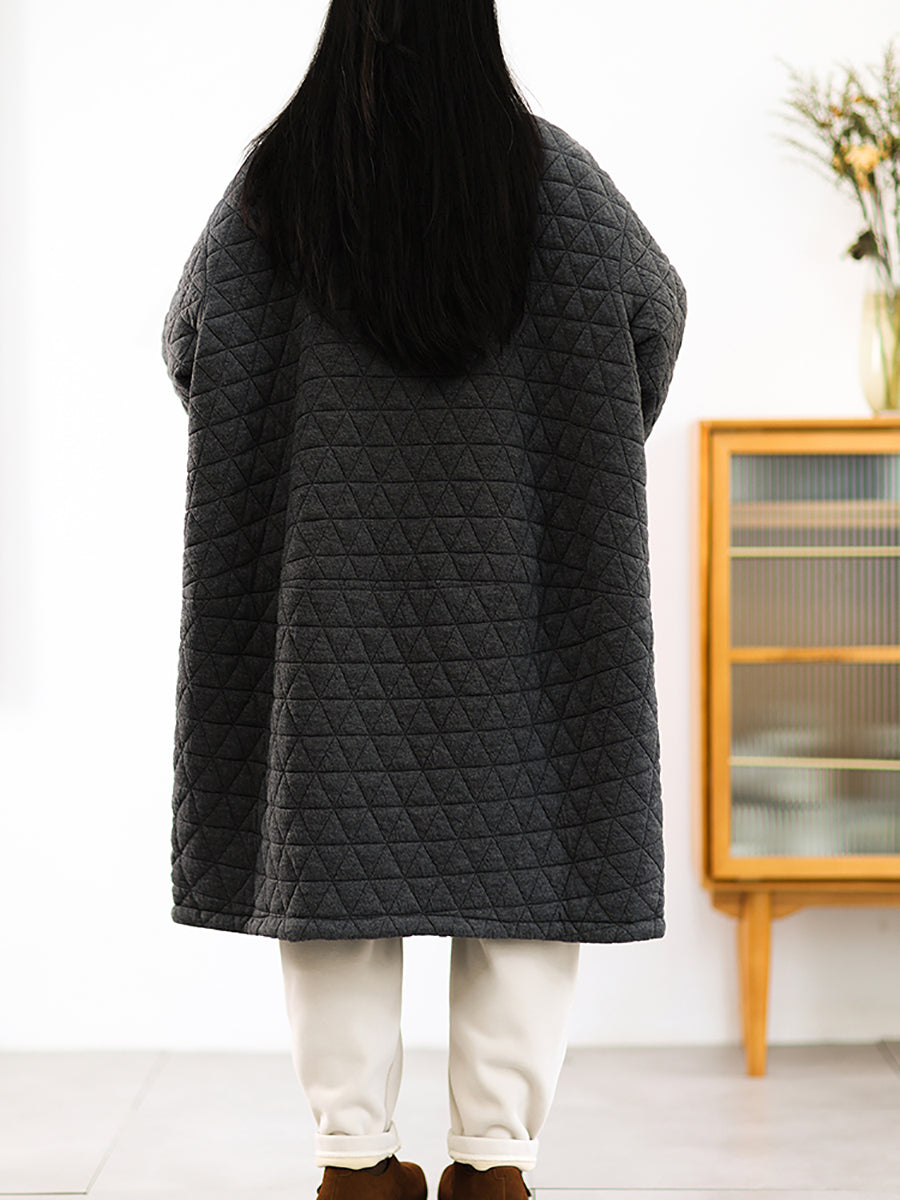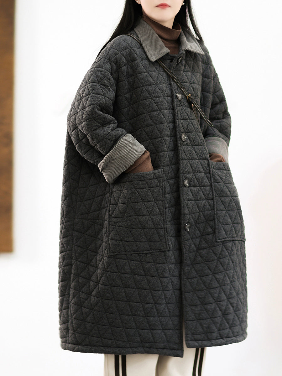 מעיל ארוך מרופד בצבע טהור לנשים עם צווארון מתקפל