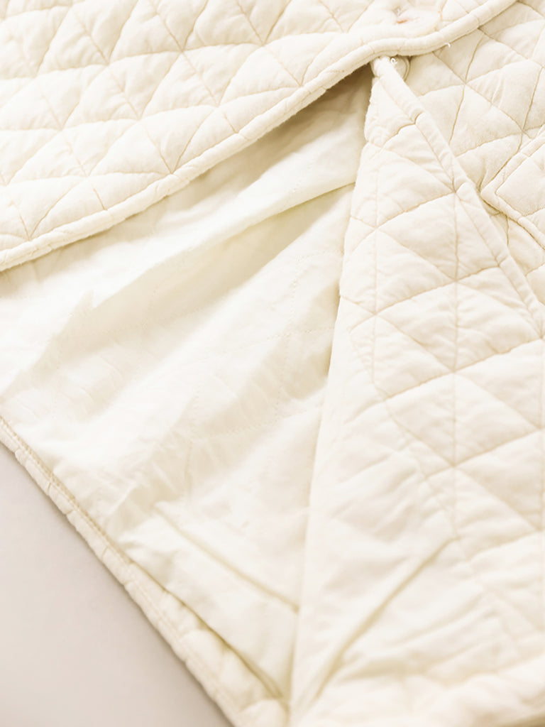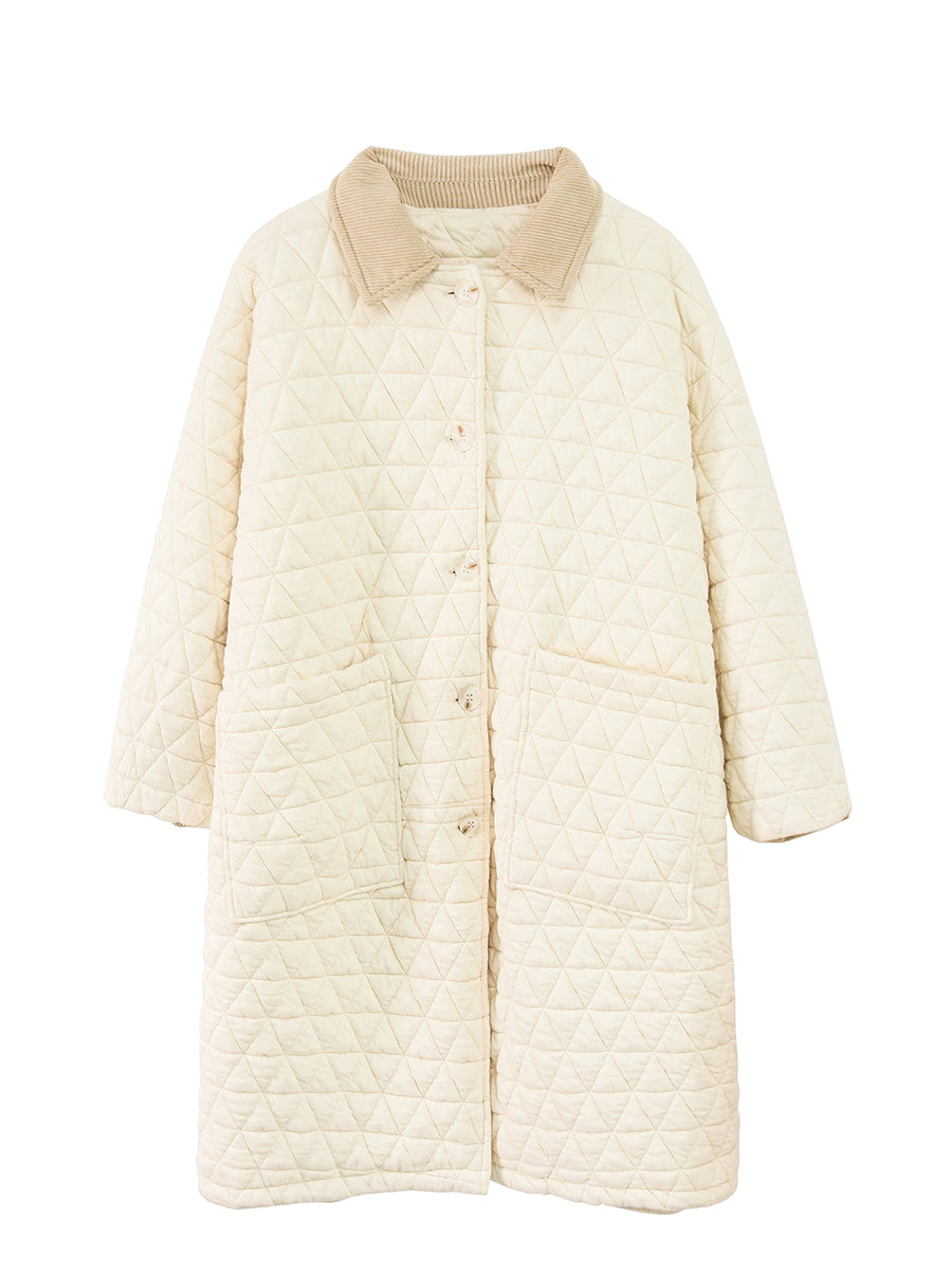 מעיל מרופד זה, עשוי מבד כותנה איכותי, מציג צווארון קלאסי עם שרוולי ראגלן המספקים תנועה בלתי מוגבלת ונוחות עכשווית. שילוב הצבעים האחיד הצנוע מציע גמישות יוצאת דופן ללבישה בשכבות ועיצוב לאורך עונות השנה. עם עיצוב בהשראת וינטג' ומבנה שרוולים מלאים, פריט זה מספק חמימות משמעותית במהלך חודשי הסתיו והחורף תוך שמירה על מראה מלוטש ומתוחכם.