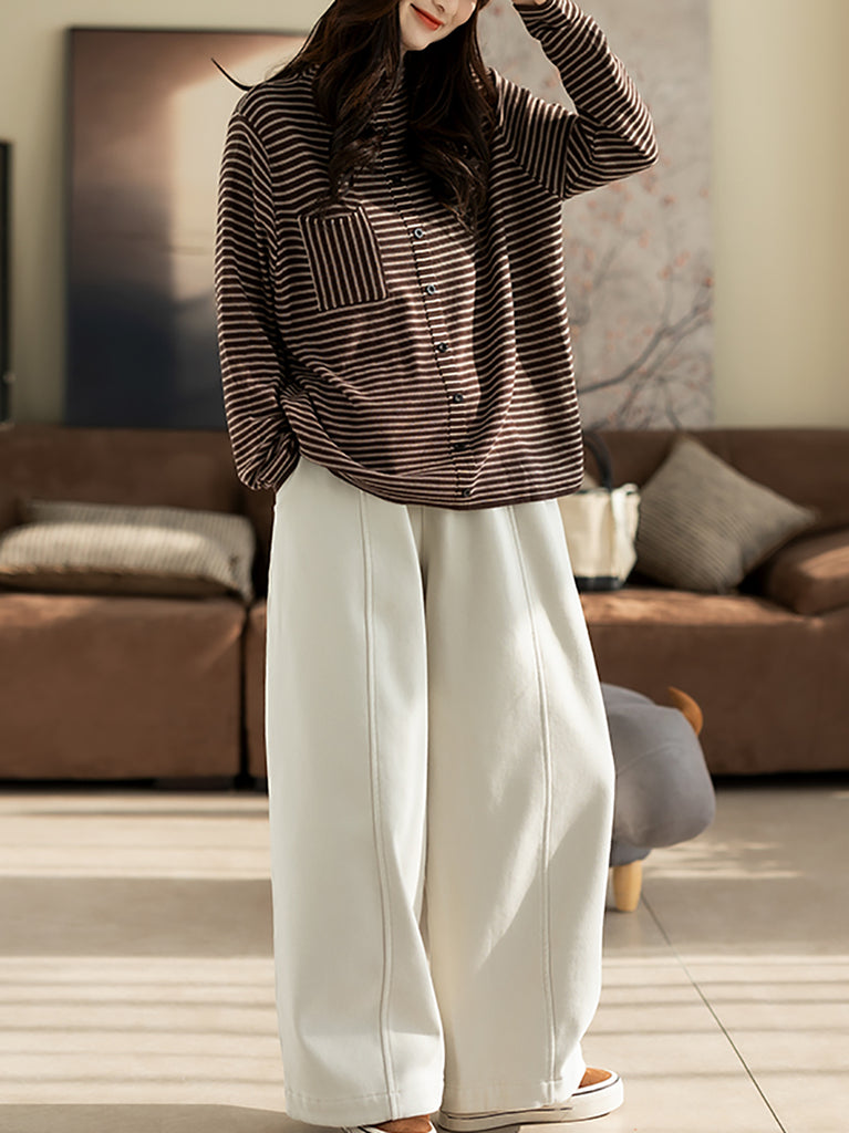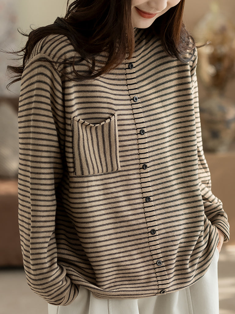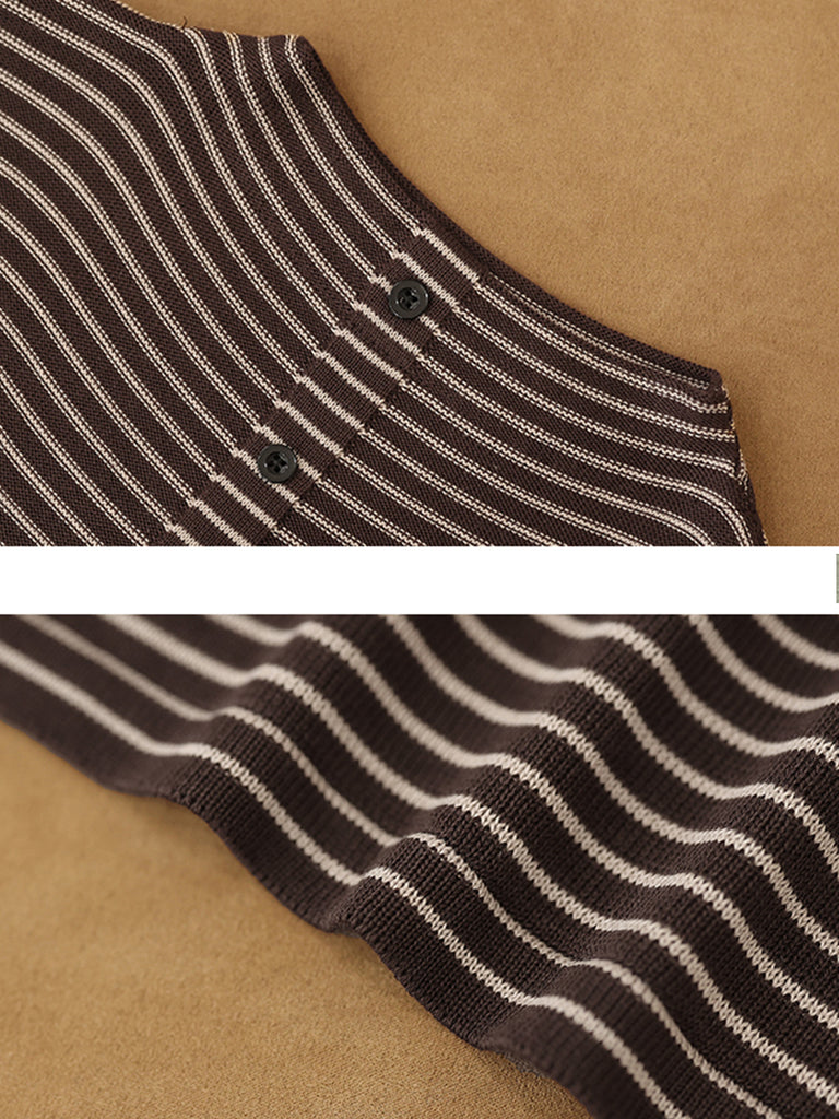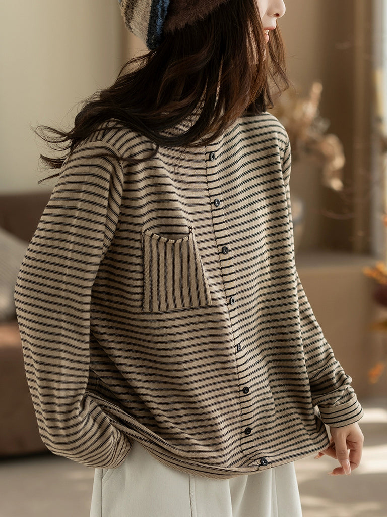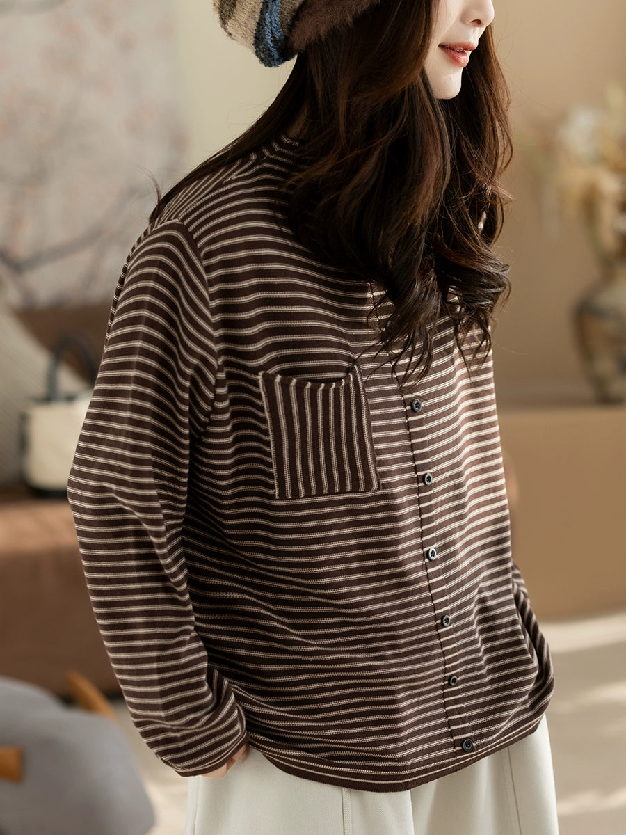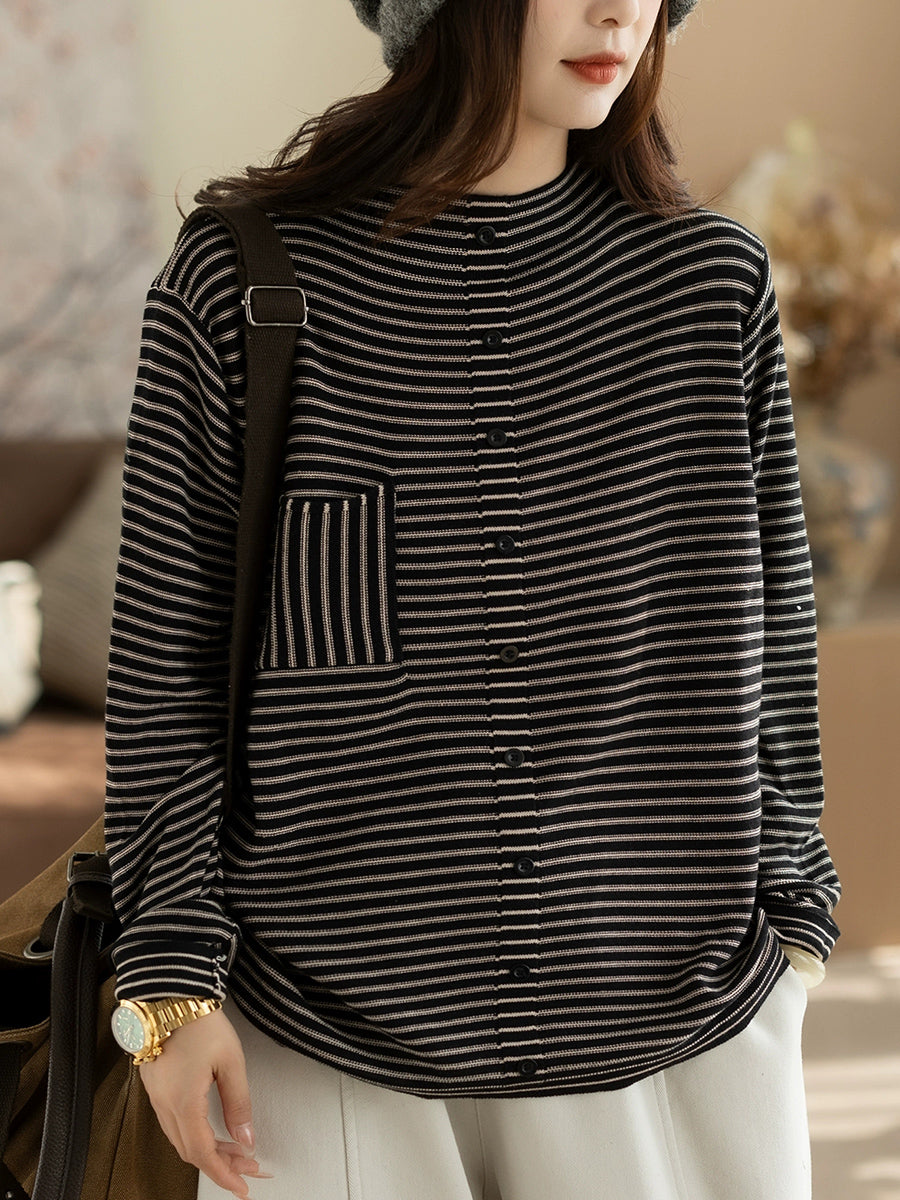 חולצת חורף וינטג' עם פסים לנשים וצווארון גולף חצי גולף