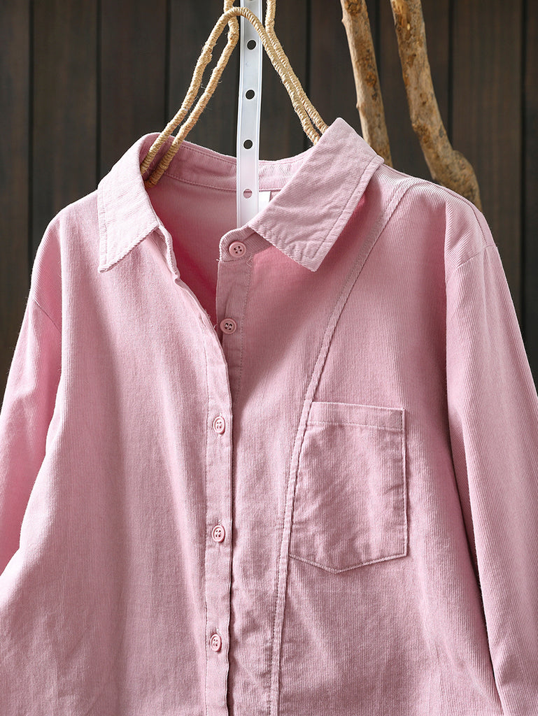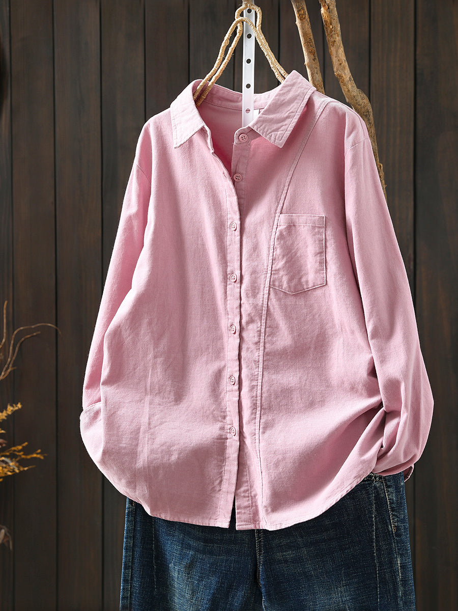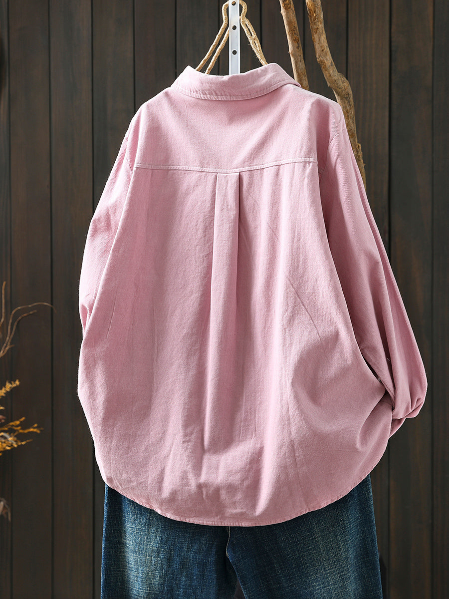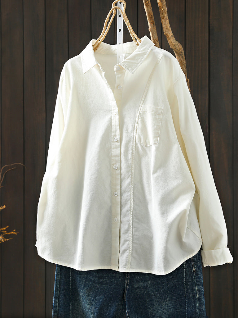 חולצת נשים עם צווארון הפוך בצבע טהור, 100% כותנה, אומנותית