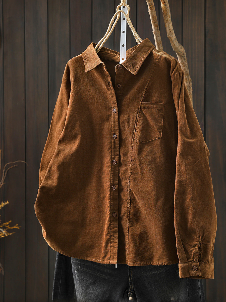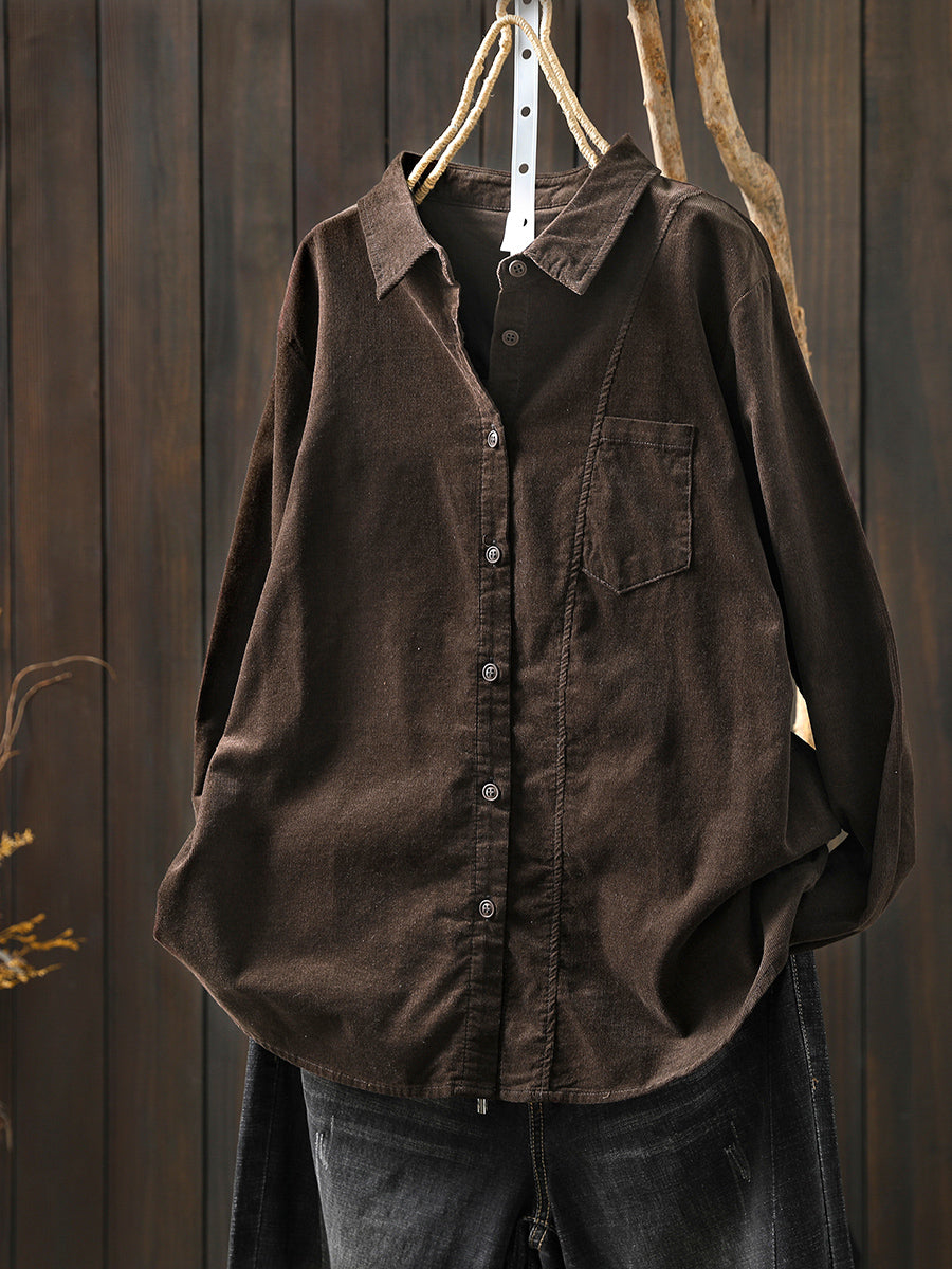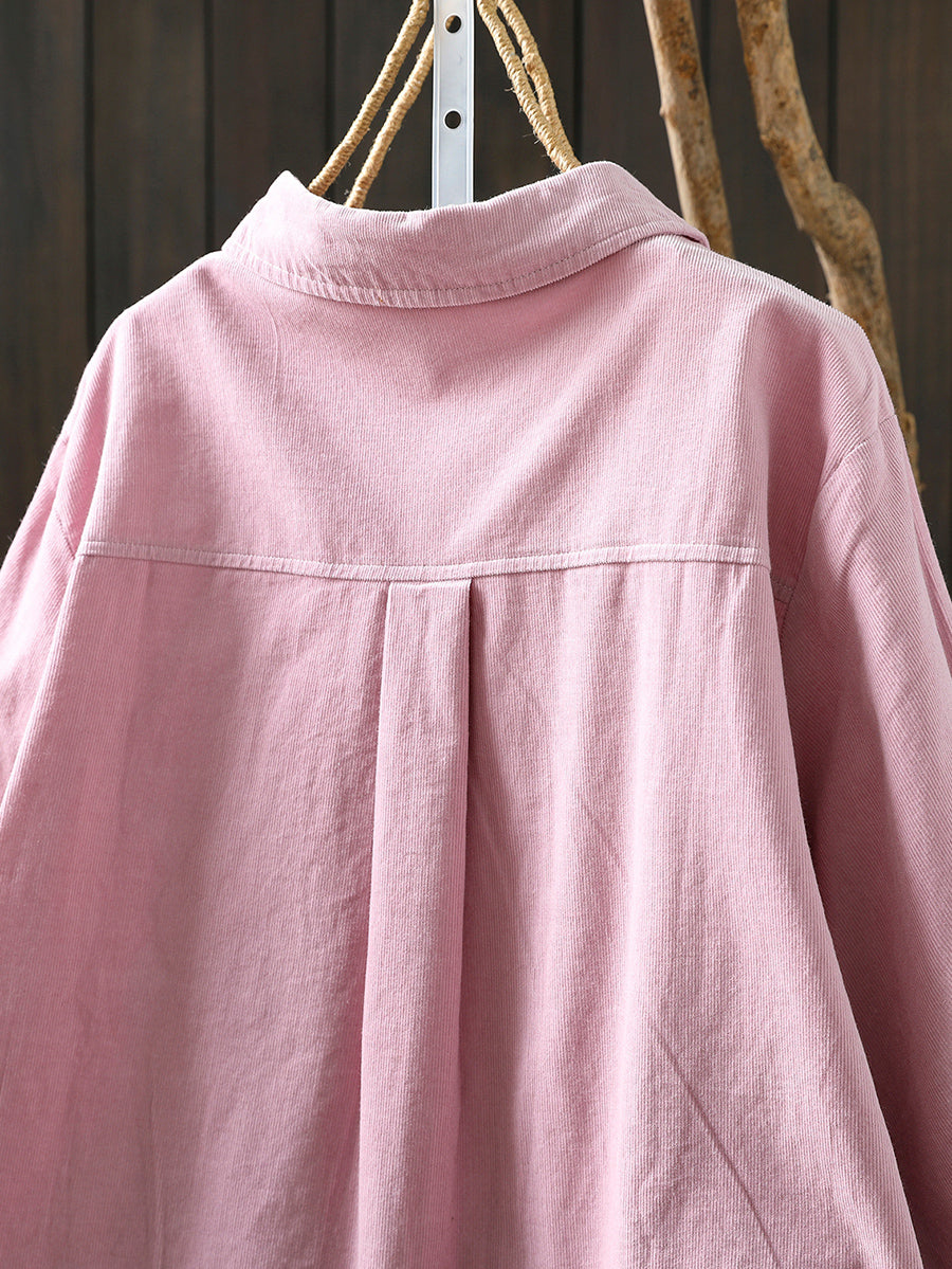 חולצת נשים עם צווארון הפוך בצבע טהור, 100% כותנה, אומנותית