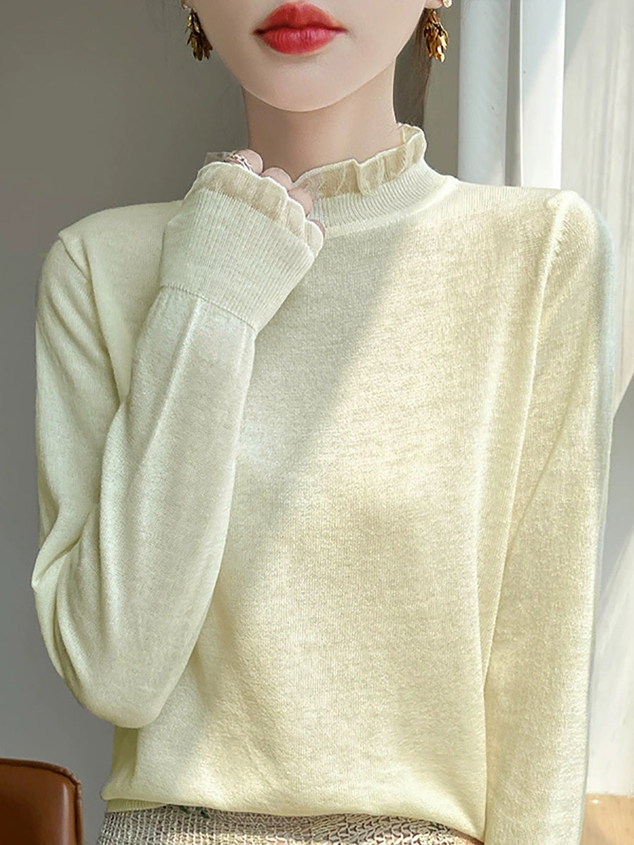סוודר צווארון תחרה בצבע טהור לאמנותי בחורף לנשים