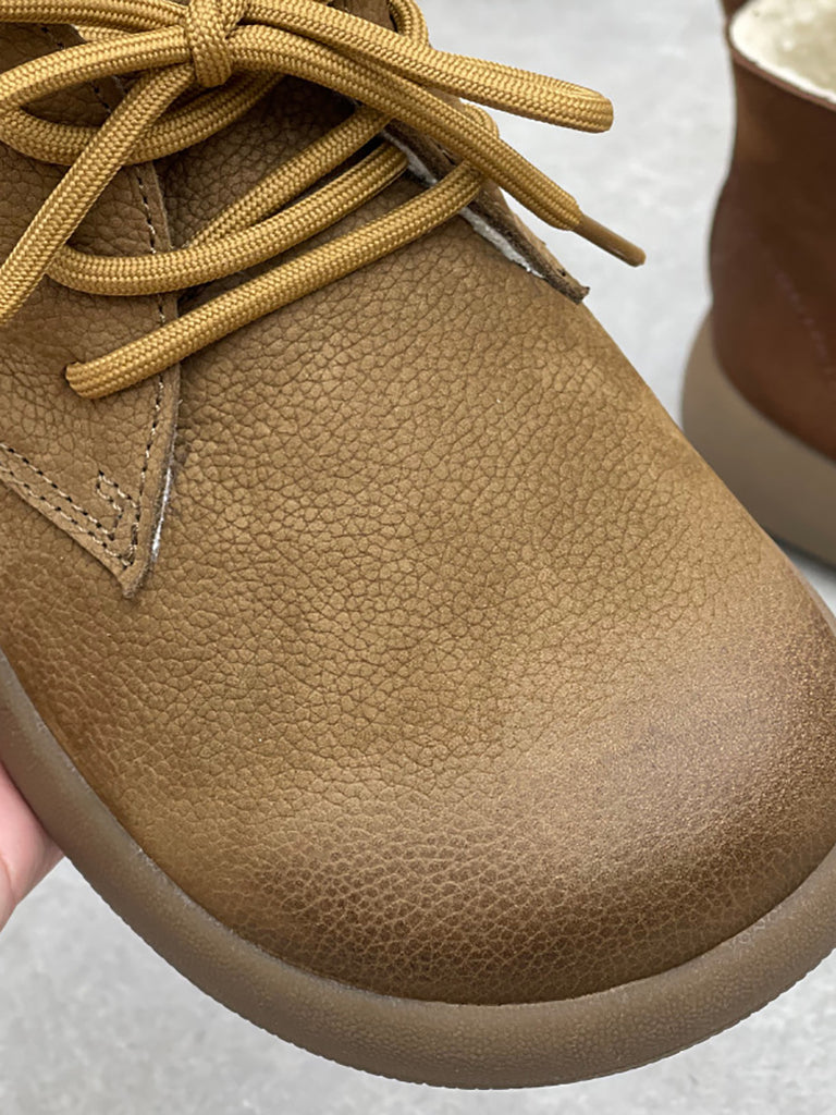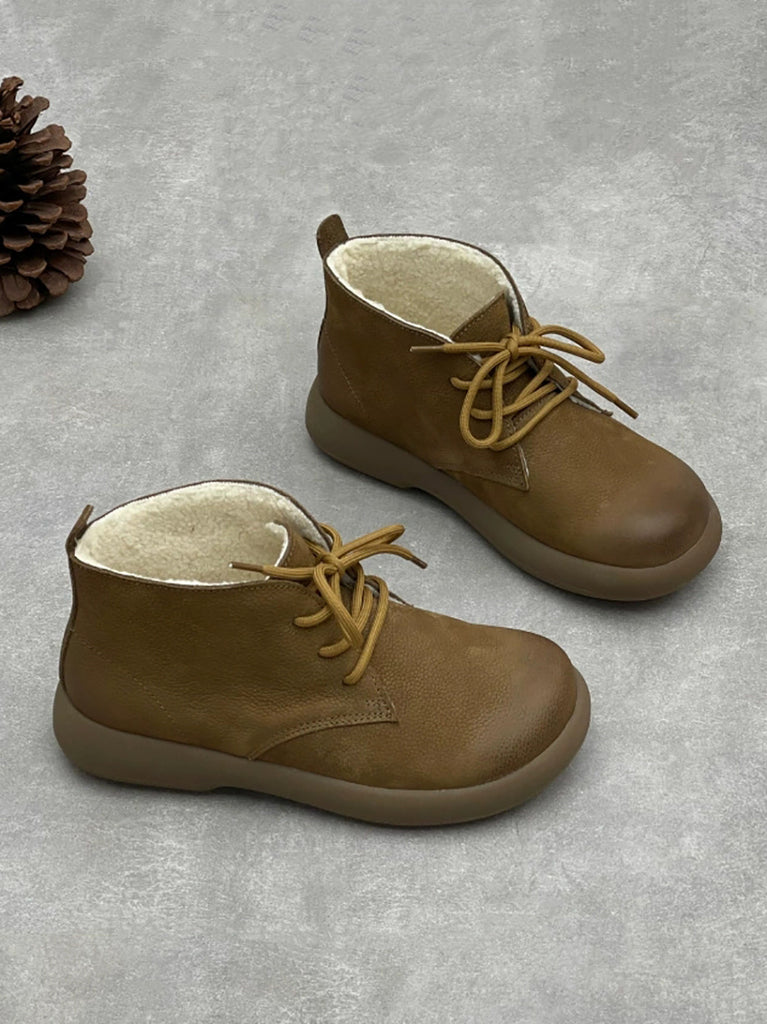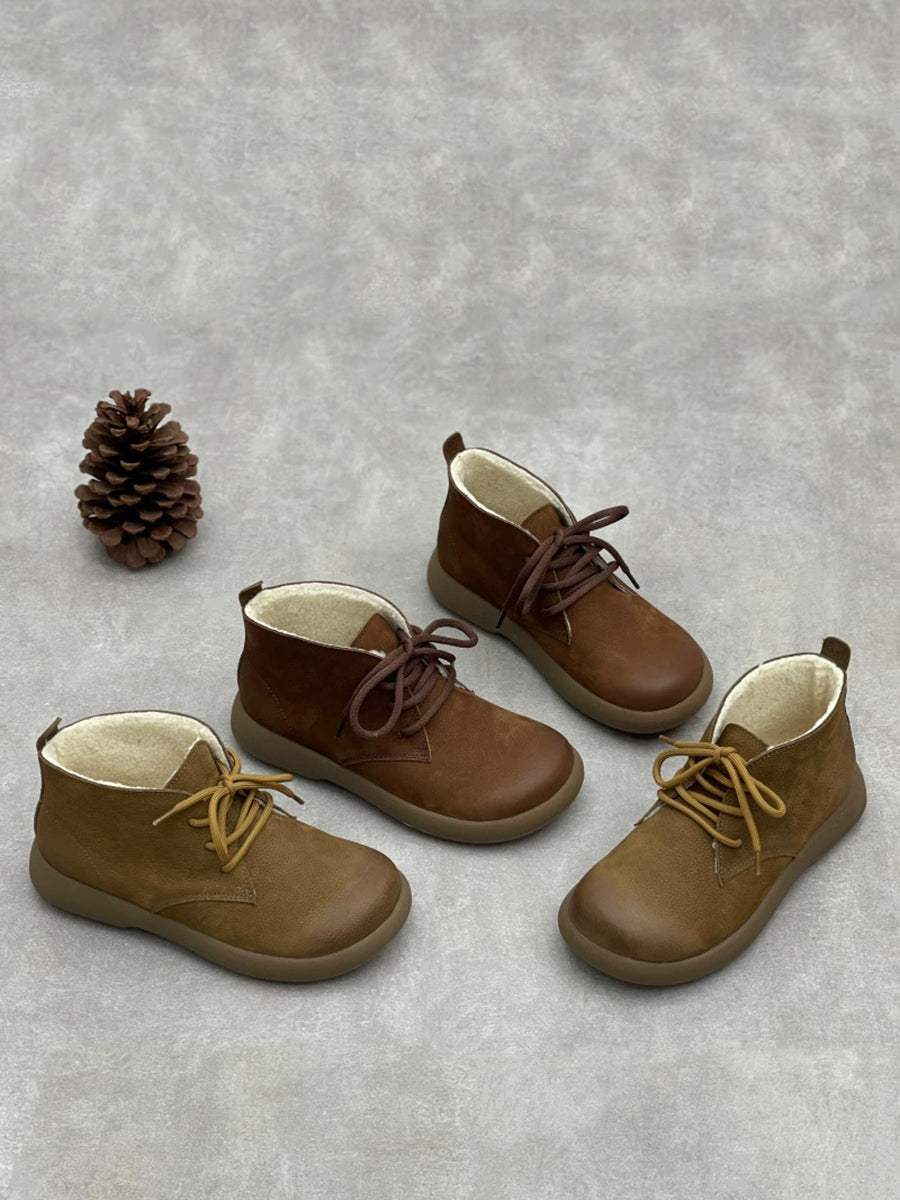 מגפי קרסול וינטג' מעור אמיתי לנשים עם בטנת פליז