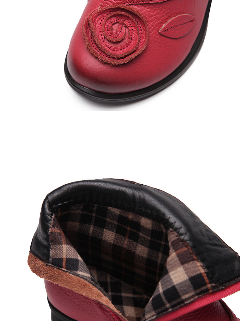 נשים רטרו פרח עור מגפיים באמצע עקב מוצק