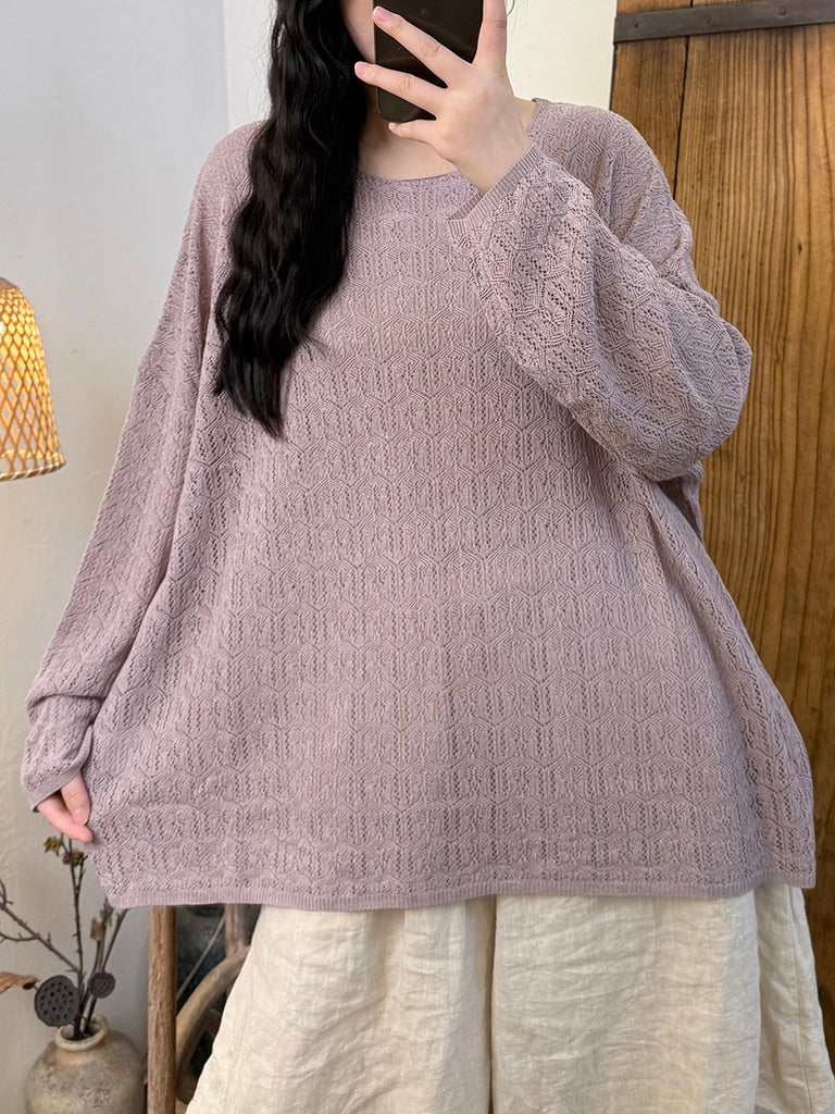 חולצת O-צוואר סרוגה בצבע פשתן מזדמן לנשים בסתיו