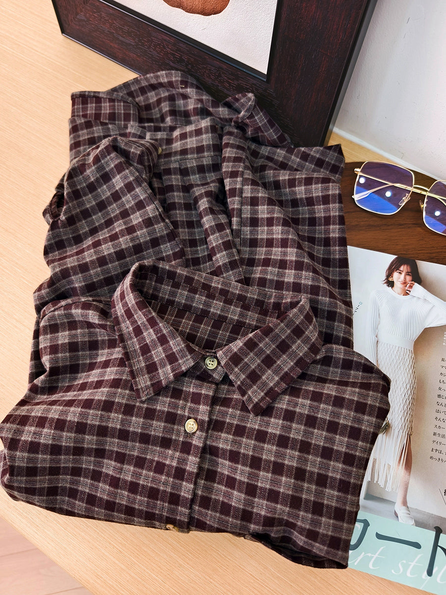 חולצת צווארון משובצת וינטג' לנשים בסתיו