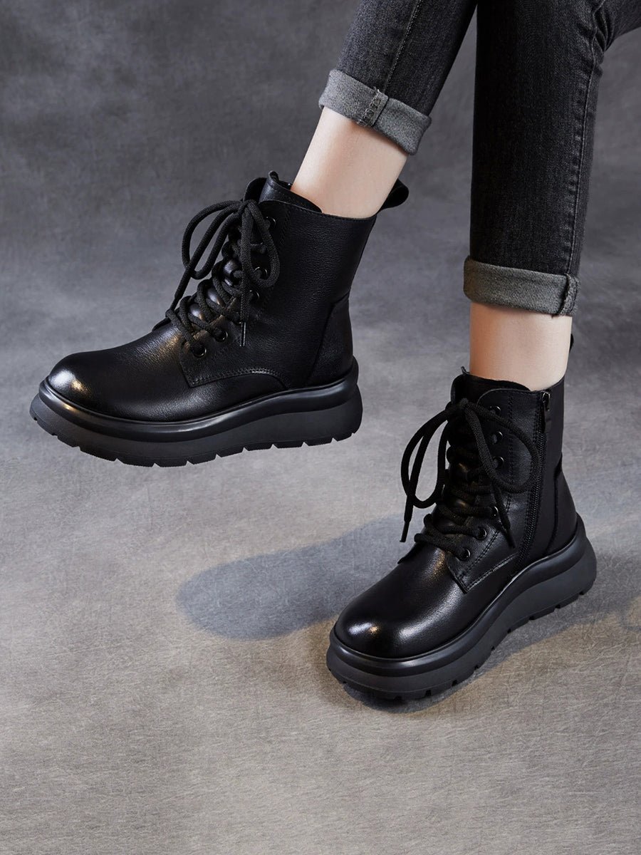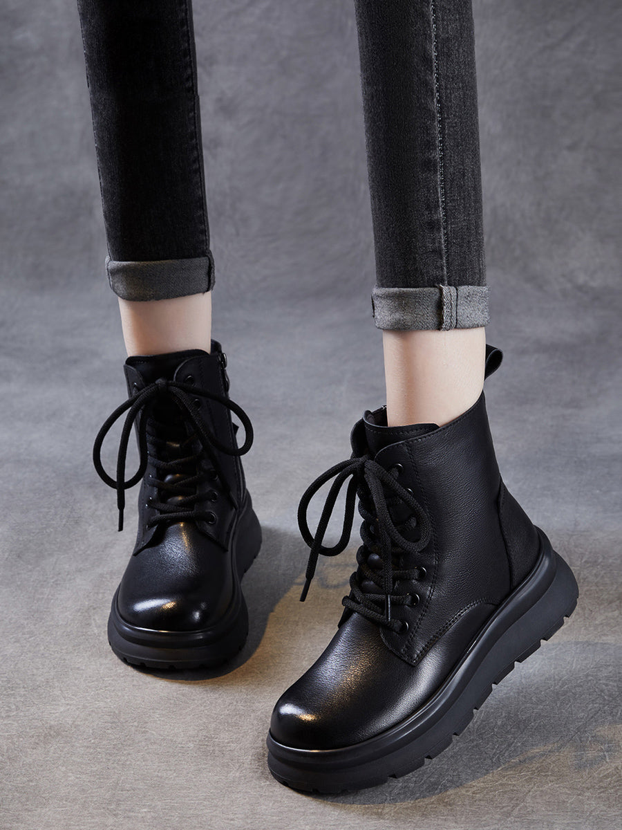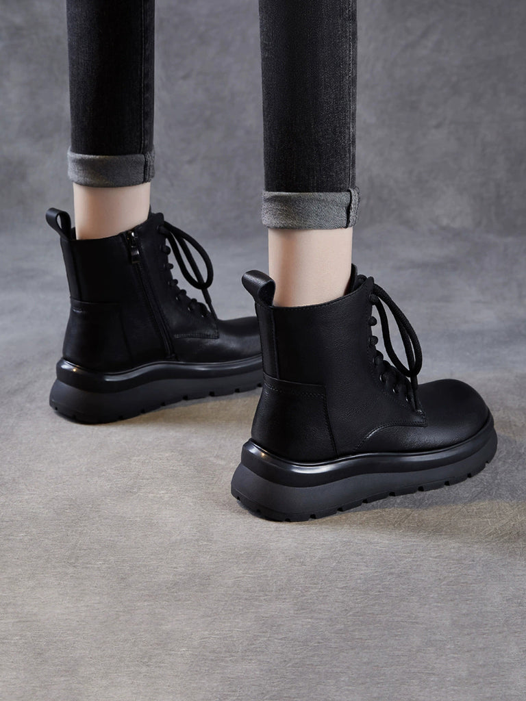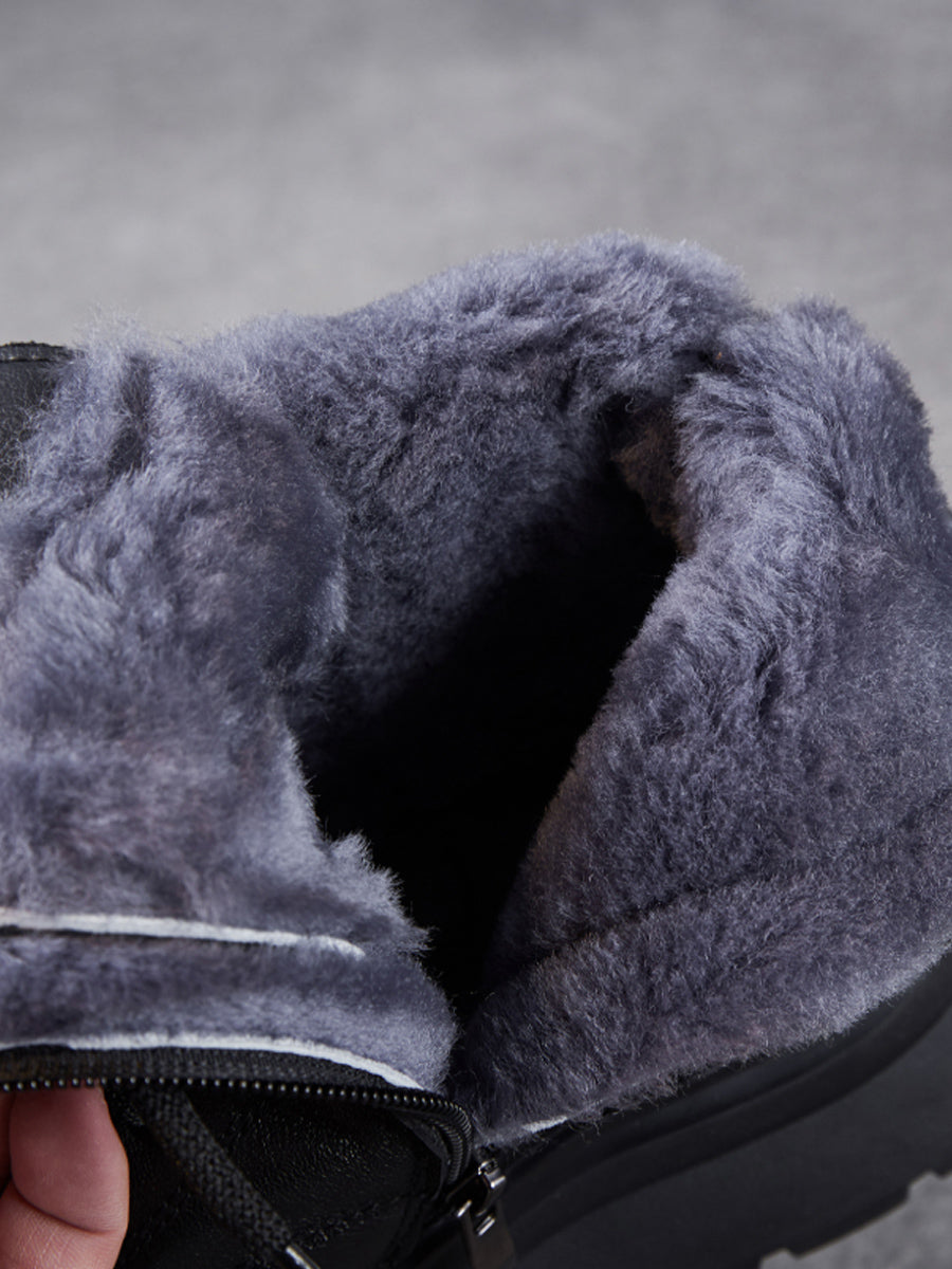מגפי חורף מזדמנים מעור אמיתי עם בטנת פליז לנשים