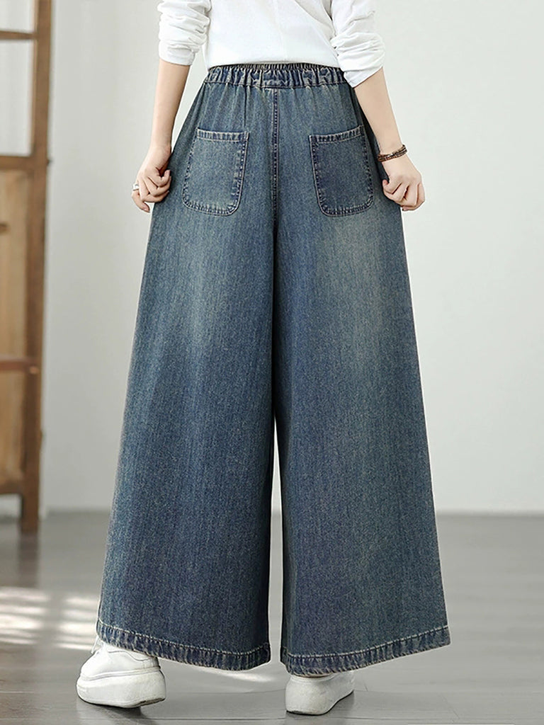 מכנסי ג'ינס רחבים בגזרה ישרה לנשים בסגנון סתיו-חורף