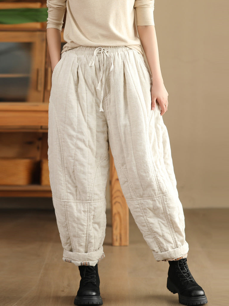 מכנסי הרמון מרופדים בצבע טהור 100% פשתן לנשים בסתיו
