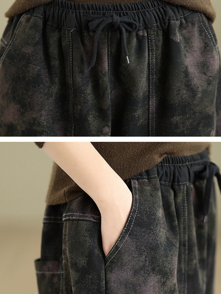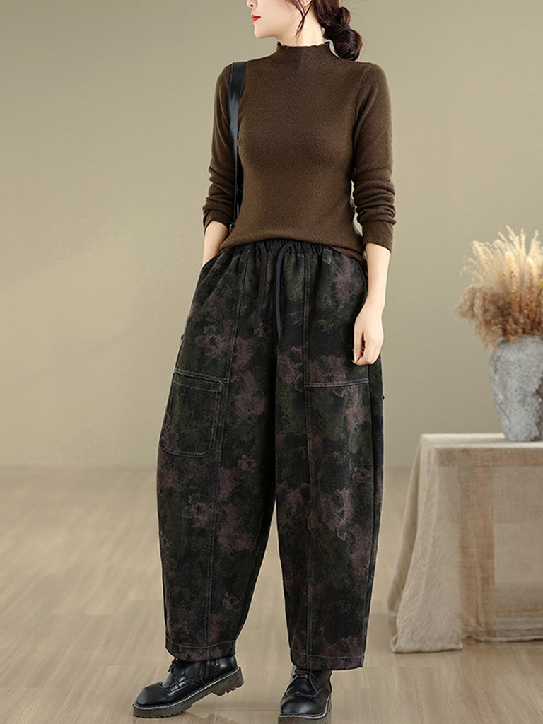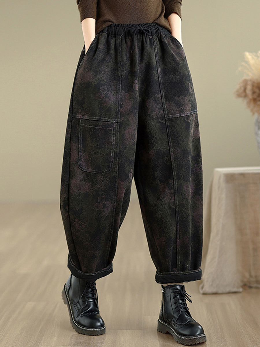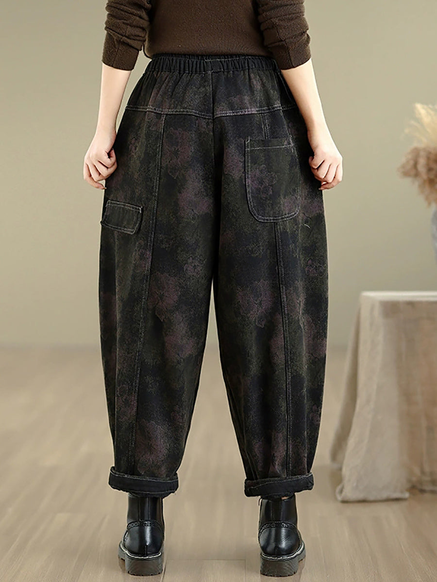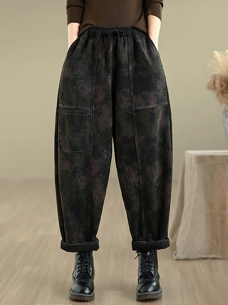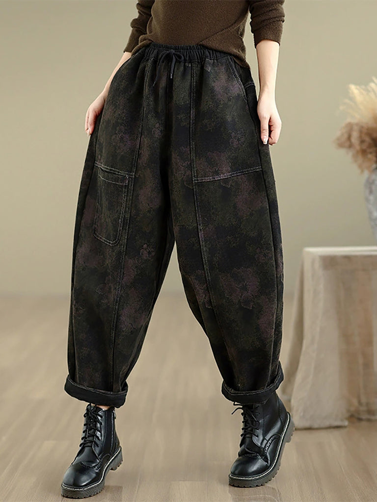 מכנסי הרמון עם בטנת פליז לגברים בסגנון רטרו ג'ינס לנשים