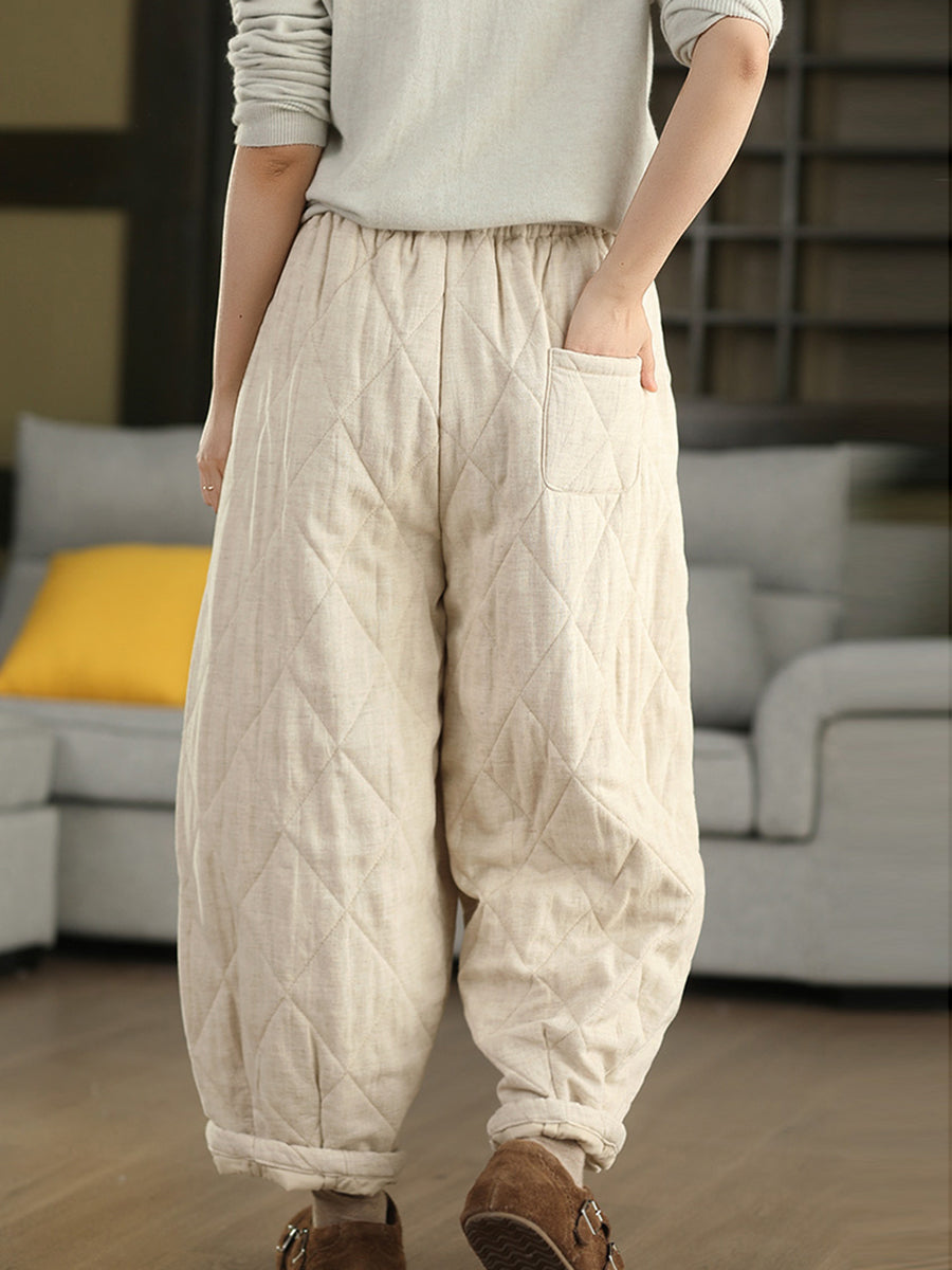 מכנסי הרמון מרופדים בצבע טהור לנשים 100% קנבוס