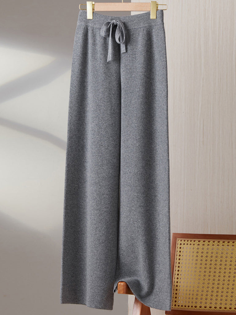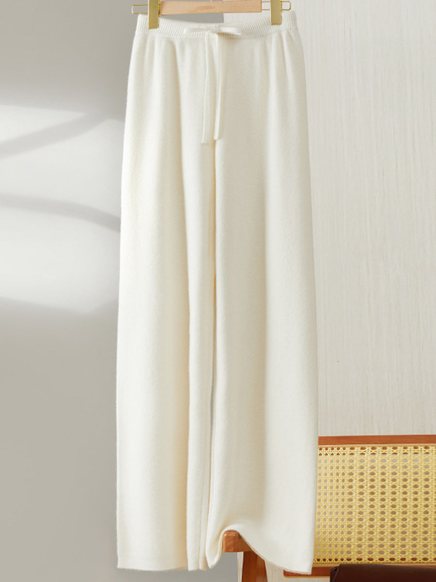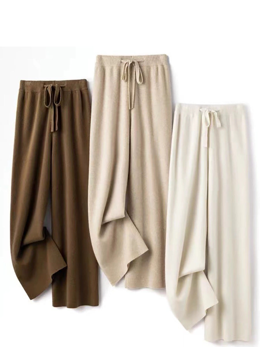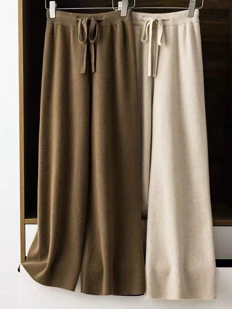 מכנסי חורף רחבים סרוגים מצמר בצבע טהור לנשים