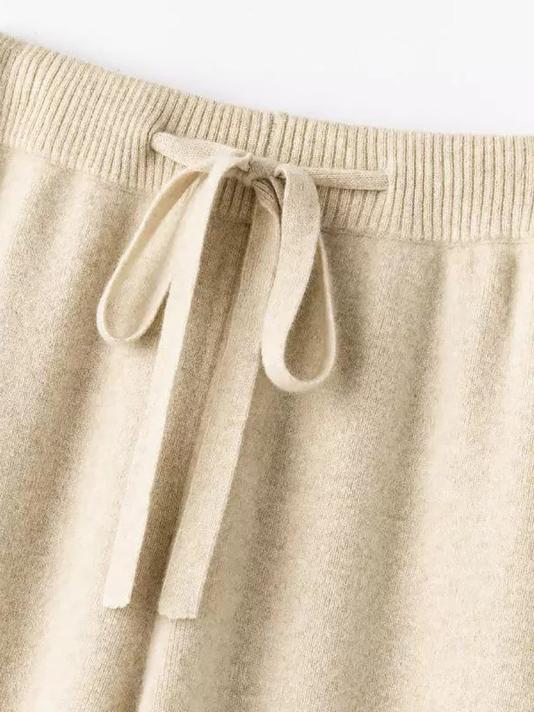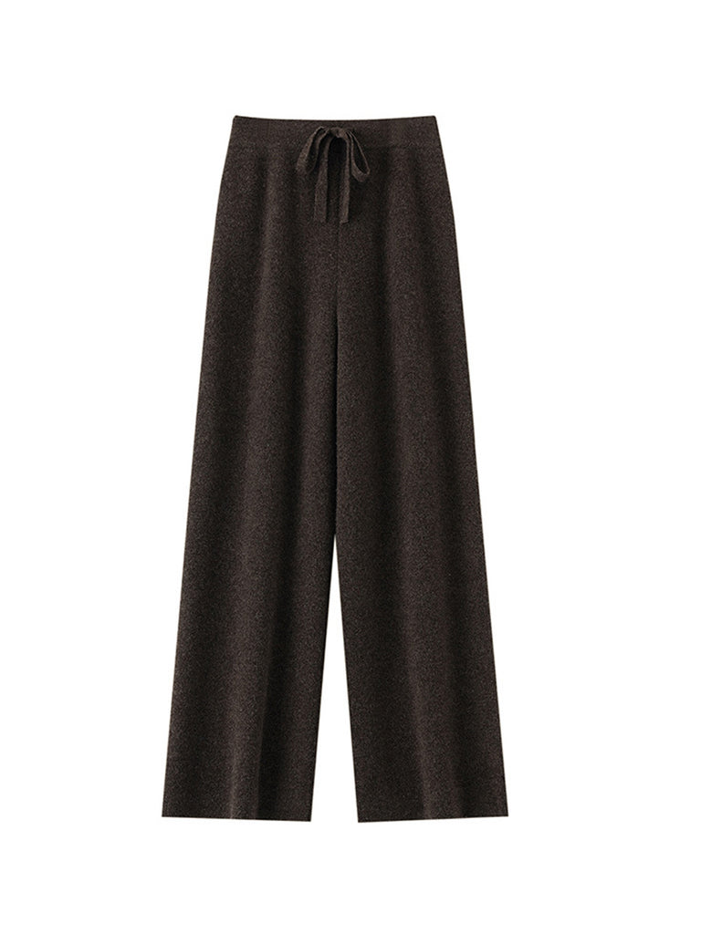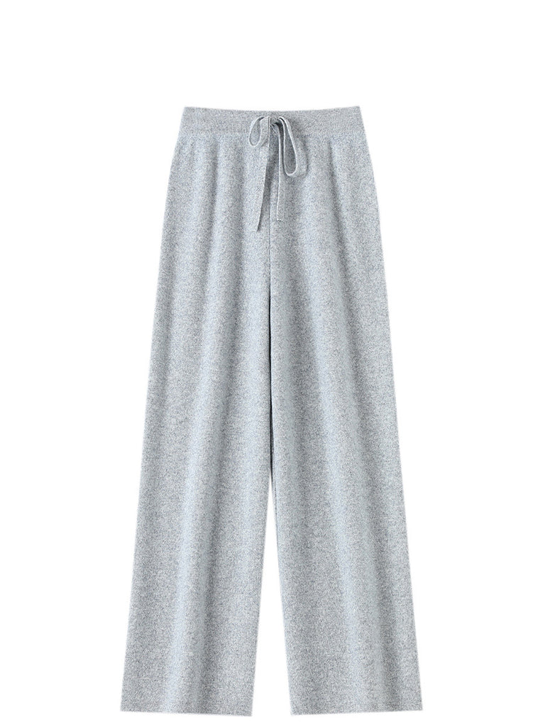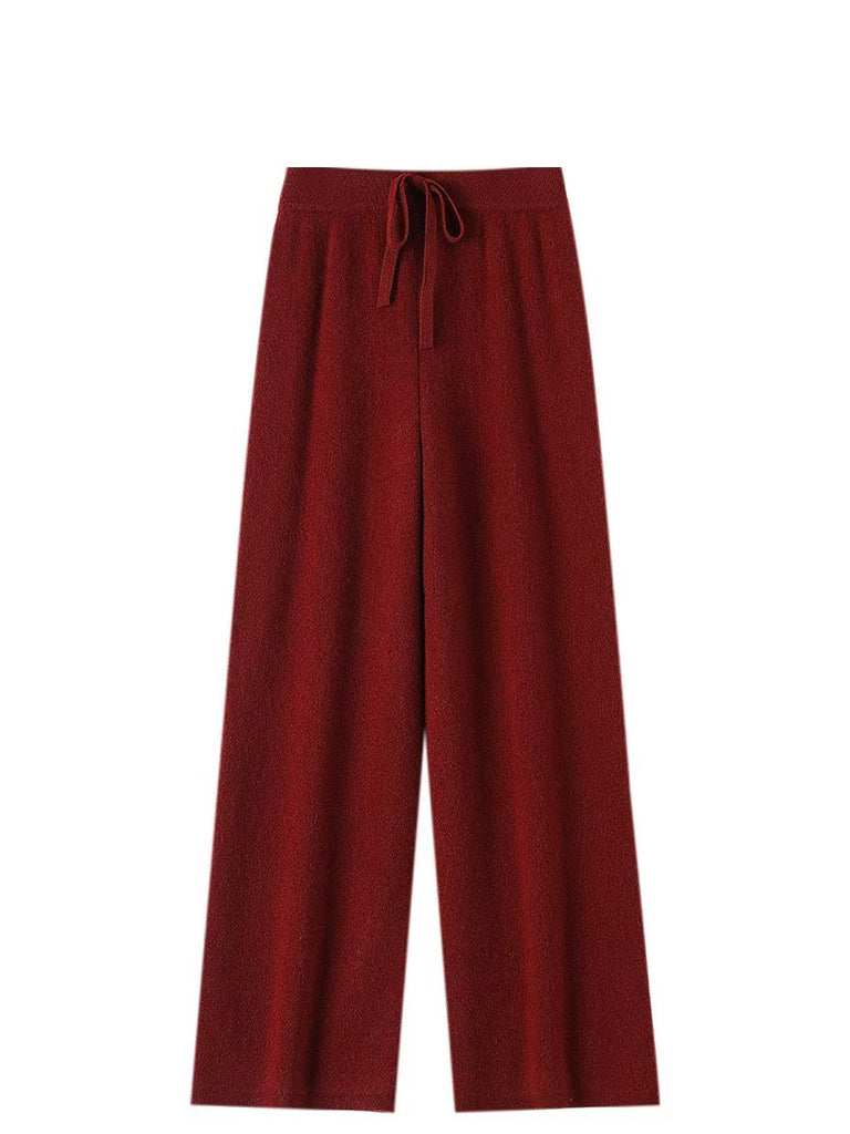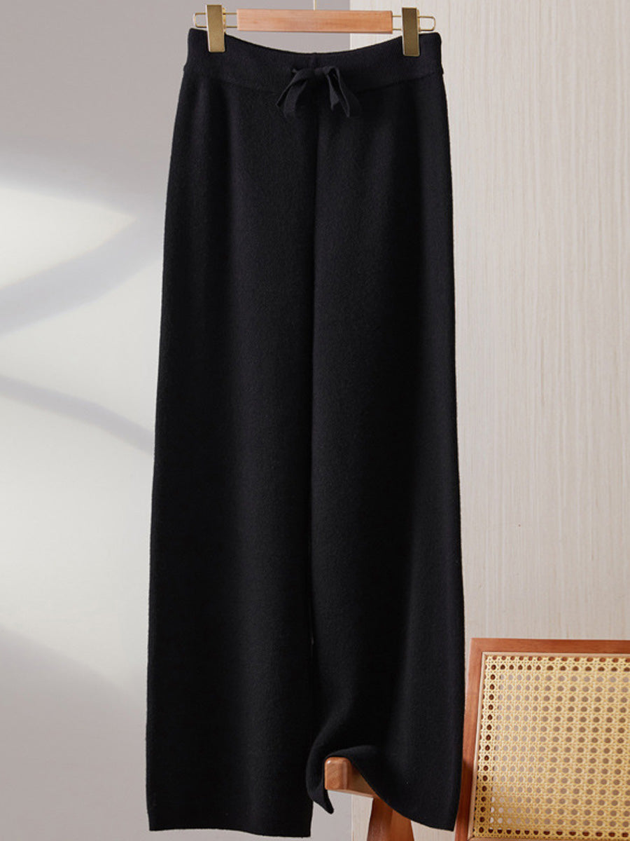 מכנסי חורף רחבים סרוגים מצמר בצבע טהור לנשים
