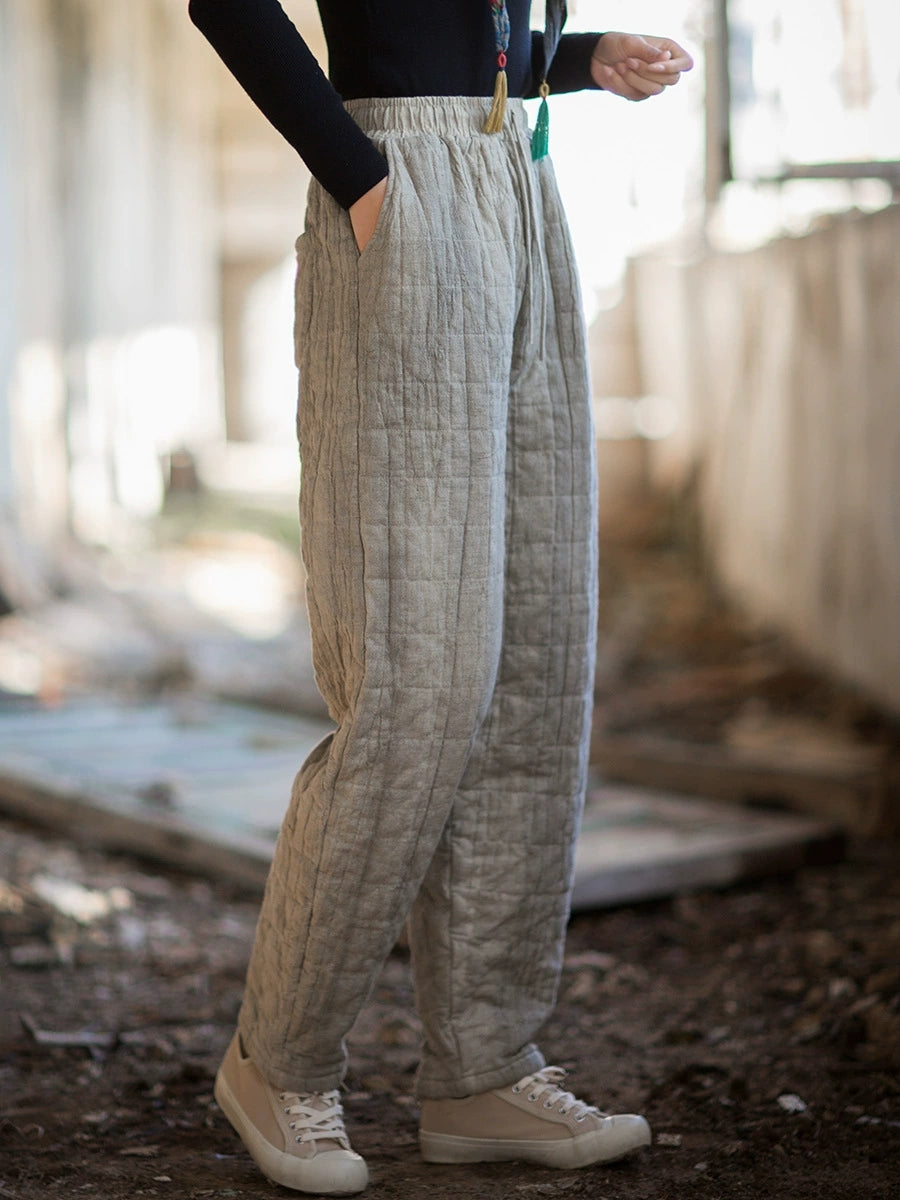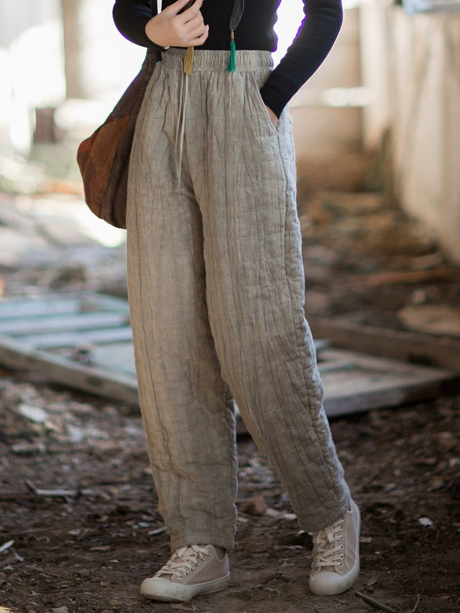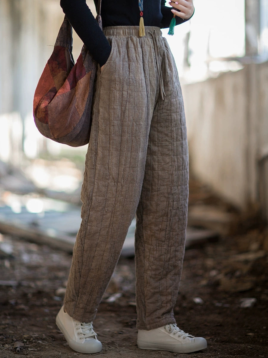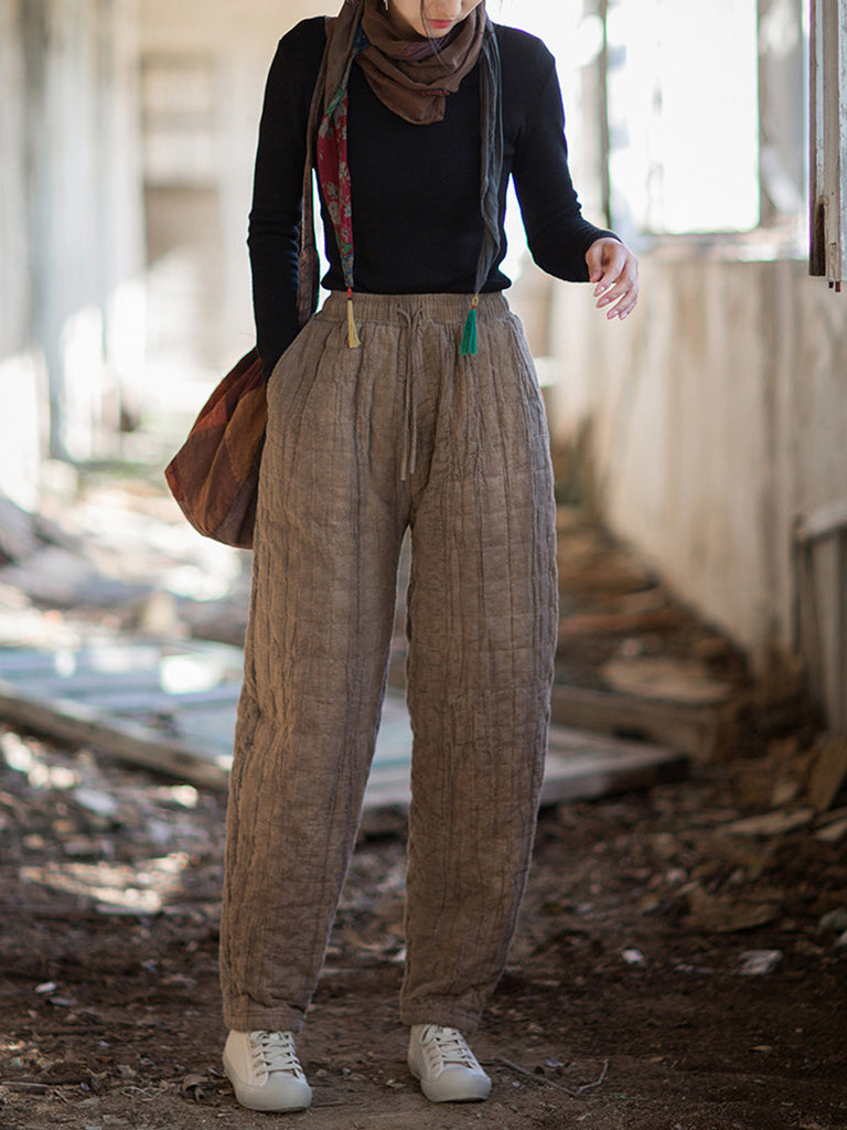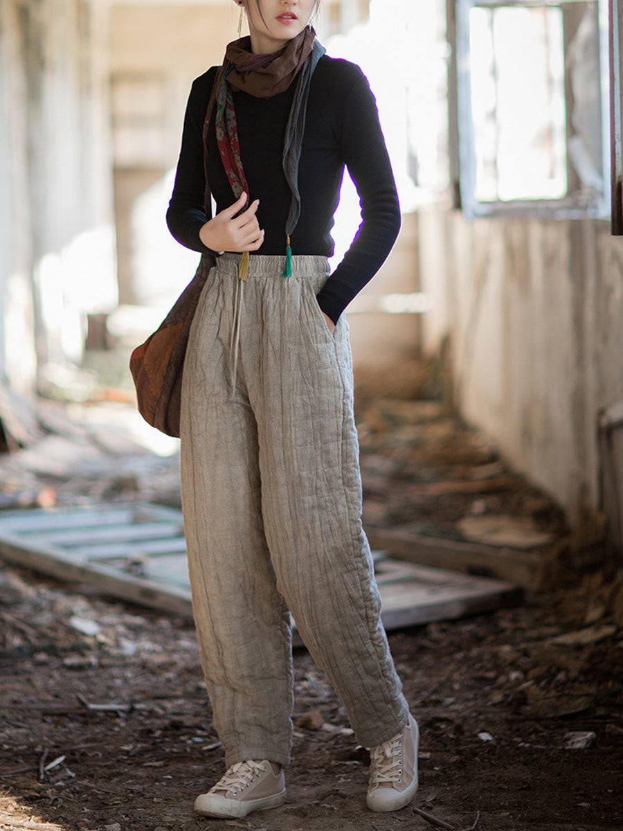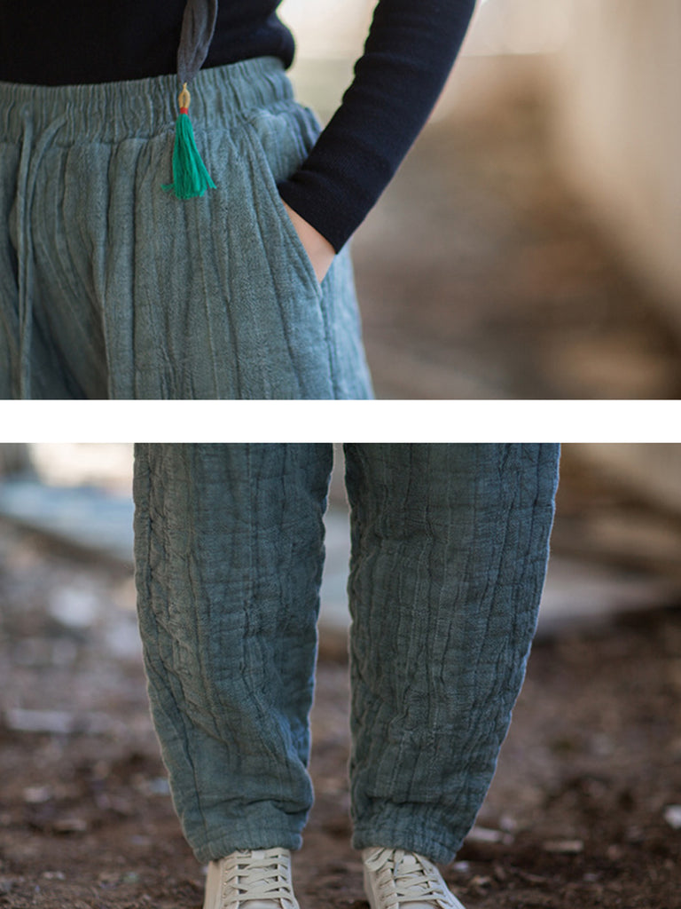 מכנסי הרמון מרופדים בצבע טהור בסגנון חורף לנשים