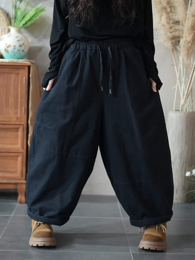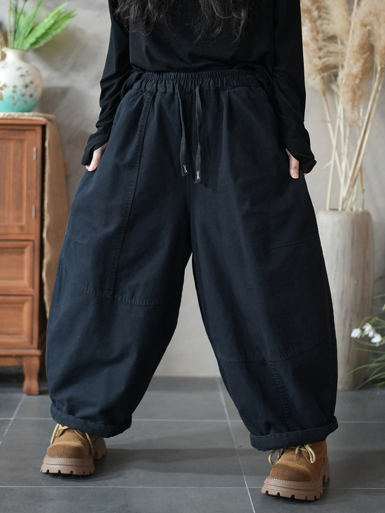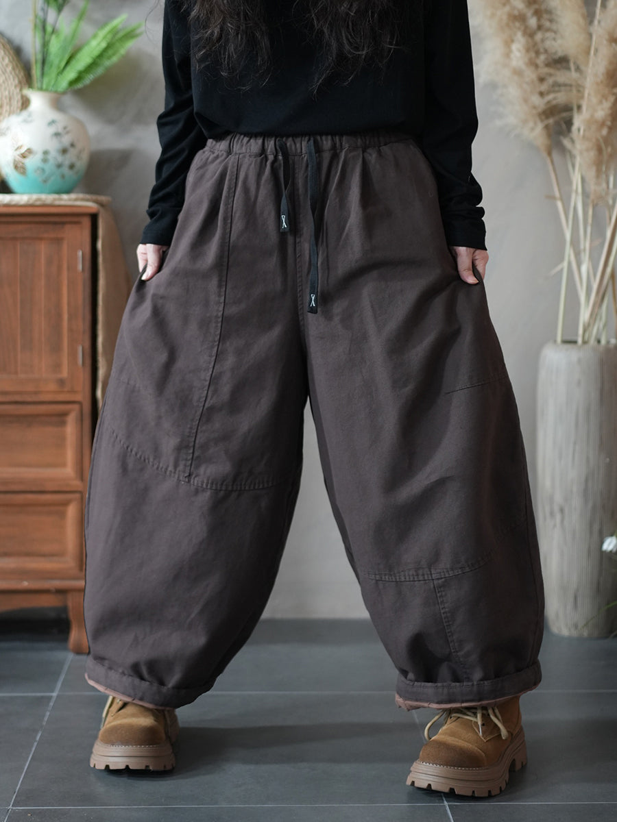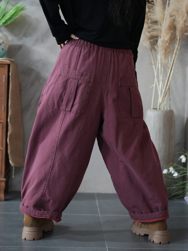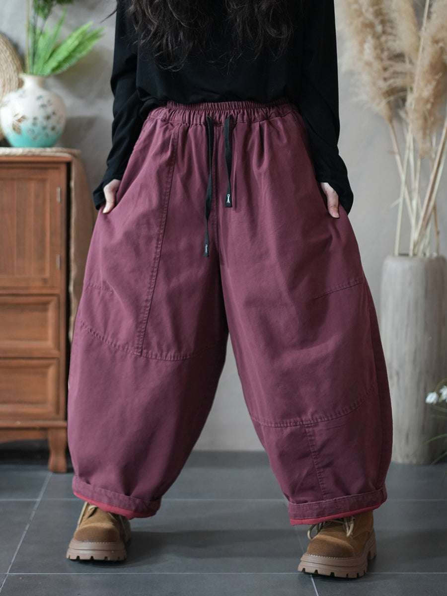 מכנסי הרמון מרופדים בצבע טהור בסגנון רטרו לחורף לנשים