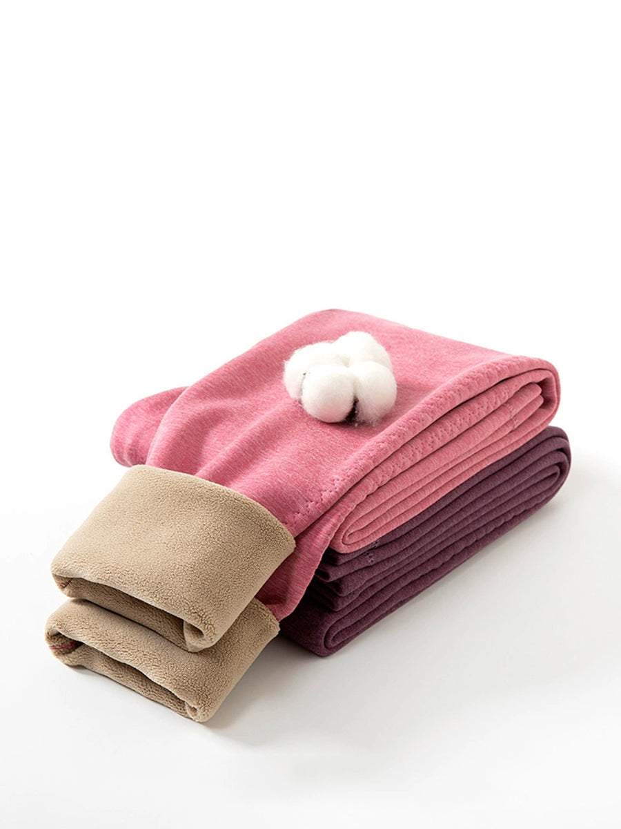 טייץ חורף חם לנשים עם בטנת פליז בצבע טהור