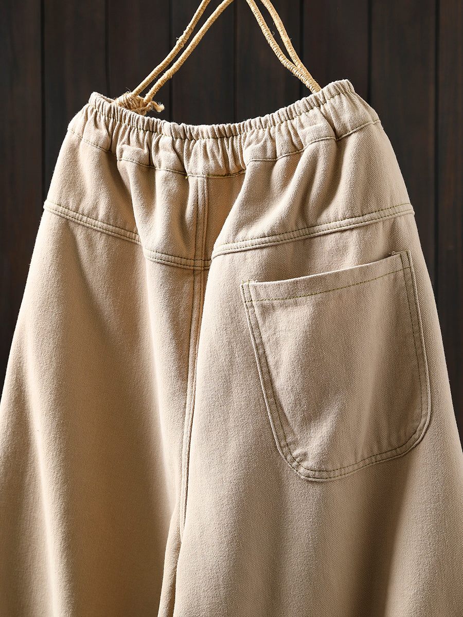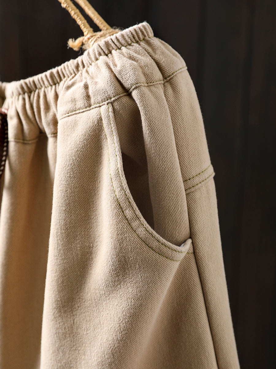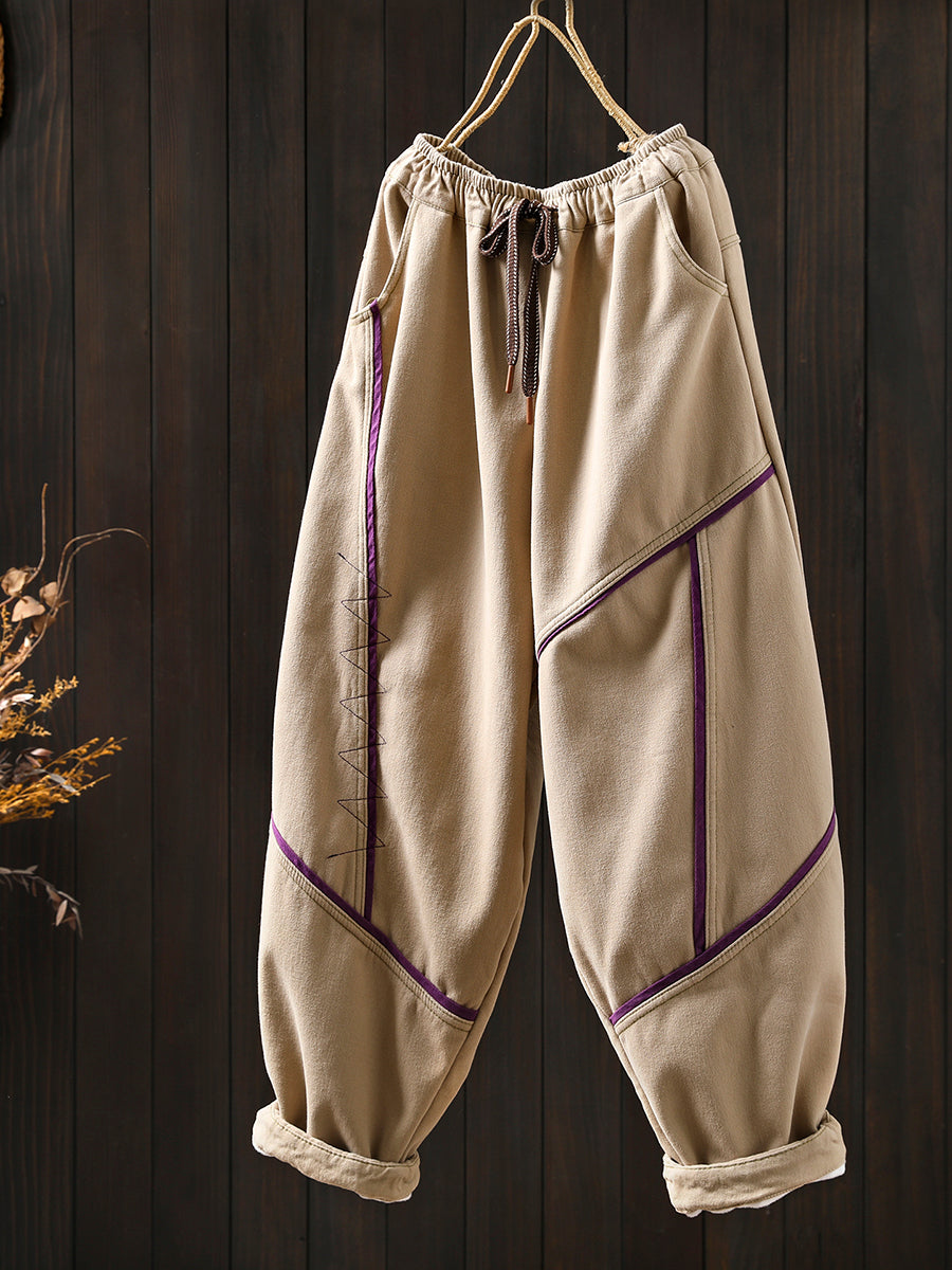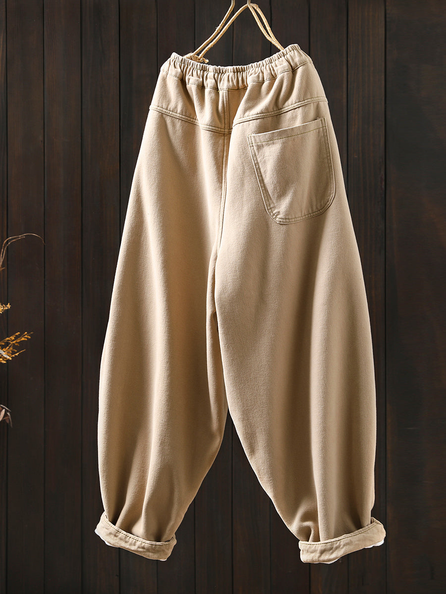 מכנסי הרמון חורף וינטג' לנשים עם בטנת פליז מכותנה
