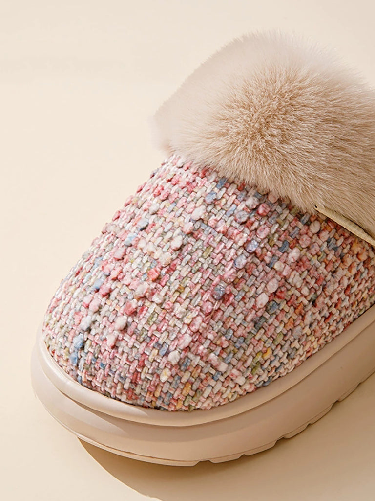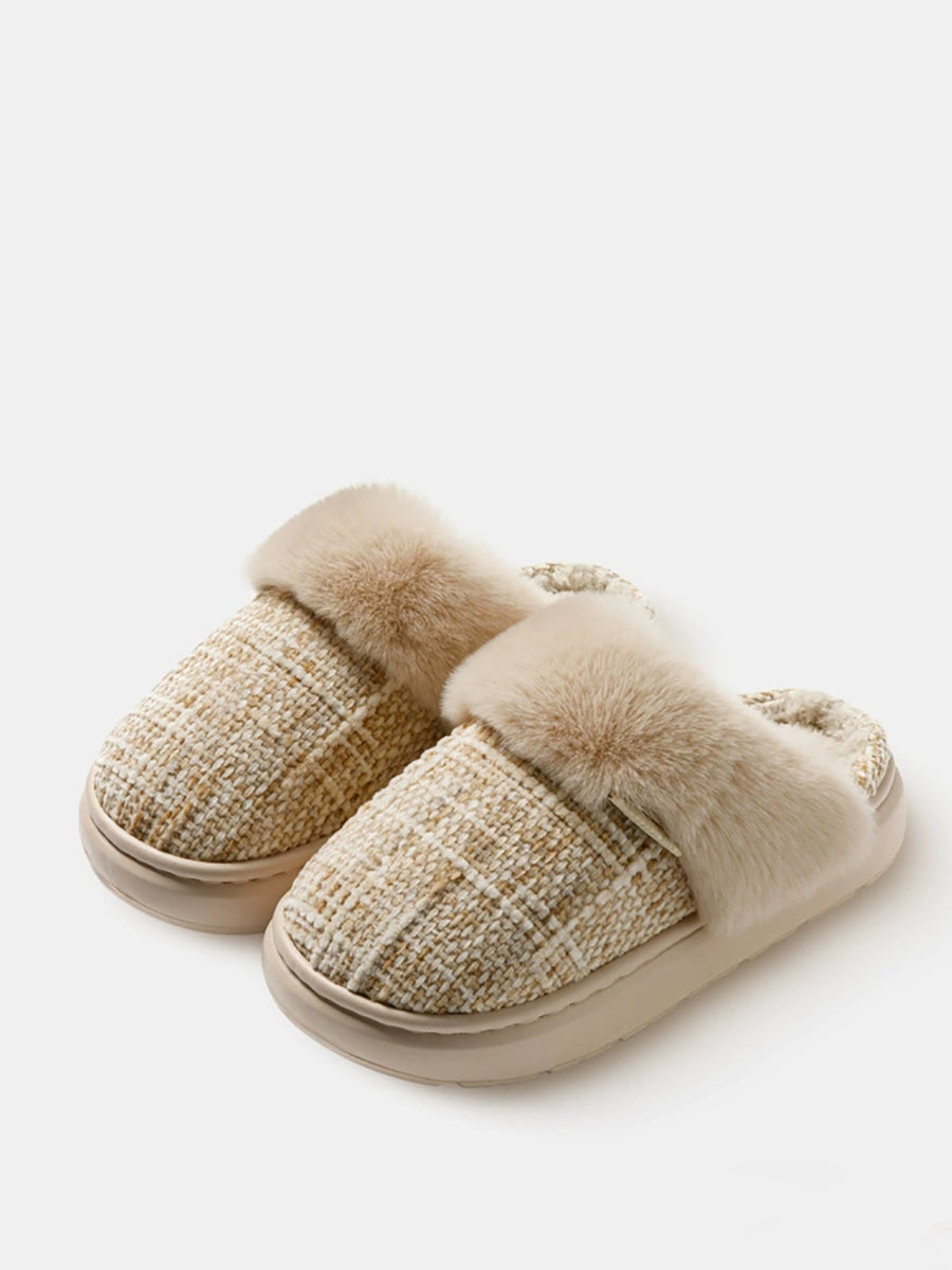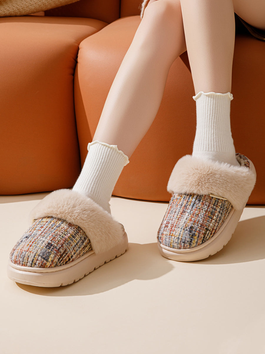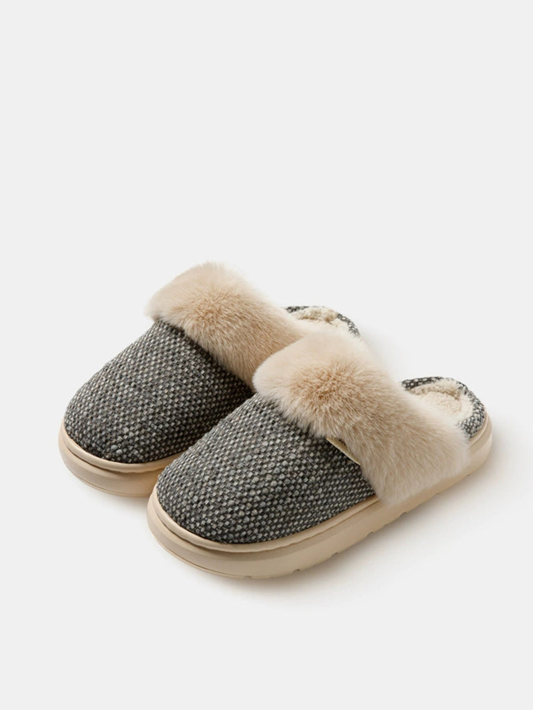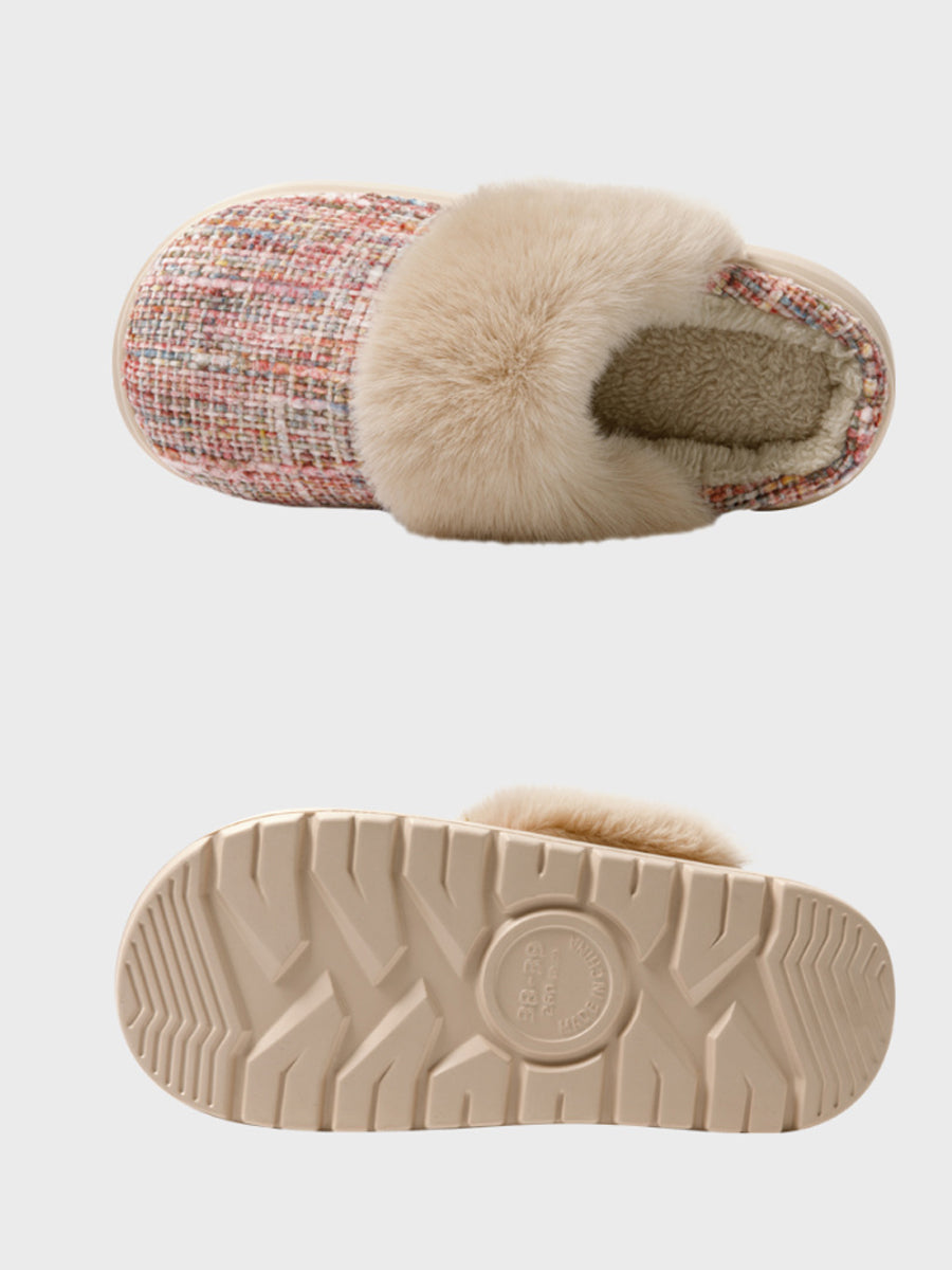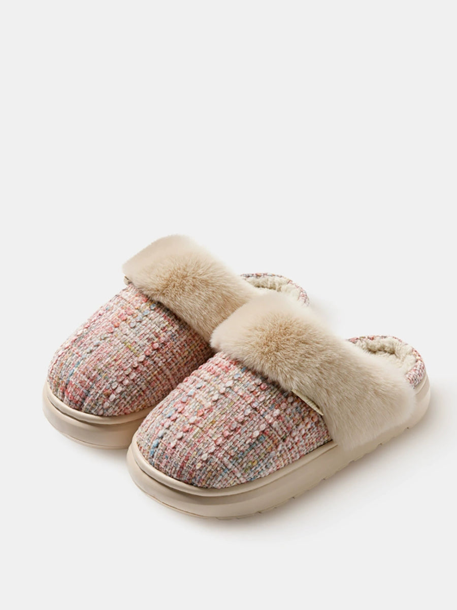 זוג חורף טהור צבע קטיפה מקורה כפכפים