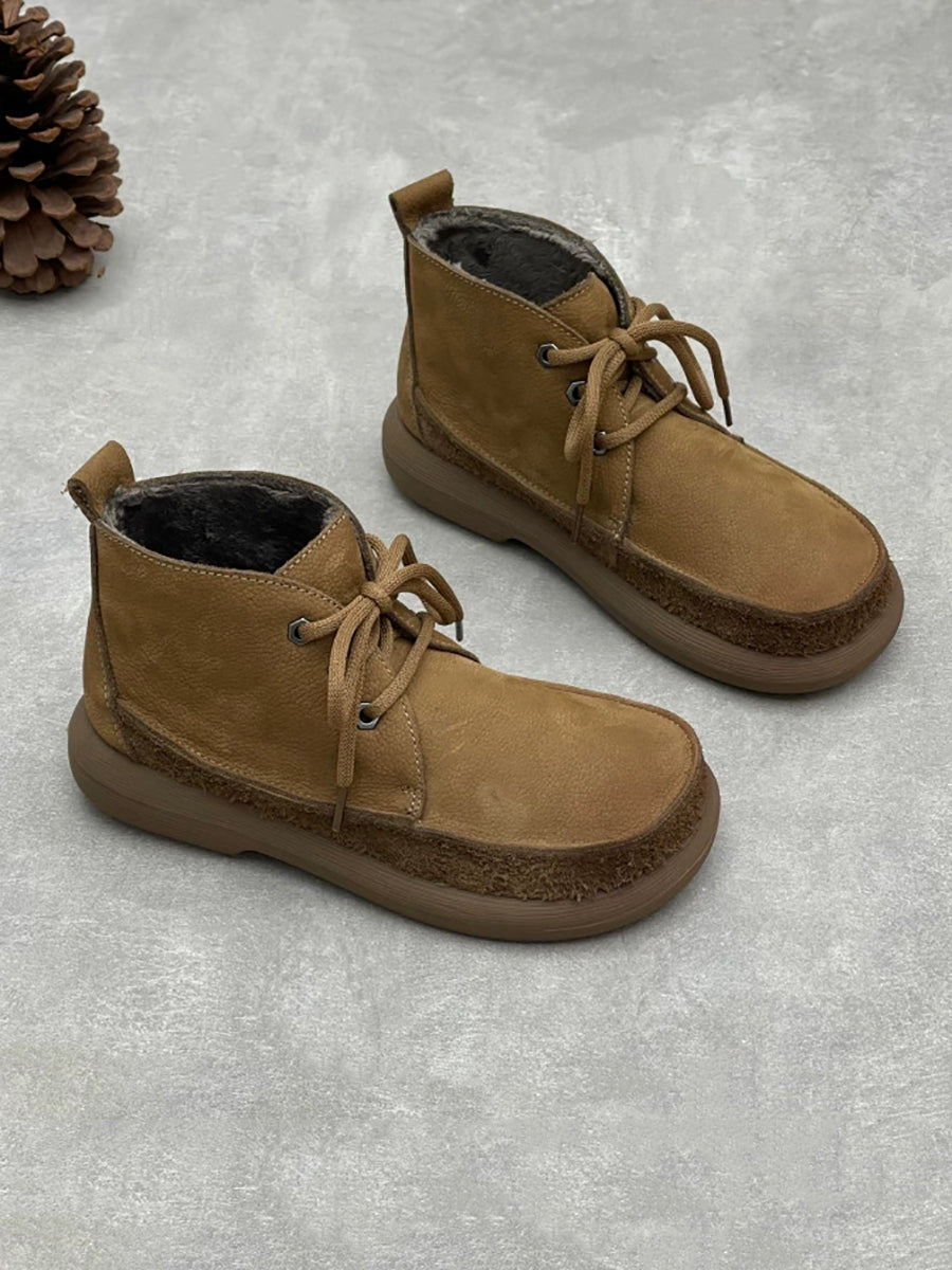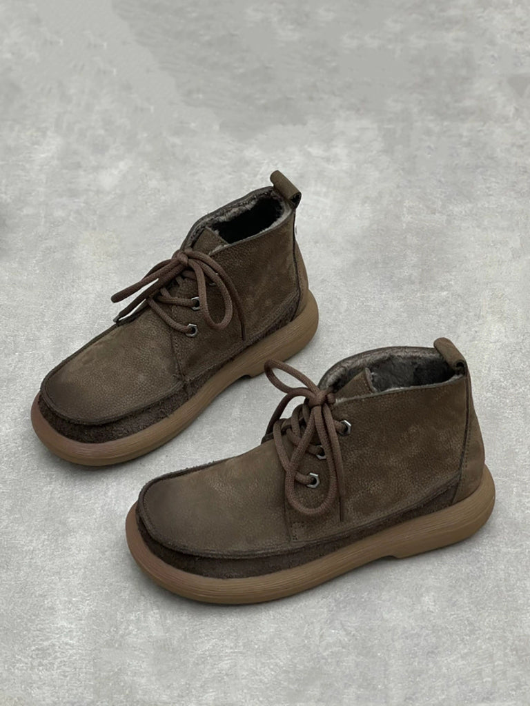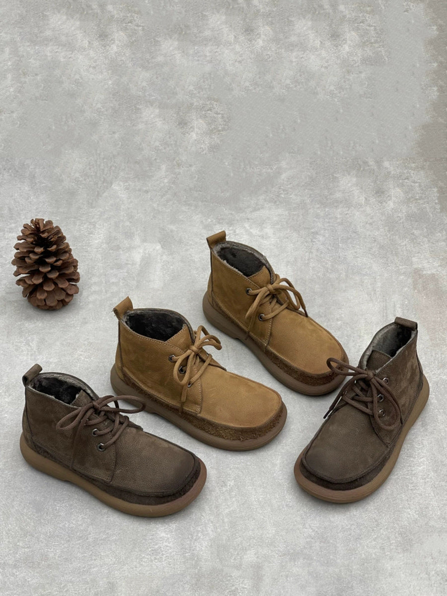 מגפי קרסול מעור אמיתי לחורף וינטג' לנשים