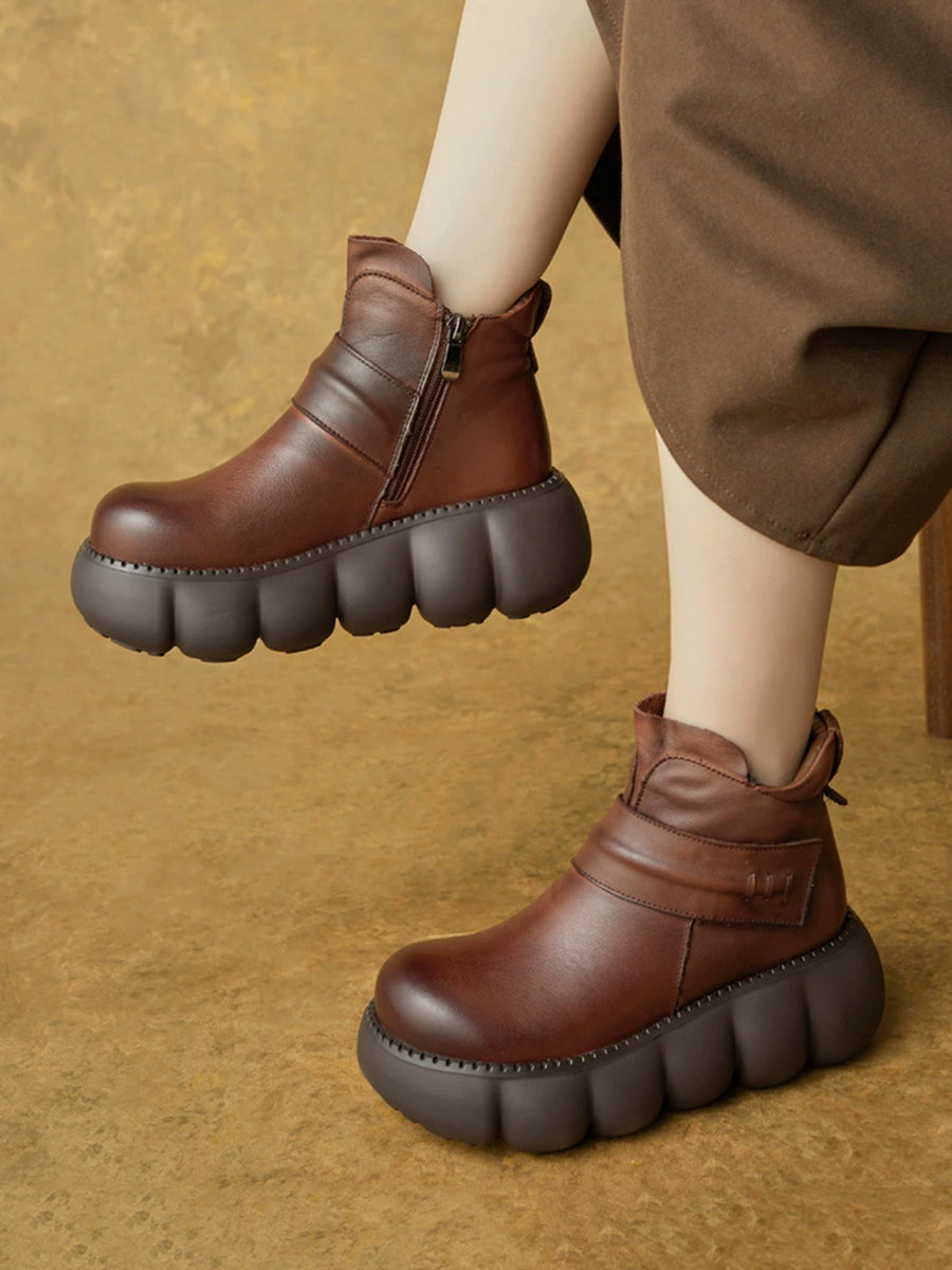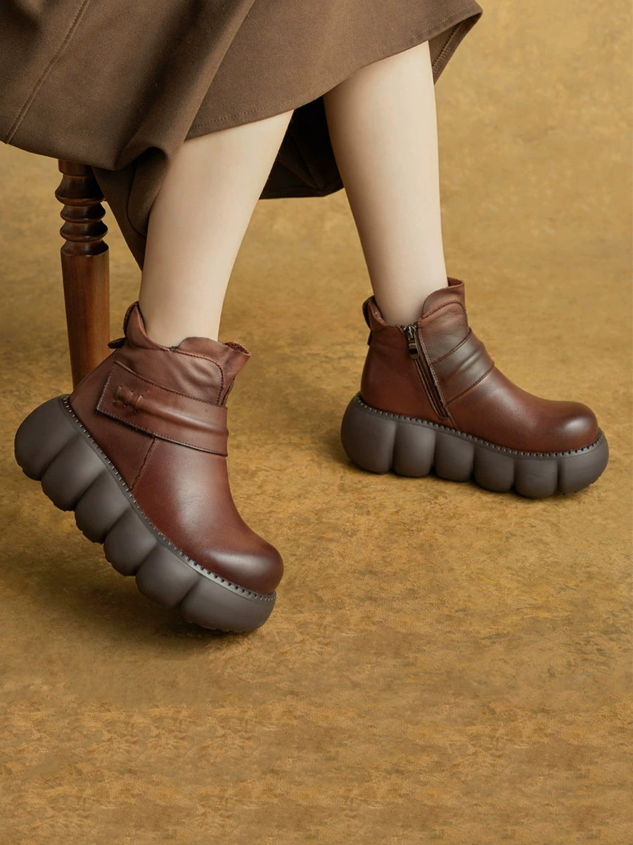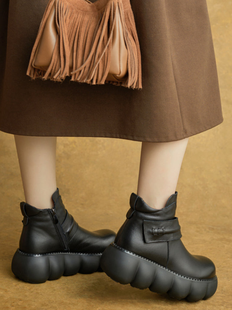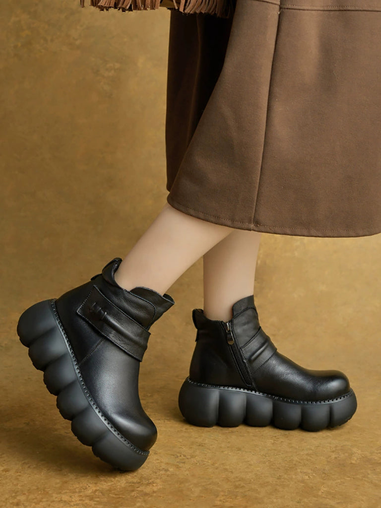 מגפי פלטפורמה מעור אמיתי לנשים בחורף