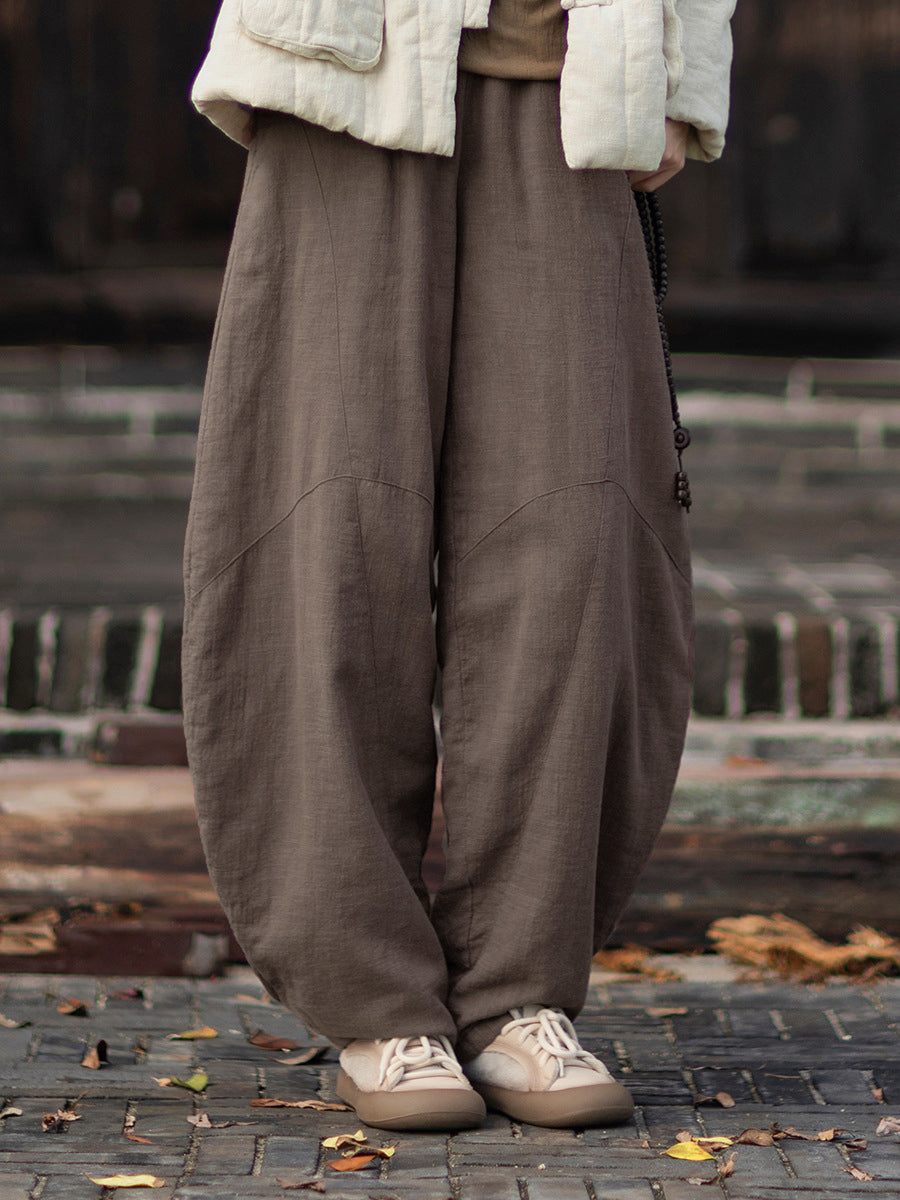 מכנסי הרמון מרופדים בצבע טהור בסגנון רטרו לחורף לנשים